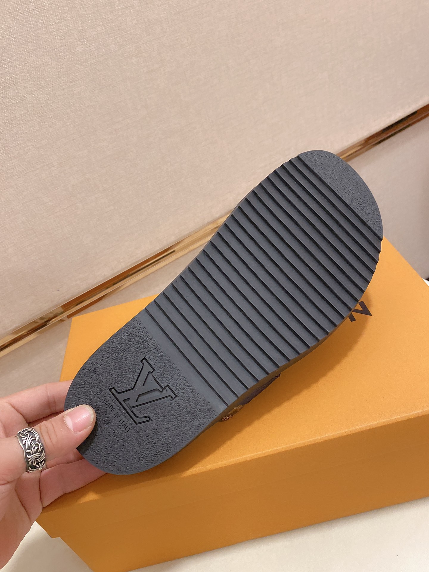 这款鞋子是AAAAA 1:1 质量 (非常棒). 使用了和原版一模一样的材料. 商标部分也保持了和路易威登/Louis Vuitton一样. 图片拍摄是实物鞋子拍摄, 您所收到的实物保证和我们图片一模一样.