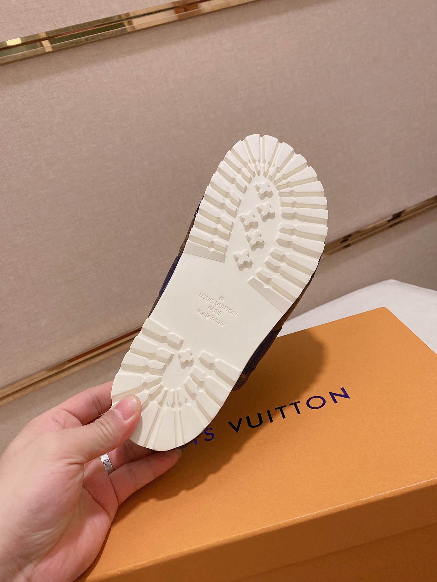 这款鞋子是AAAAA 1:1 质量 (非常棒). 使用了和原版一模一样的材料. 商标部分也保持了和路易威登/Louis Vuitton一样. 图片拍摄是实物鞋子拍摄, 您所收到的实物保证和我们图片一模一样.