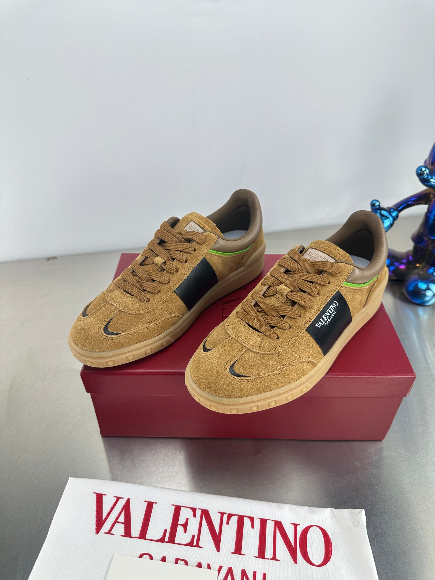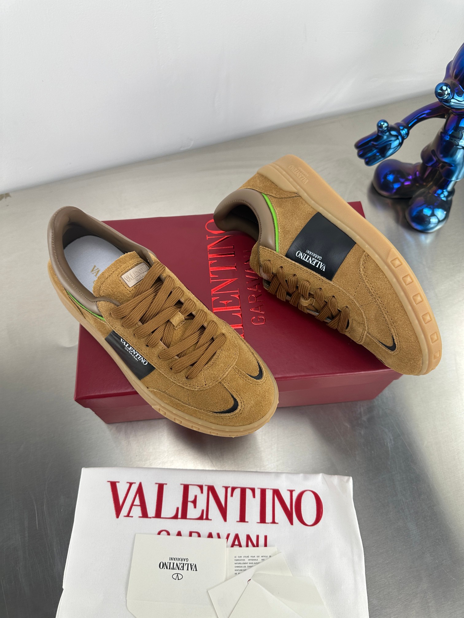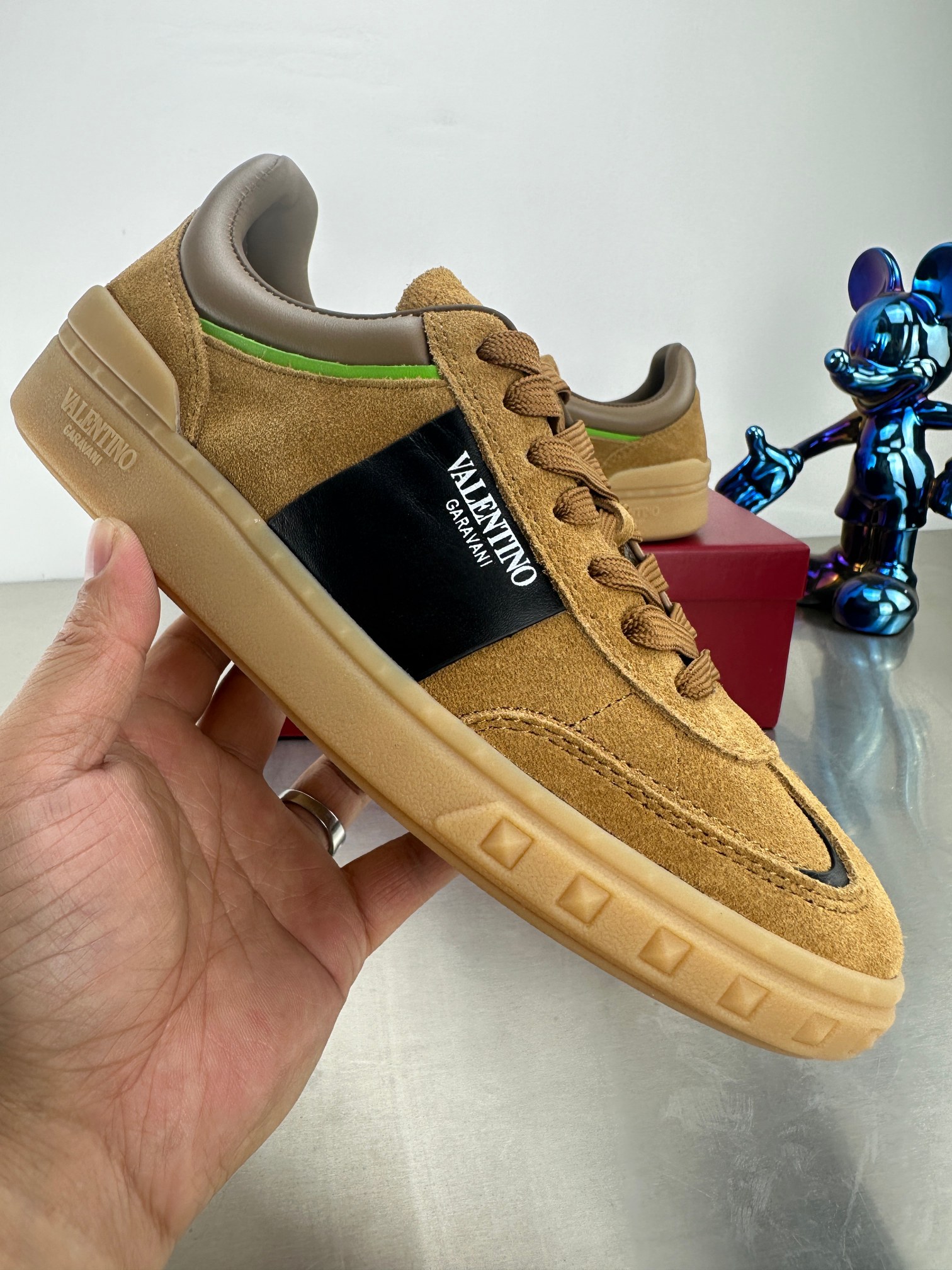 这款鞋子是AAAAA 1:1 质量 (非常棒). 使用了和原版一模一样的材料. 商标部分也保持了和华伦天奴/Valentino一样. 图片拍摄是实物鞋子拍摄, 您所收到的实物保证和我们图片一模一样.