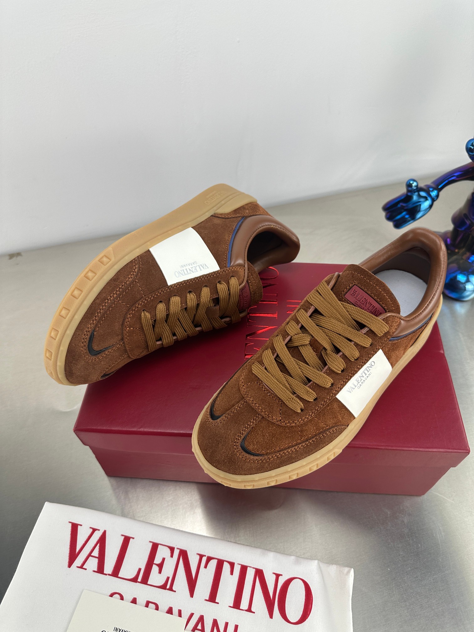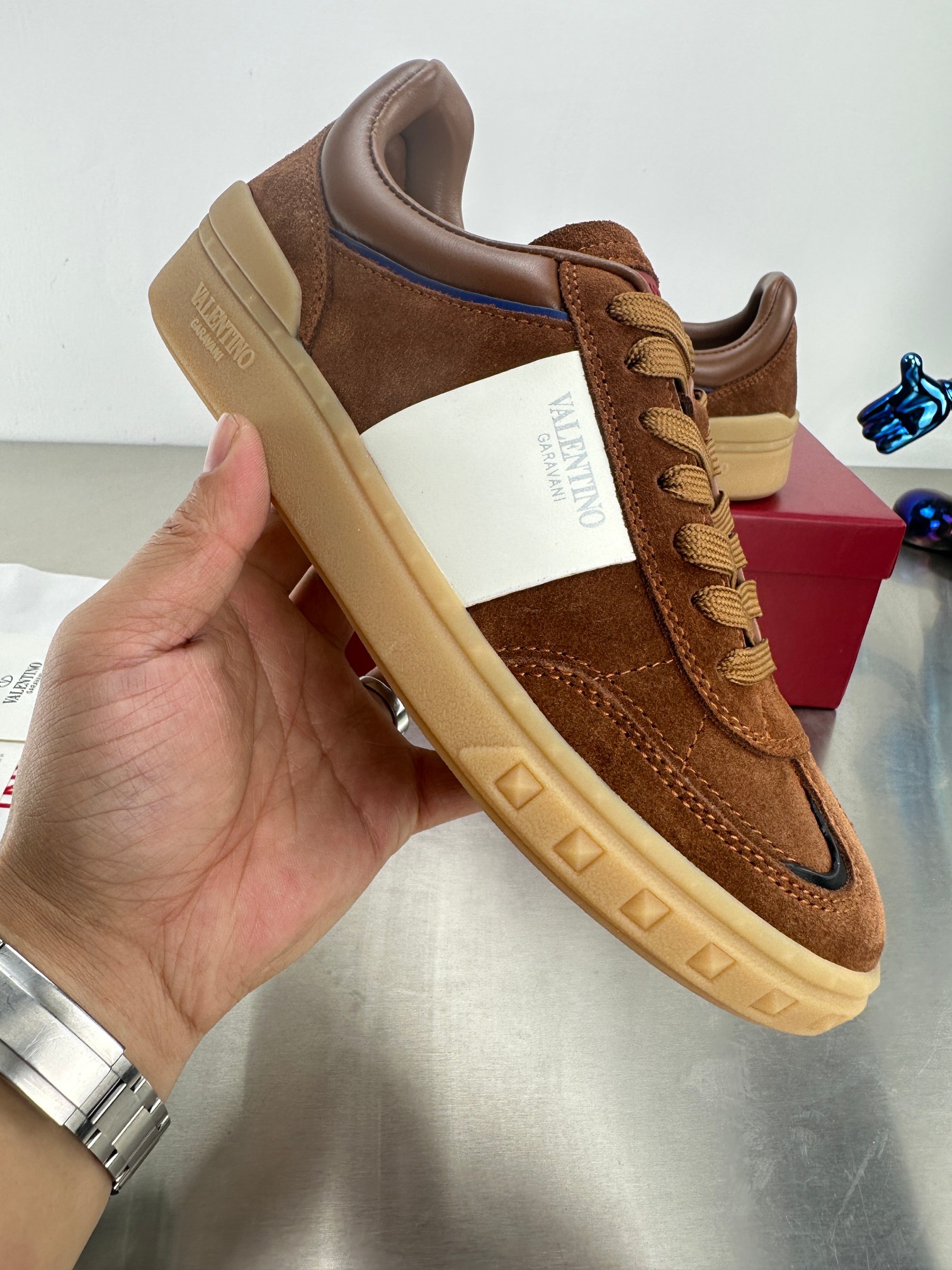 这款鞋子是AAAAA 1:1 质量 (非常棒). 使用了和原版一模一样的材料. 商标部分也保持了和华伦天奴/Valentino一样. 图片拍摄是实物鞋子拍摄, 您所收到的实物保证和我们图片一模一样.