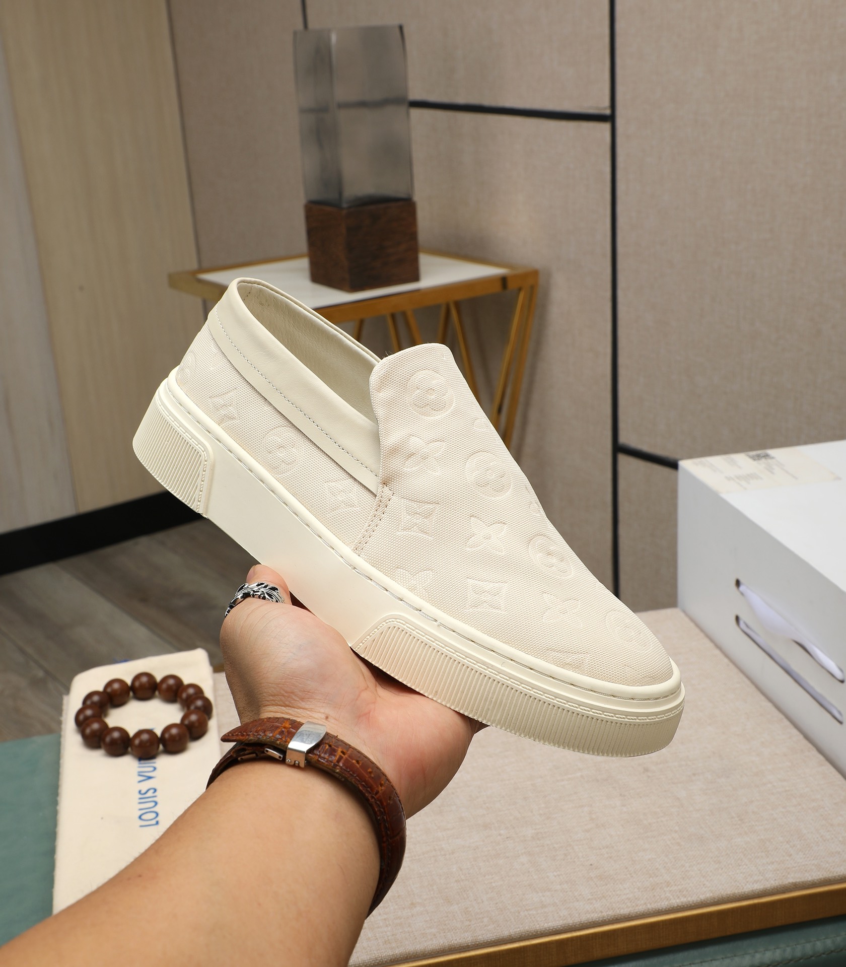 这款鞋子是AAAAA 1:1 质量 (非常棒). 使用了和原版一模一样的材料. 商标部分也保持了和路易威登/Louis Vuitton一样. 图片拍摄是实物鞋子拍摄, 您所收到的实物保证和我们图片一模一样.