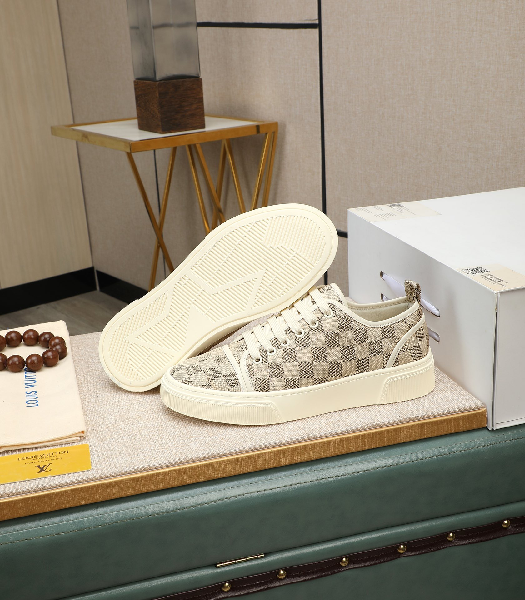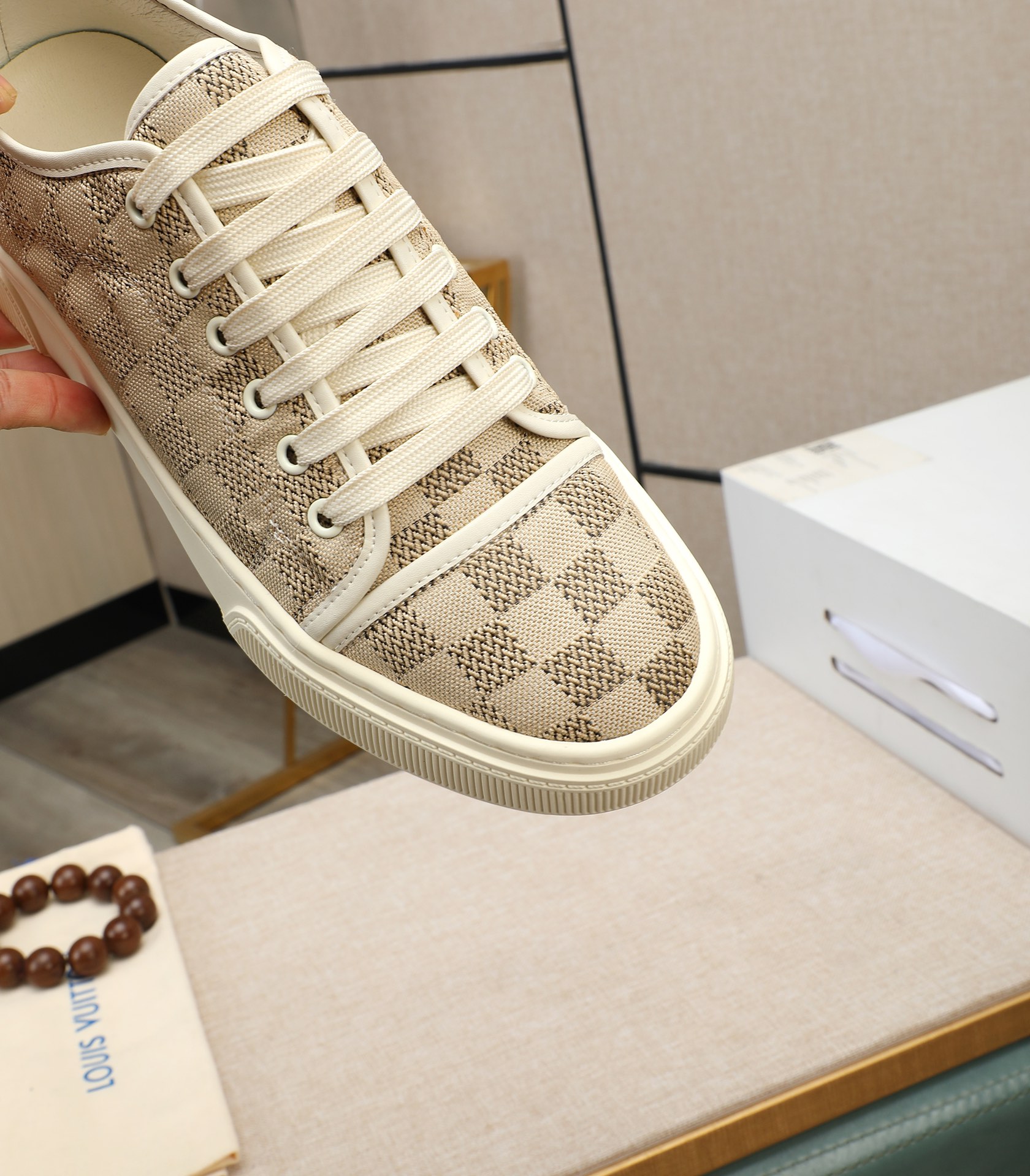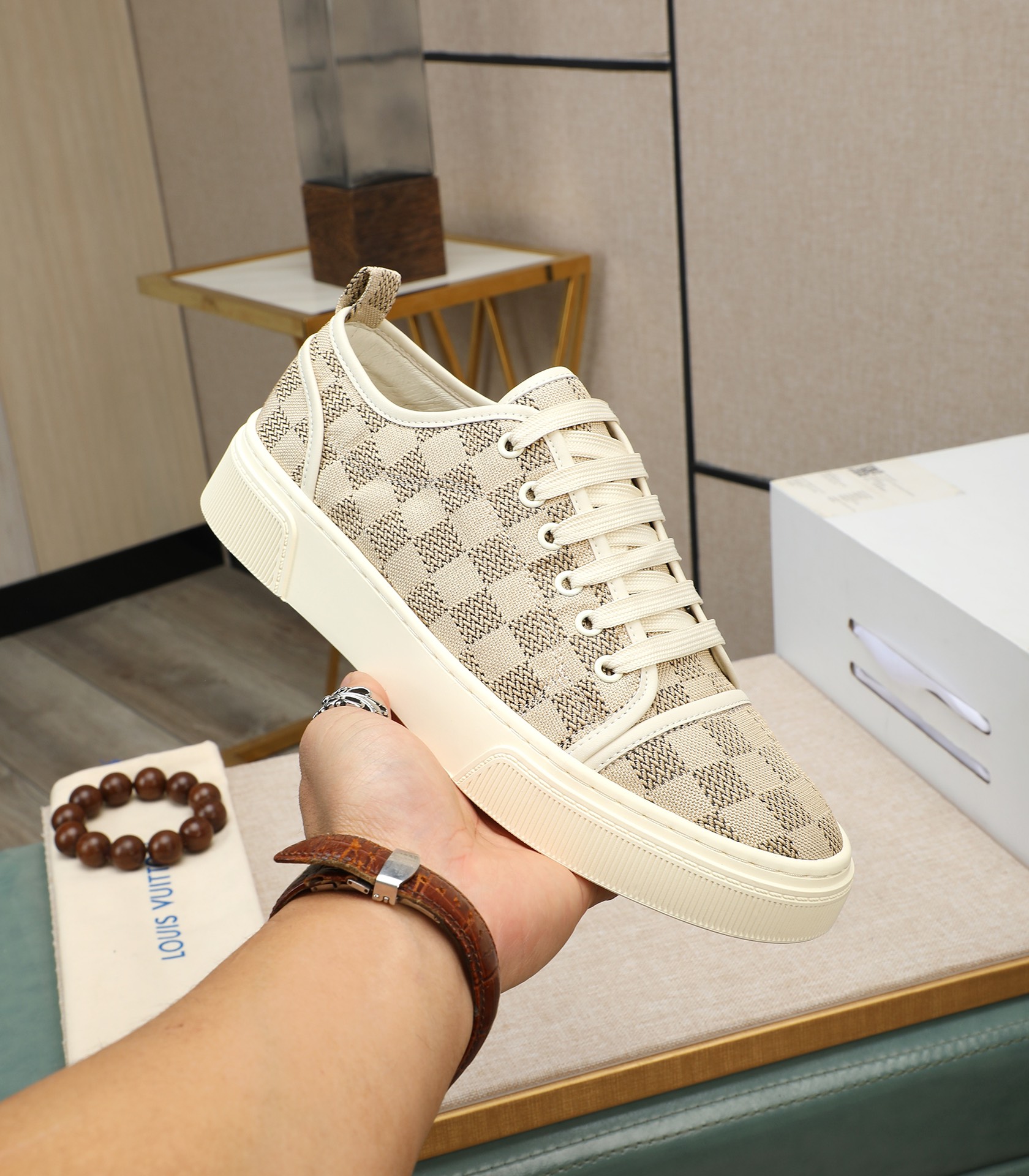 这款鞋子是AAAAA 1:1 质量 (非常棒). 使用了和原版一模一样的材料. 商标部分也保持了和路易威登/Louis Vuitton一样. 图片拍摄是实物鞋子拍摄, 您所收到的实物保证和我们图片一模一样.