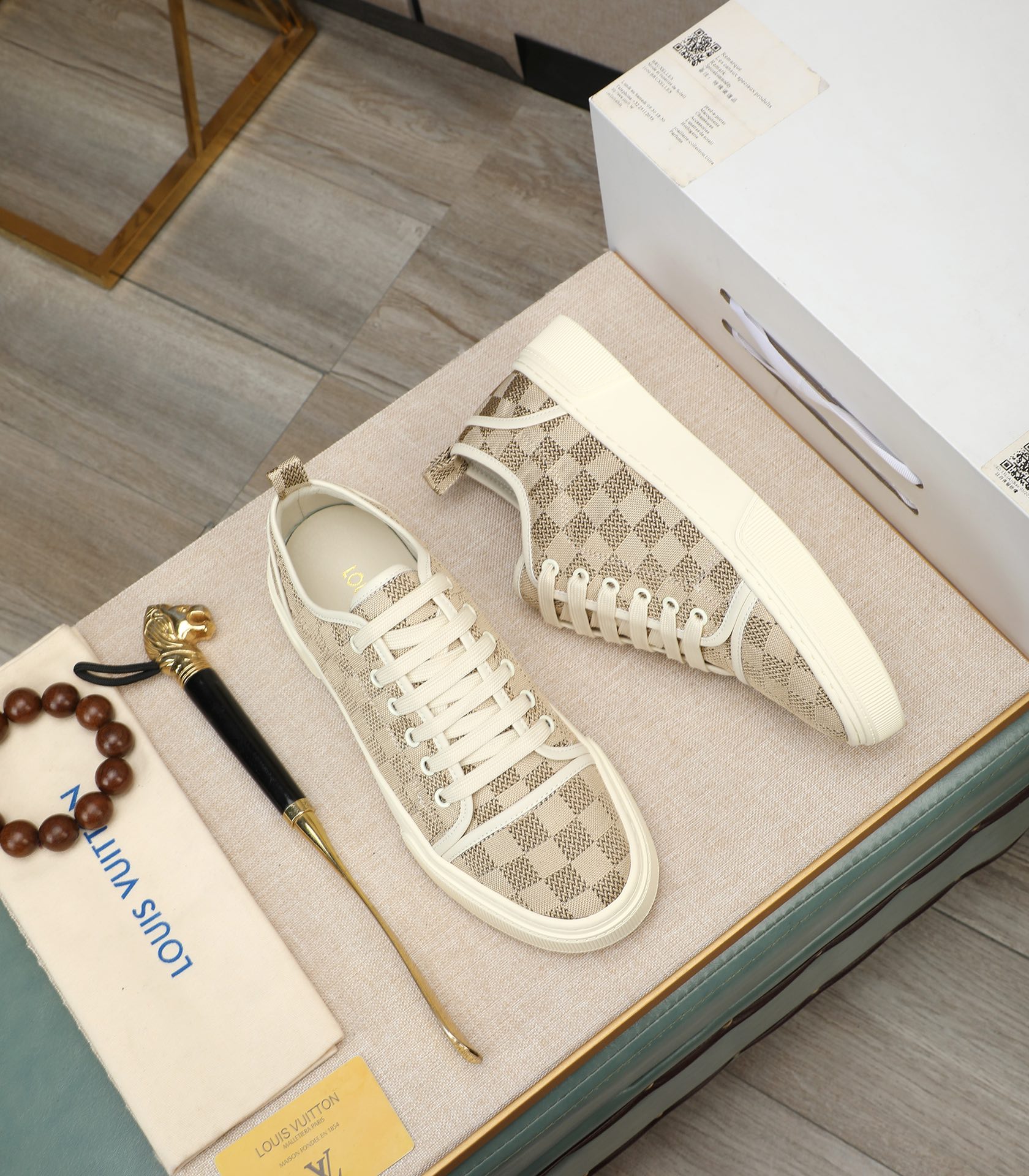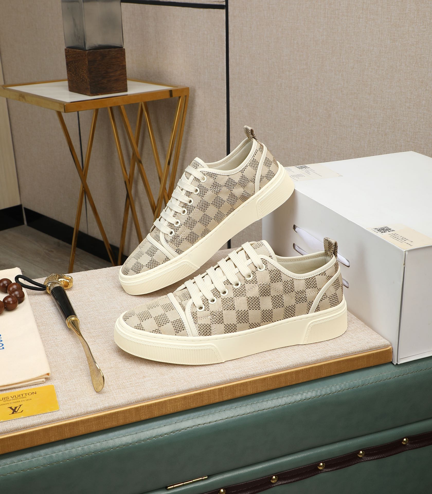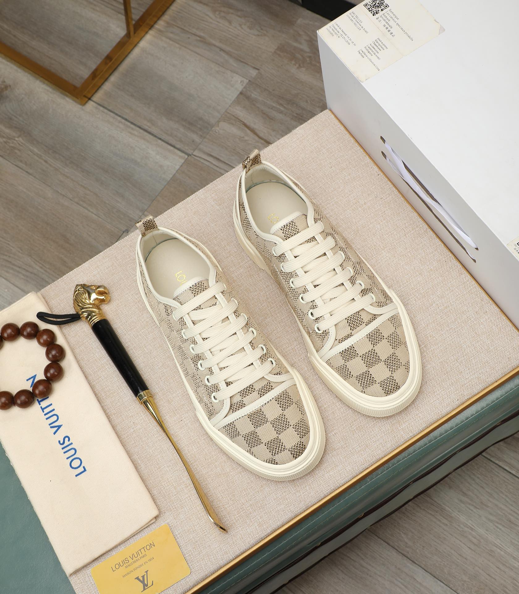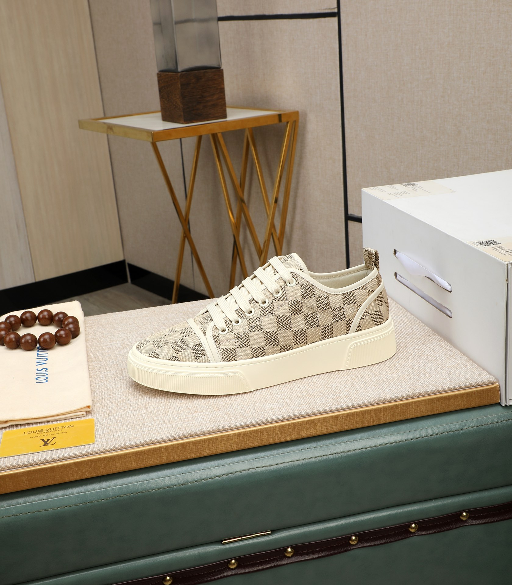 这款鞋子是AAAAA 1:1 质量 (非常棒). 使用了和原版一模一样的材料. 商标部分也保持了和路易威登/Louis Vuitton一样. 图片拍摄是实物鞋子拍摄, 您所收到的实物保证和我们图片一模一样.