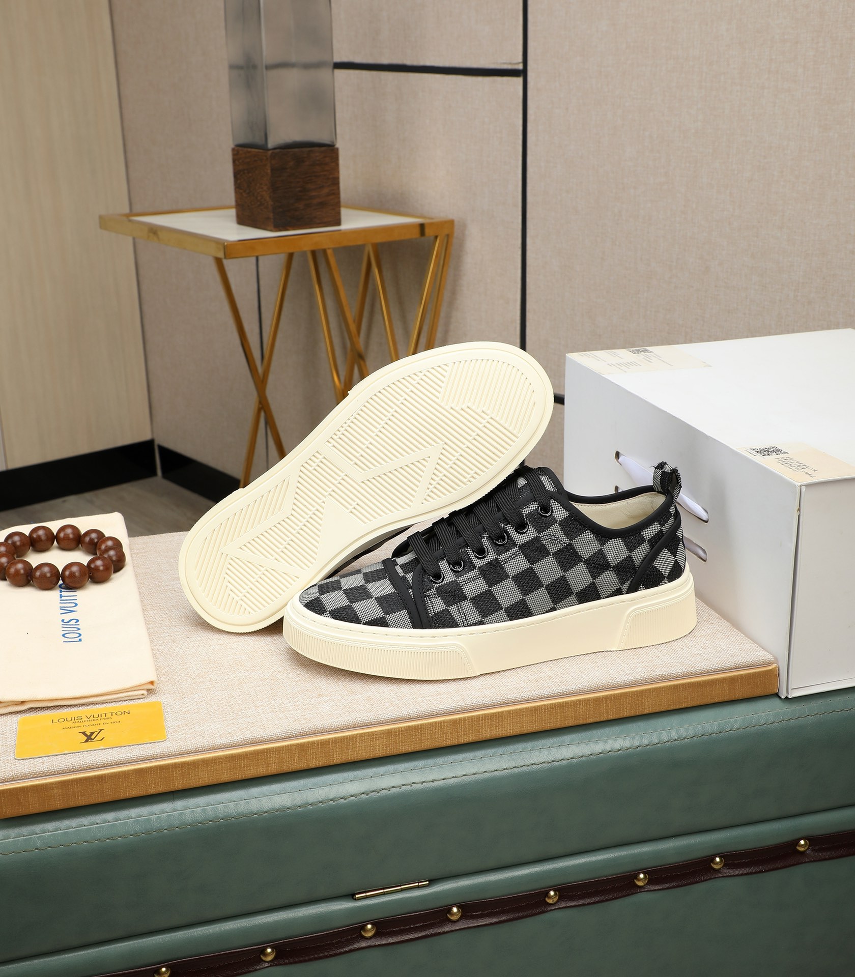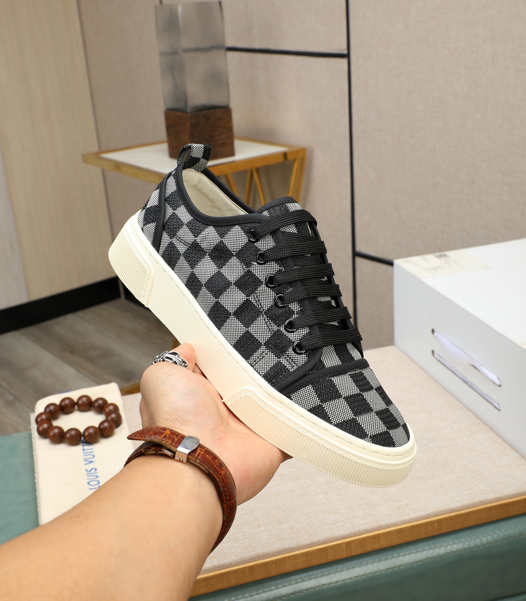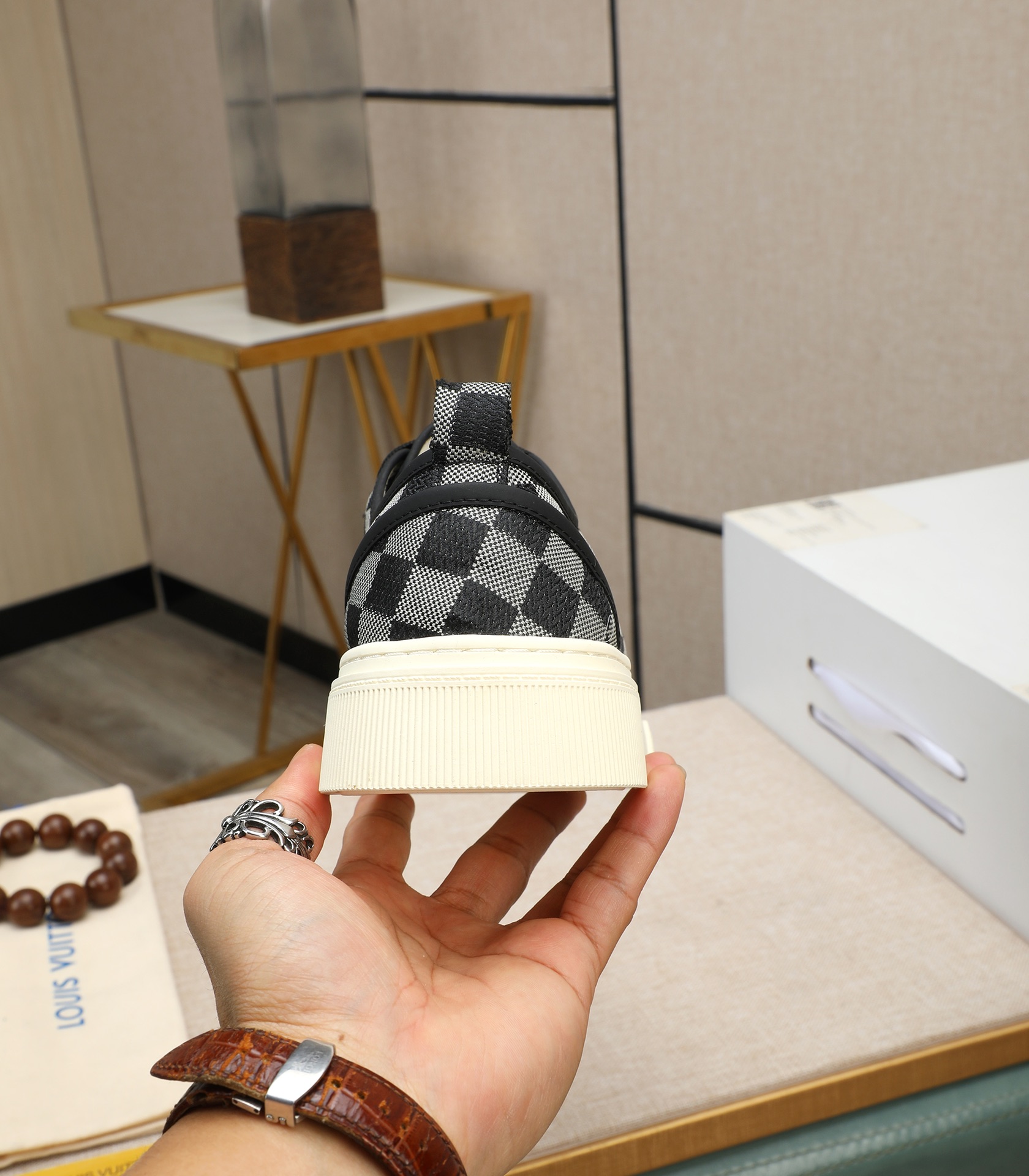 这款鞋子是AAAAA 1:1 质量 (非常棒). 使用了和原版一模一样的材料. 商标部分也保持了和路易威登/Louis Vuitton一样. 图片拍摄是实物鞋子拍摄, 您所收到的实物保证和我们图片一模一样.