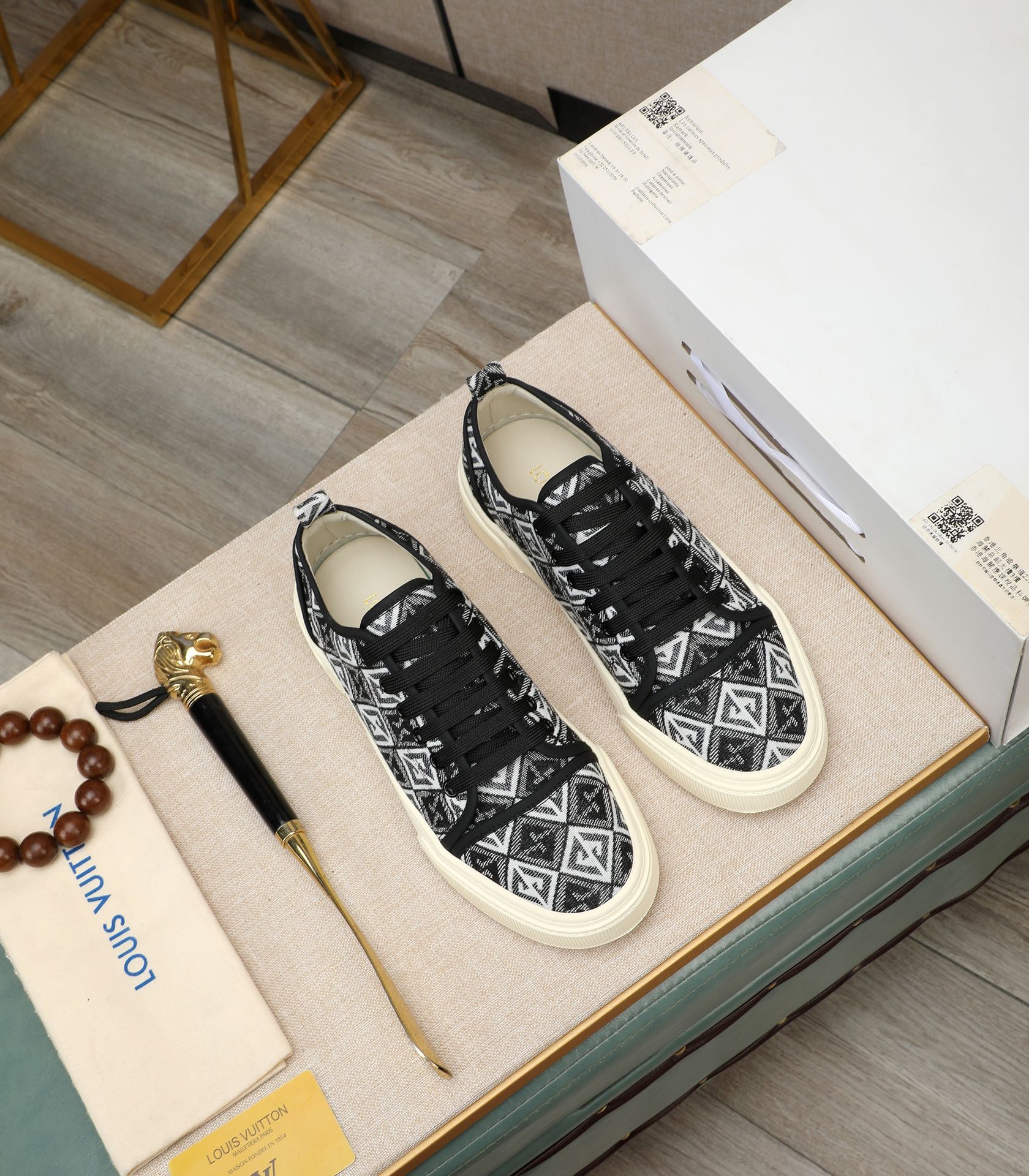 这款鞋子是AAAAA 1:1 质量 (非常棒). 使用了和原版一模一样的材料. 商标部分也保持了和路易威登/Louis Vuitton一样. 图片拍摄是实物鞋子拍摄, 您所收到的实物保证和我们图片一模一样.