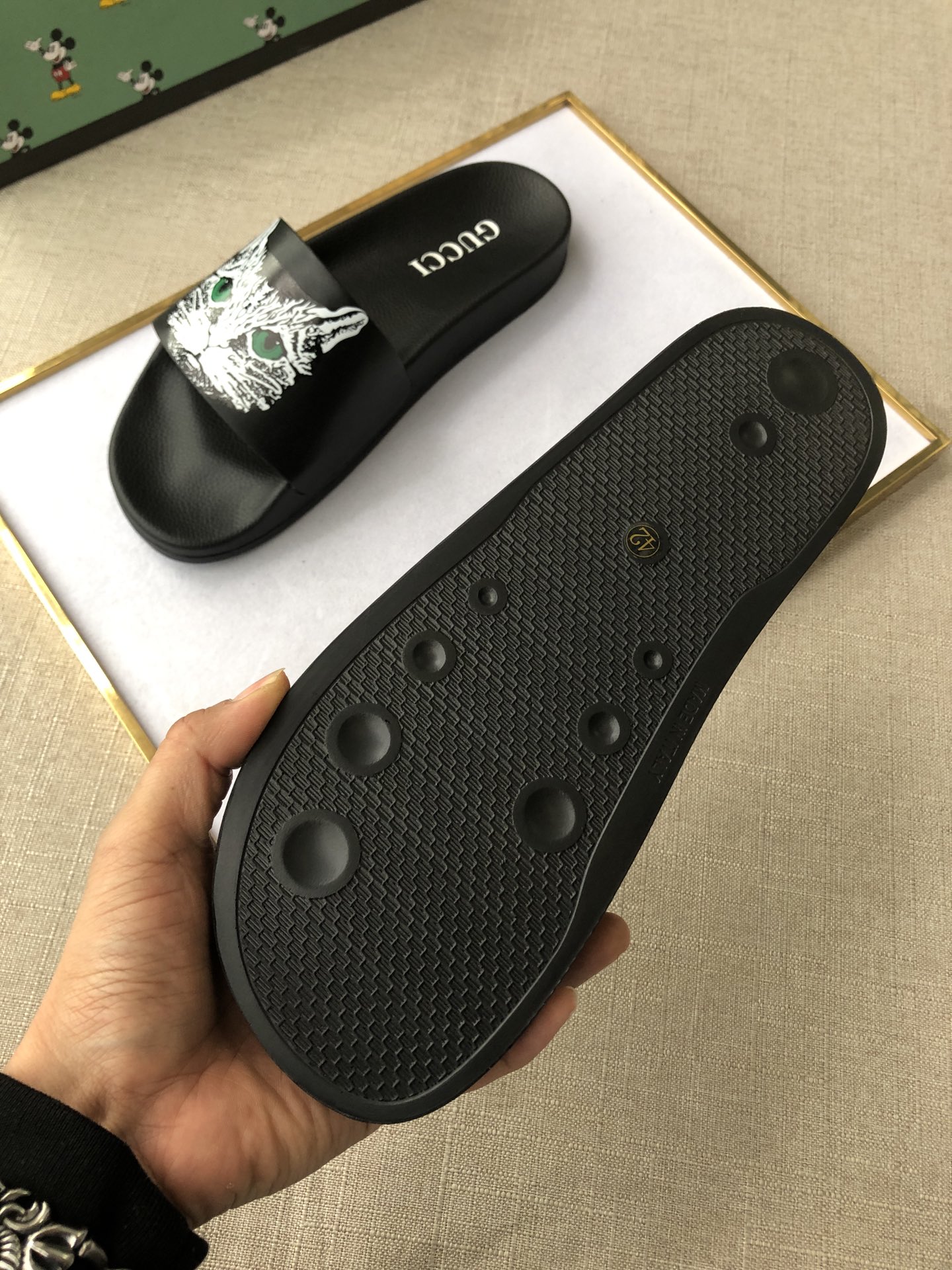 这款鞋子是AAAAA 1:1 质量 (非常棒). 使用了和原版一模一样的材料. 商标部分也保持了和古奇/Gucci一样. 图片拍摄是实物鞋子拍摄, 您所收到的实物保证和我们图片一模一样.