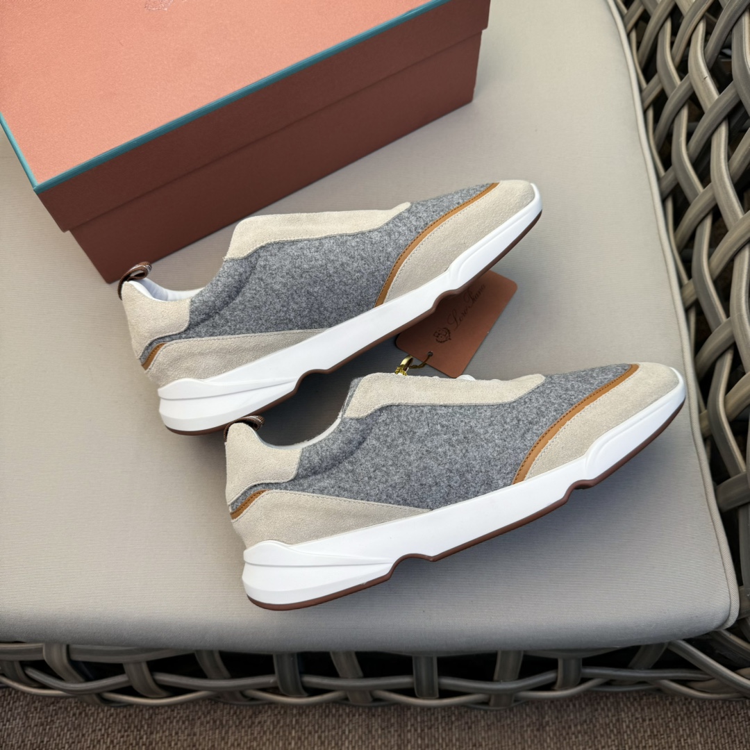 这款鞋子是AAAAA 1:1 质量 (非常棒). 使用了和原版一模一样的材料. 商标部分也保持了和洛罗皮亚纳/Loro Piana一样. 图片拍摄是实物鞋子拍摄, 您所收到的实物保证和我们图片一模一样.