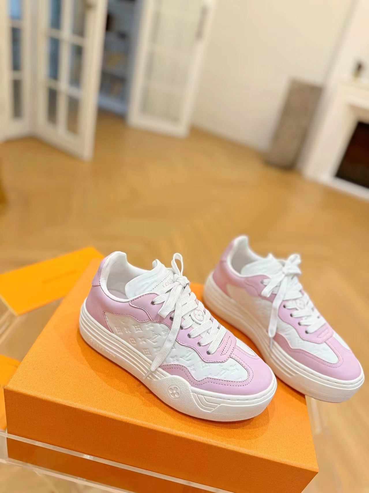这款鞋子是AAAAA 1:1 质量 (非常棒). 使用了和原版一模一样的材料. 商标部分也保持了和路易威登/Louis Vuitton一样. 图片拍摄是实物鞋子拍摄, 您所收到的实物保证和我们图片一模一样.