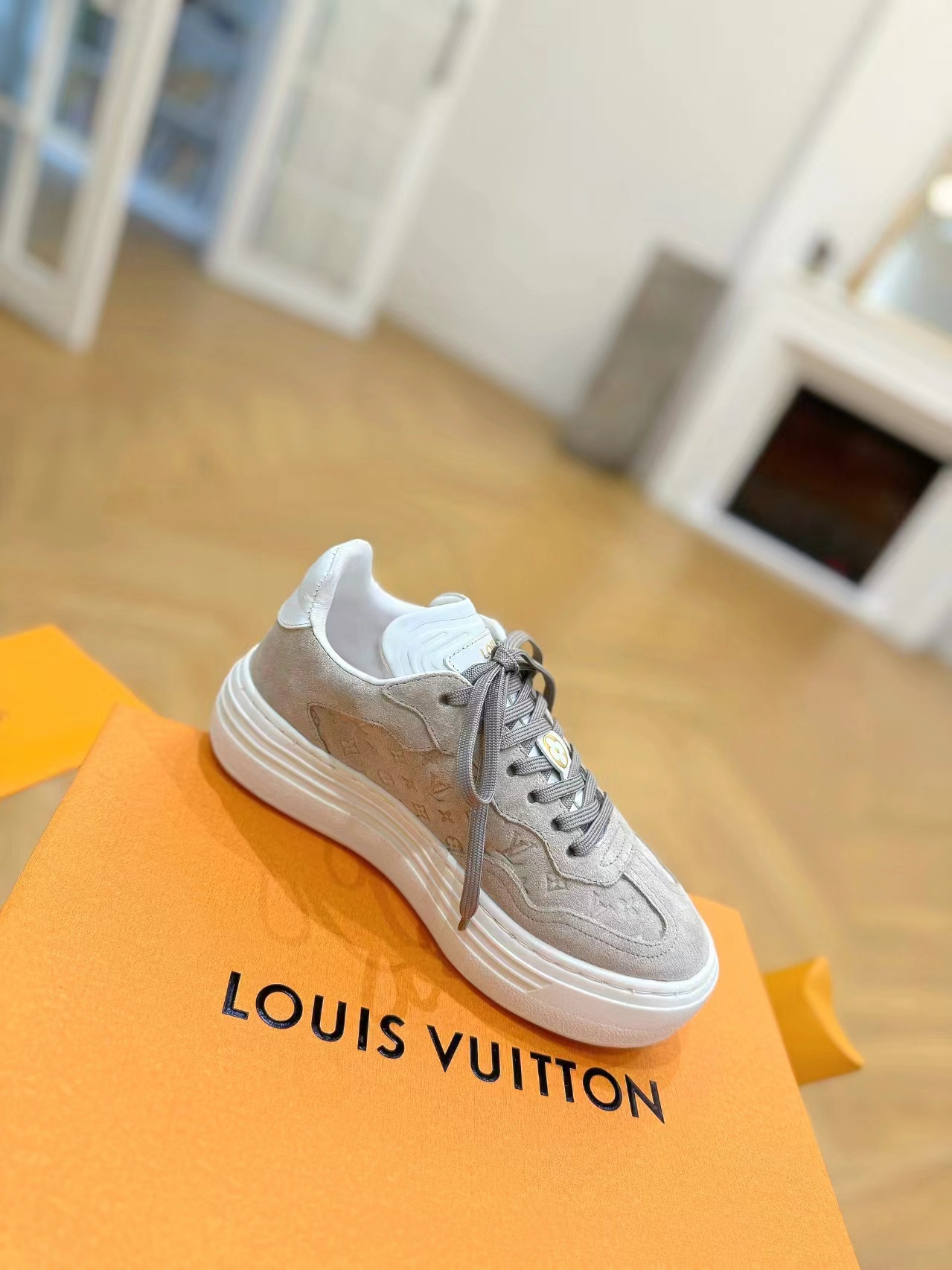 这款鞋子是AAAAA 1:1 质量 (非常棒). 使用了和原版一模一样的材料. 商标部分也保持了和路易威登/Louis Vuitton一样. 图片拍摄是实物鞋子拍摄, 您所收到的实物保证和我们图片一模一样.