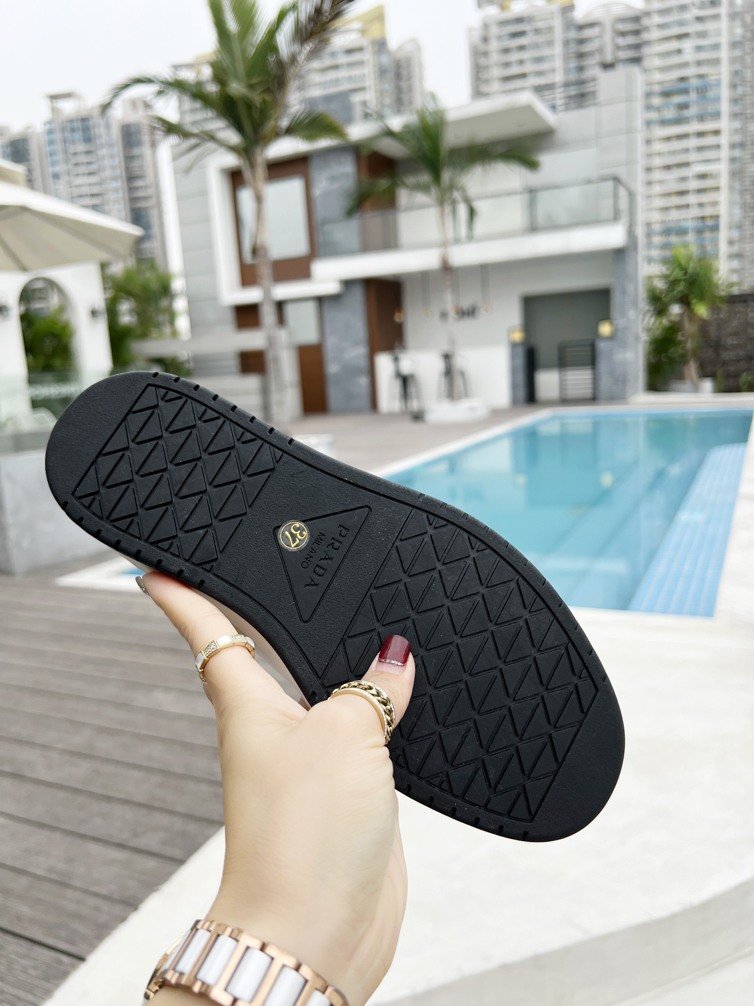 这款鞋子是AAAAA 1:1 质量 (非常棒). 使用了和原版一模一样的材料. 商标部分也保持了和普拉达/Prada一样. 图片拍摄是实物鞋子拍摄, 您所收到的实物保证和我们图片一模一样.