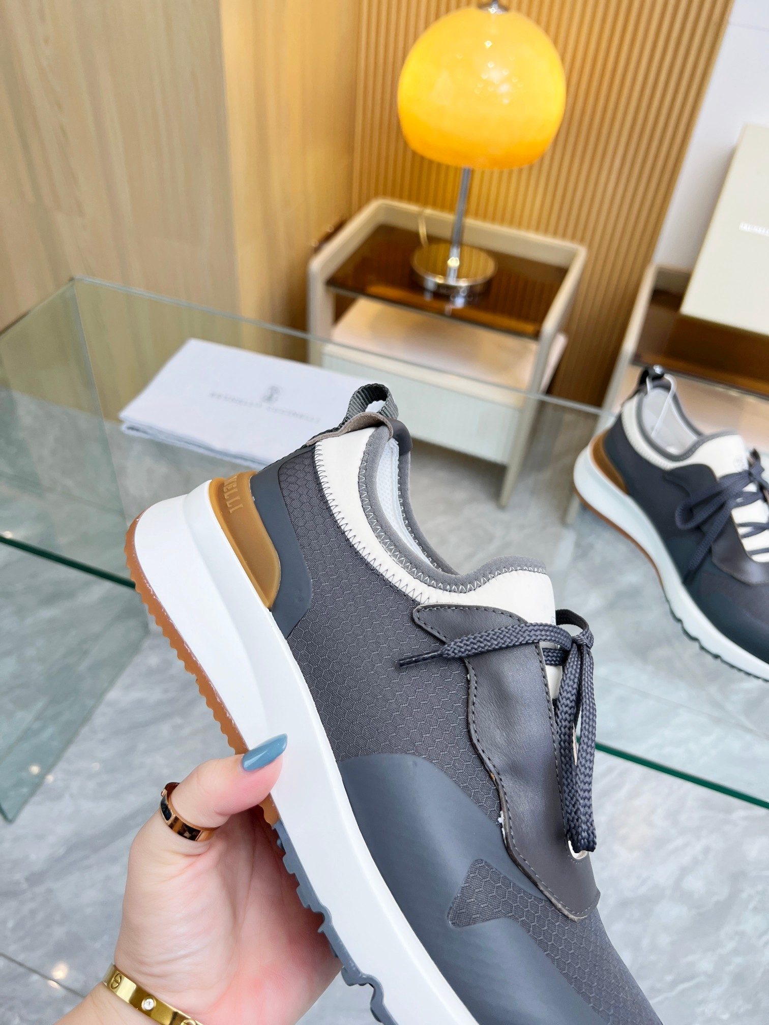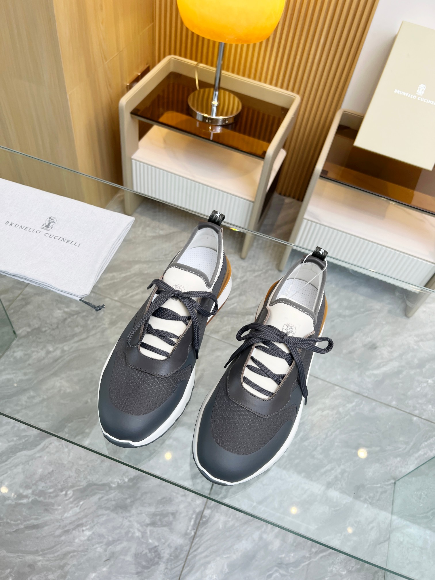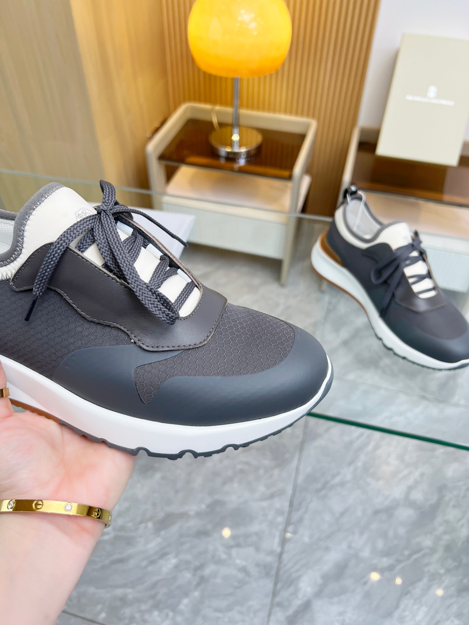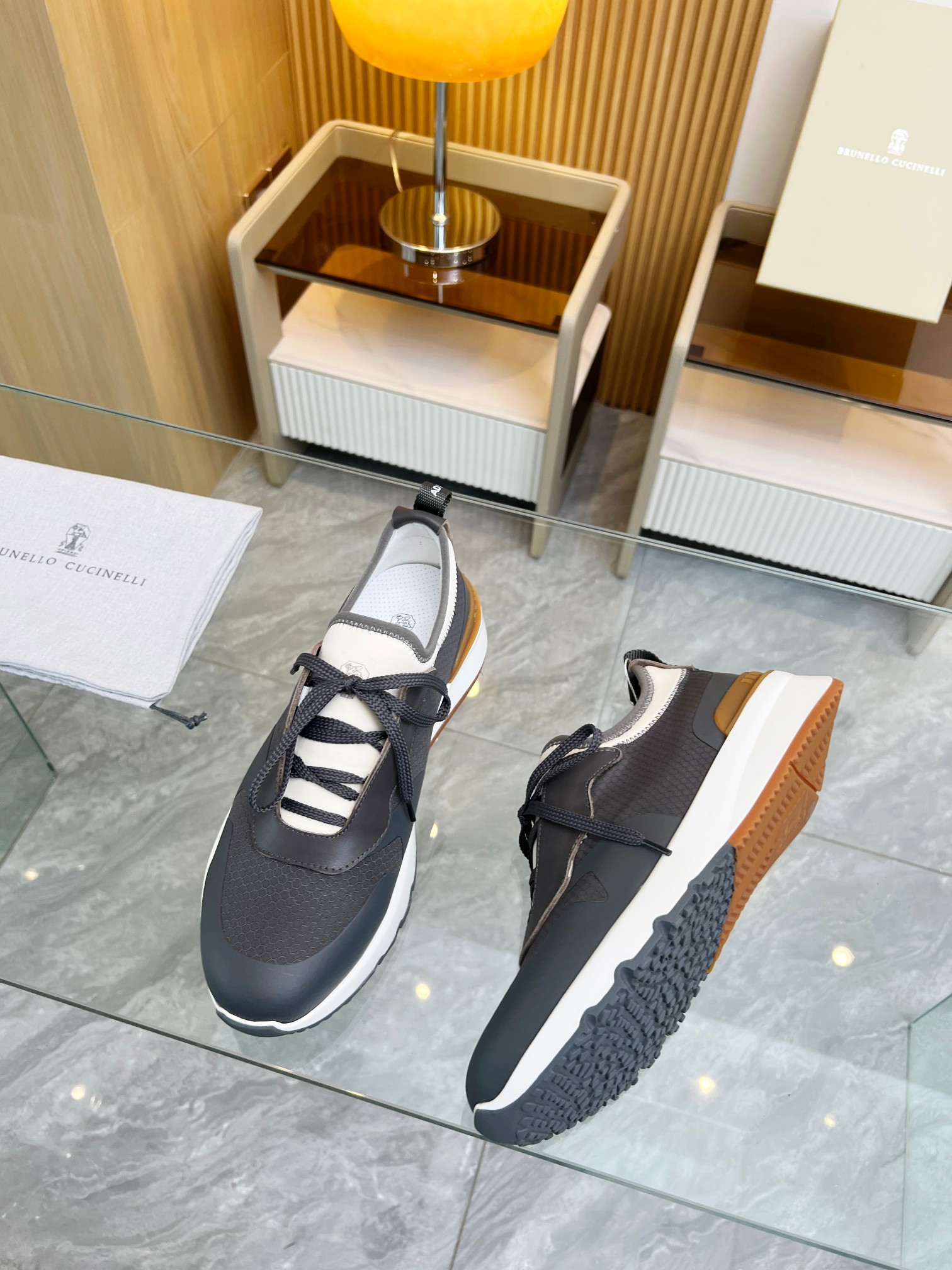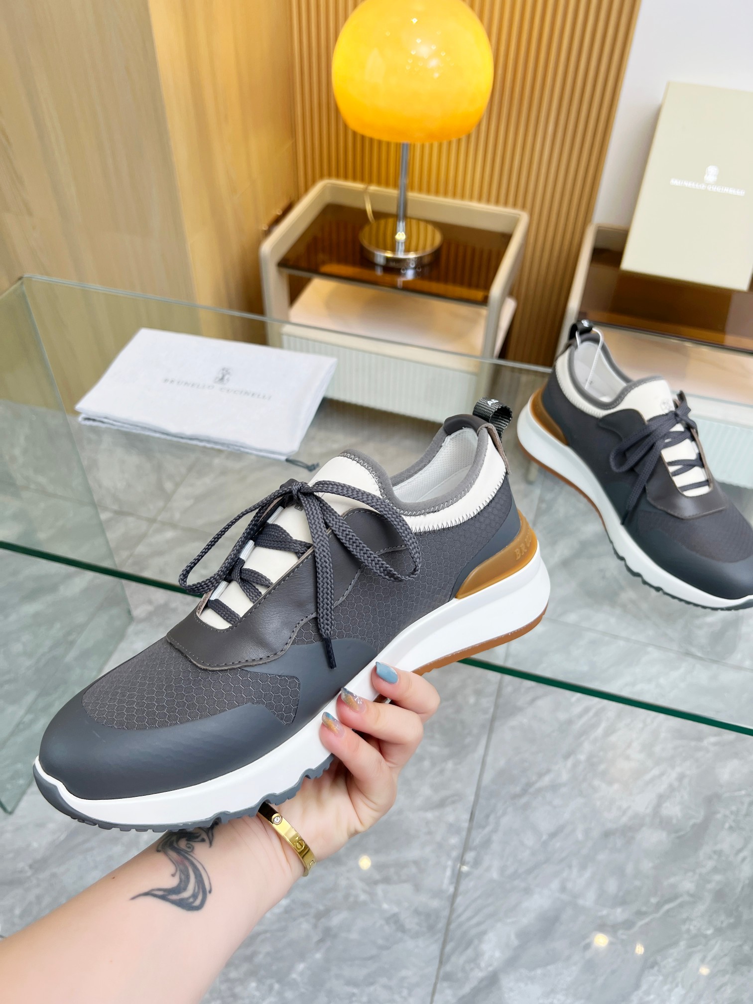 这款鞋子是AAAAA 1:1 质量 (非常棒). 使用了和原版一模一样的材料. 商标部分也保持了和Brunello Cucinelli一样. 图片拍摄是实物鞋子拍摄, 您所收到的实物保证和我们图片一模一样.