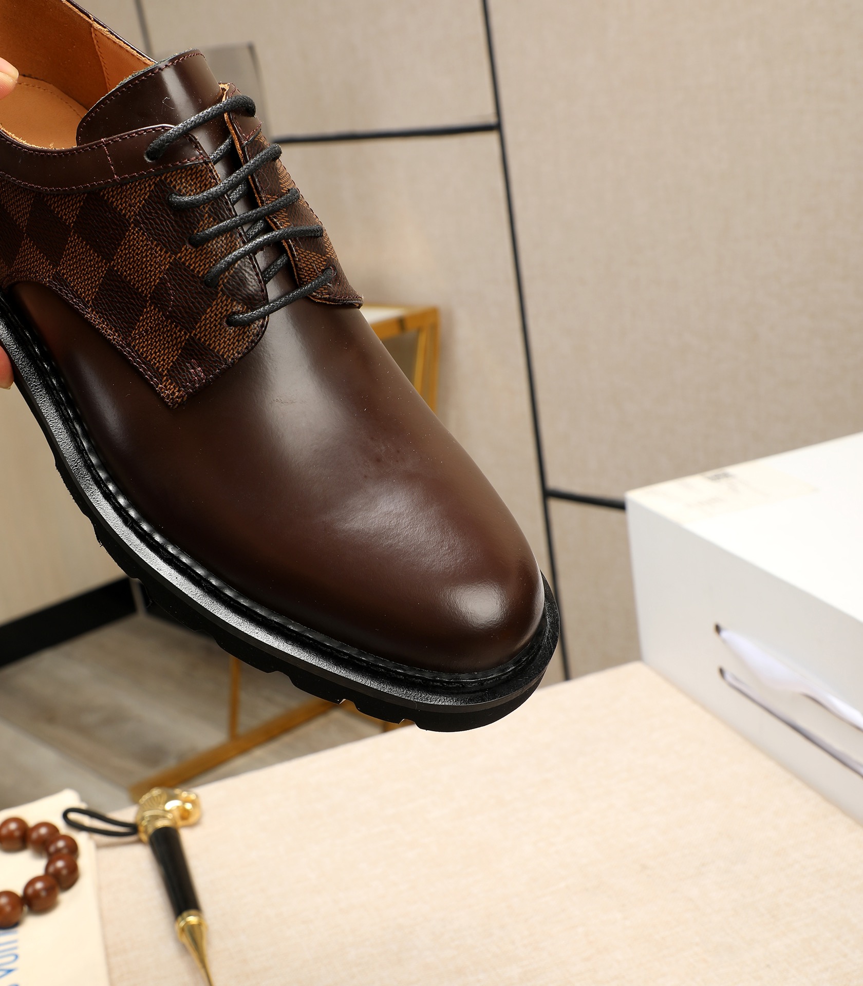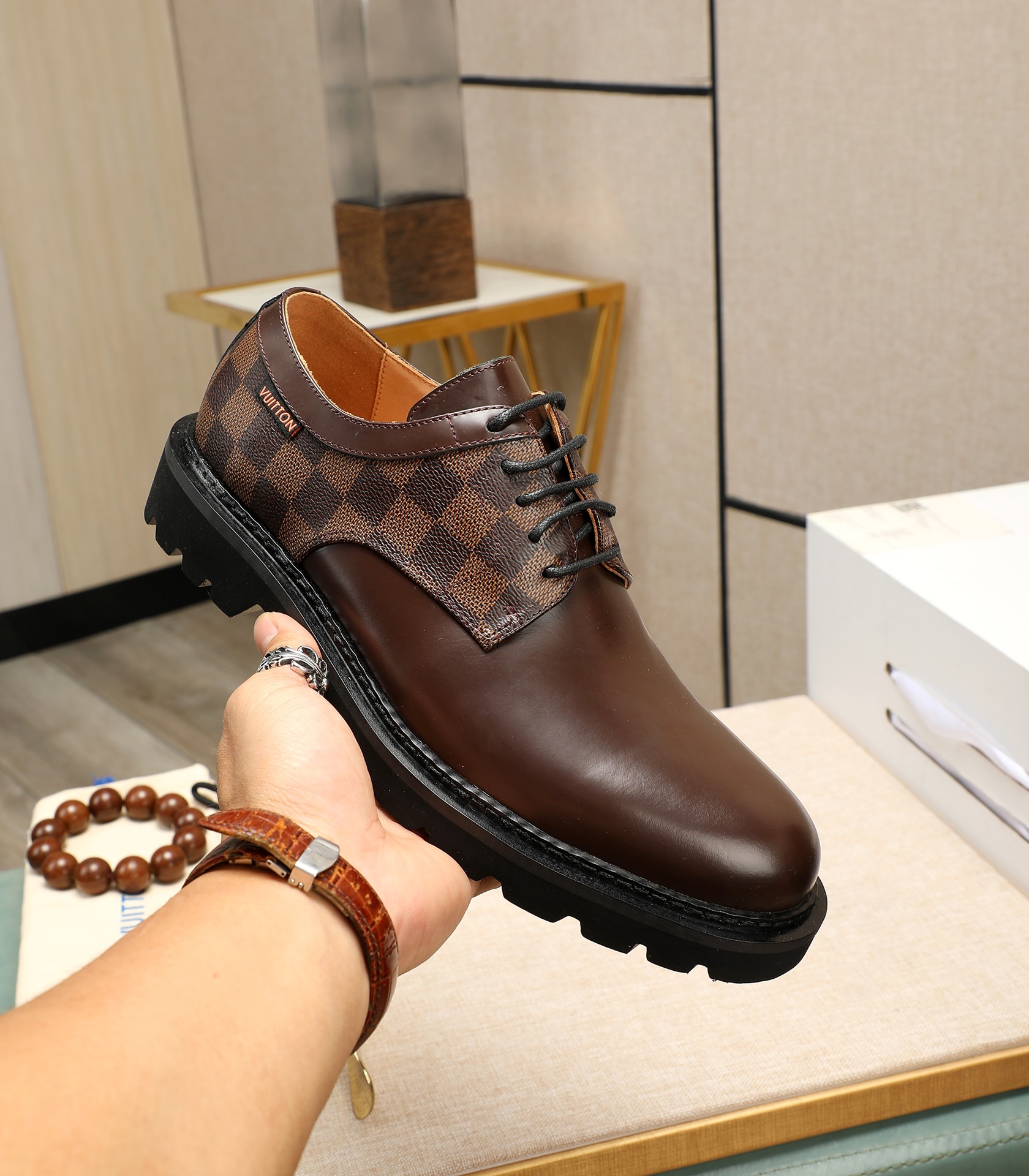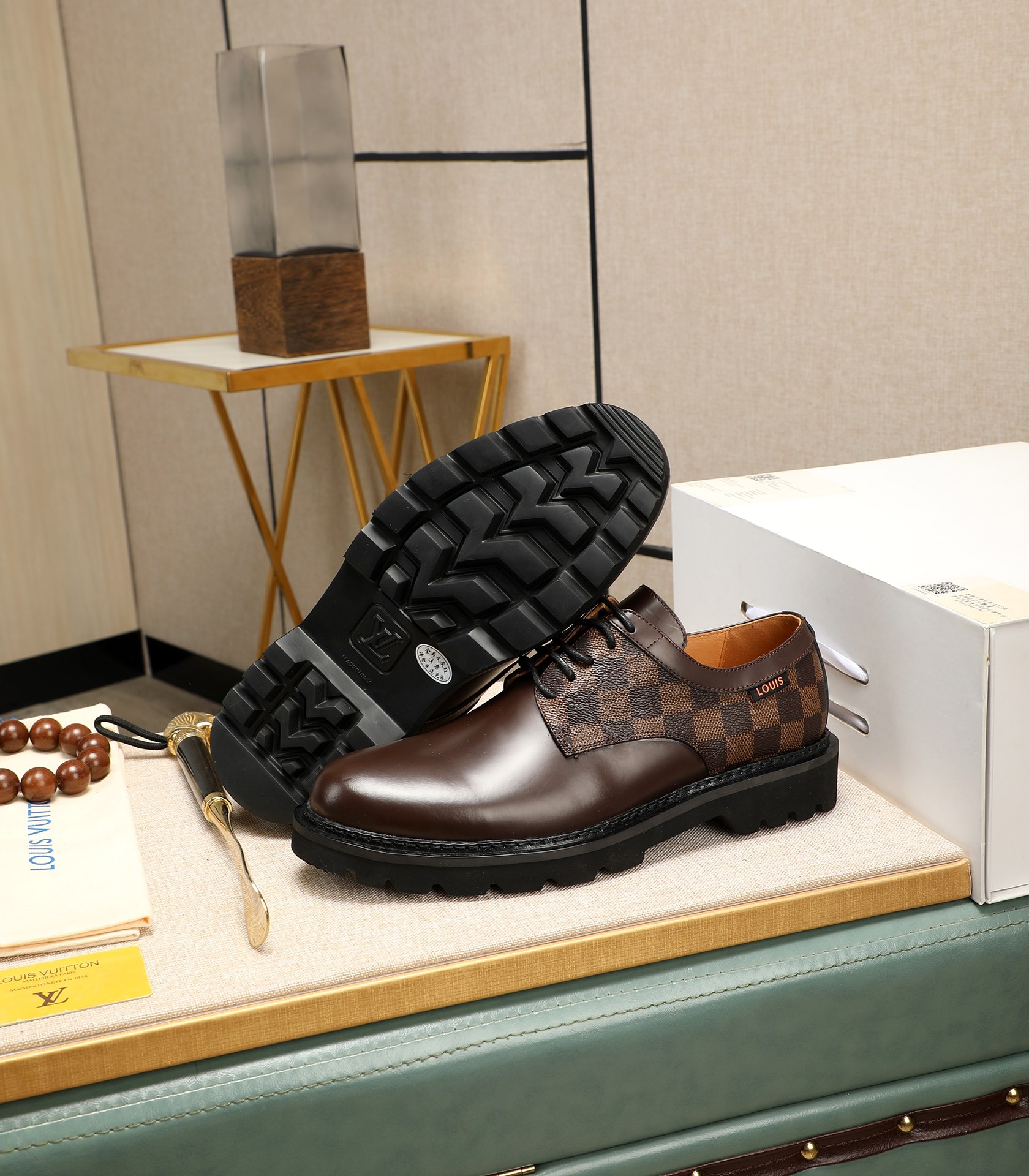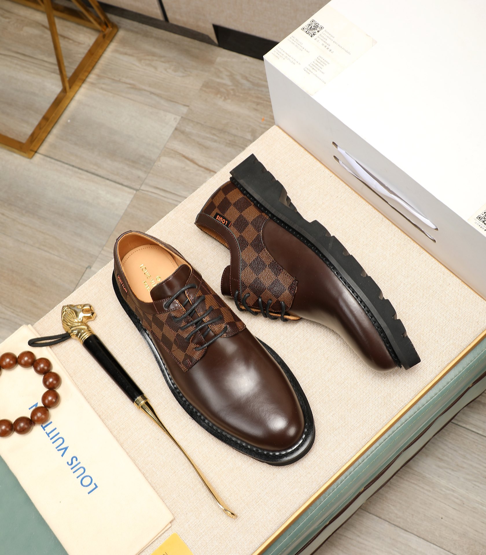 这款鞋子是AAAAA 1:1 质量 (非常棒). 使用了和原版一模一样的材料. 商标部分也保持了和路易威登/Louis Vuitton一样. 图片拍摄是实物鞋子拍摄, 您所收到的实物保证和我们图片一模一样.