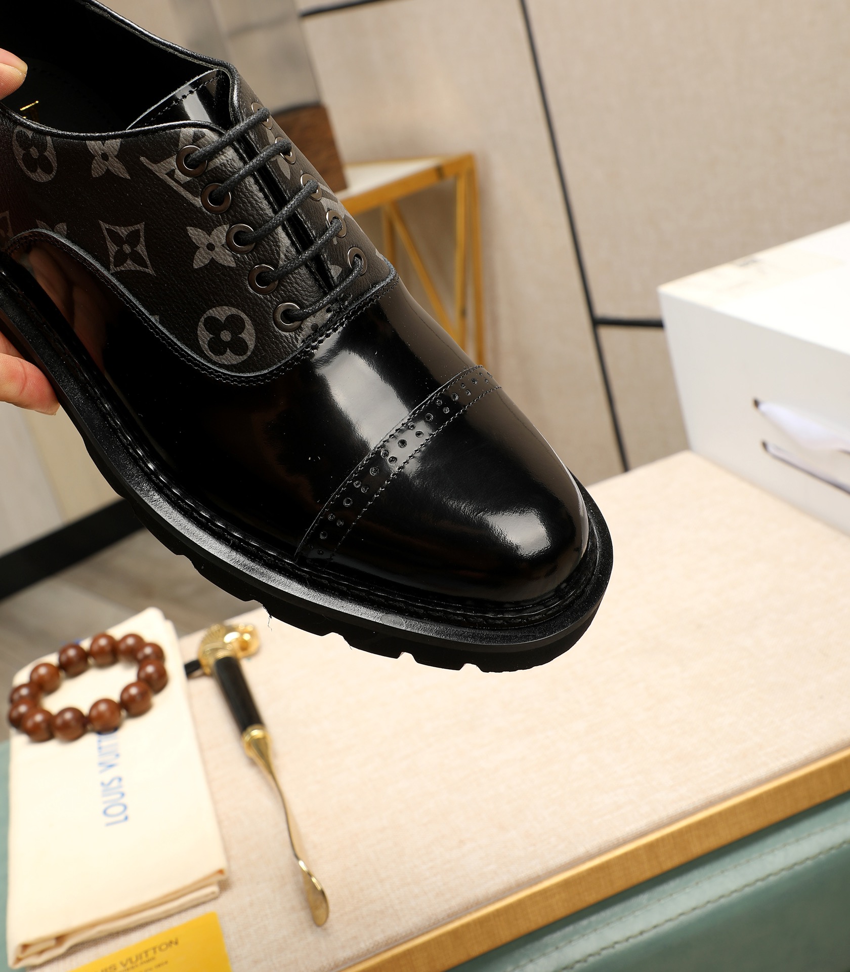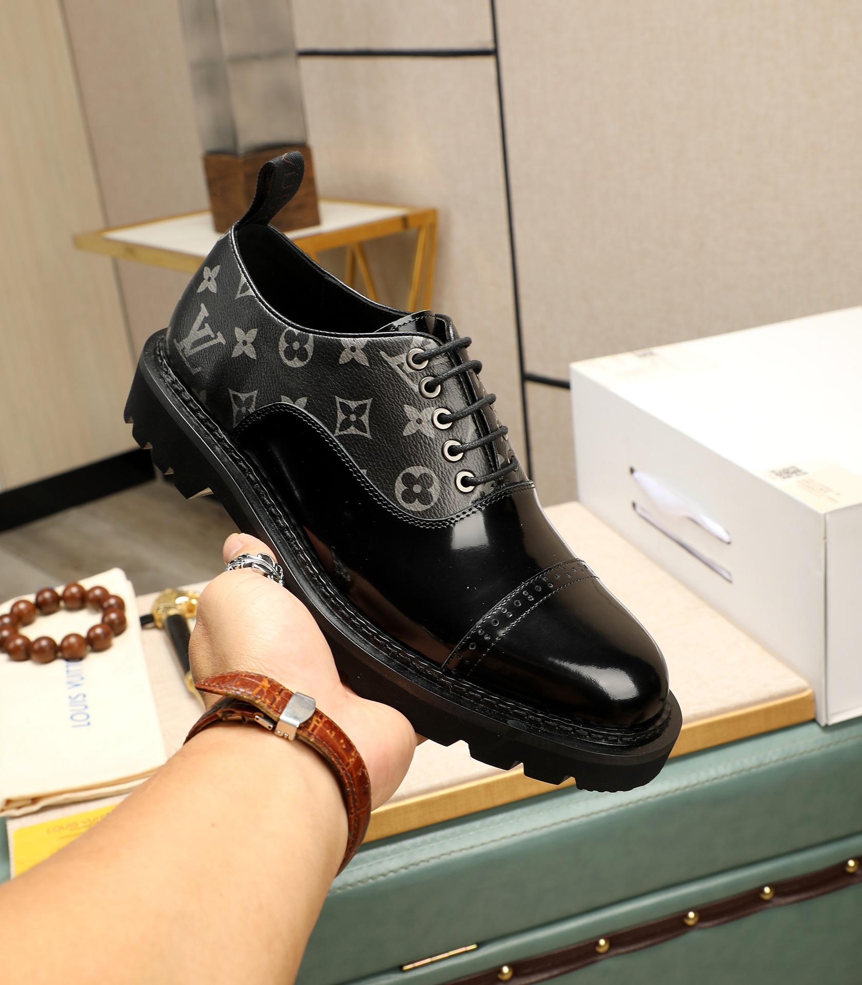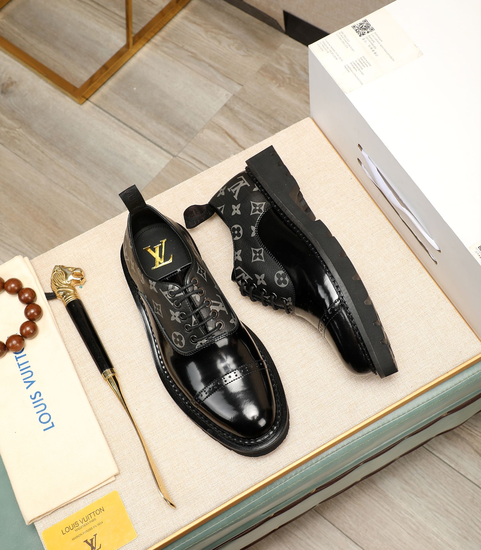 这款鞋子是AAAAA 1:1 质量 (非常棒). 使用了和原版一模一样的材料. 商标部分也保持了和路易威登/Louis Vuitton一样. 图片拍摄是实物鞋子拍摄, 您所收到的实物保证和我们图片一模一样.