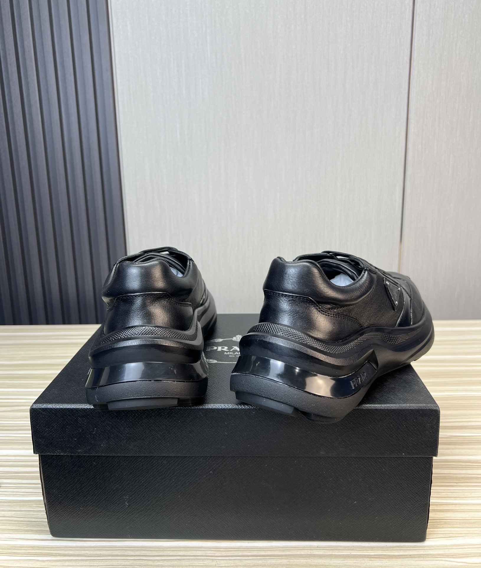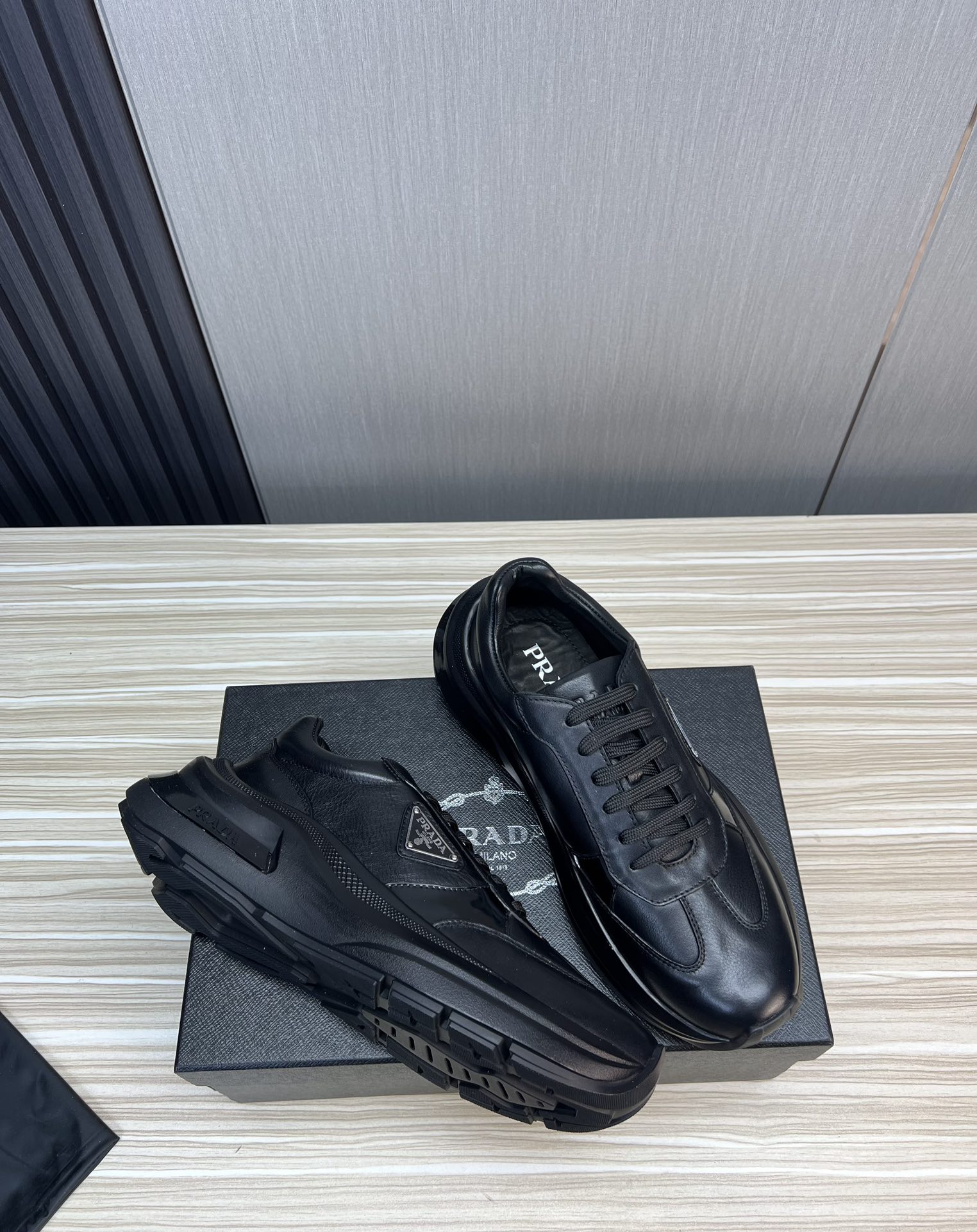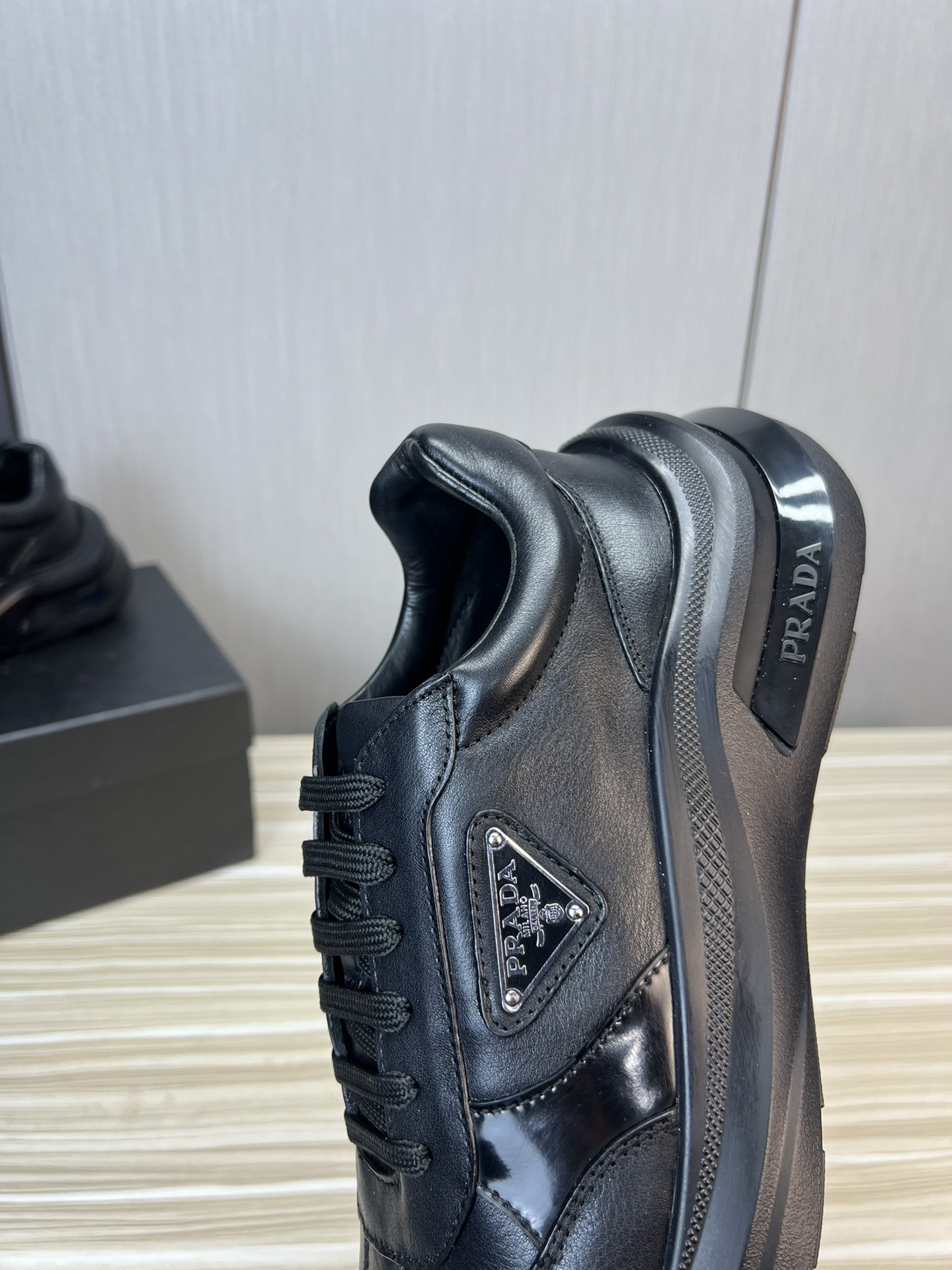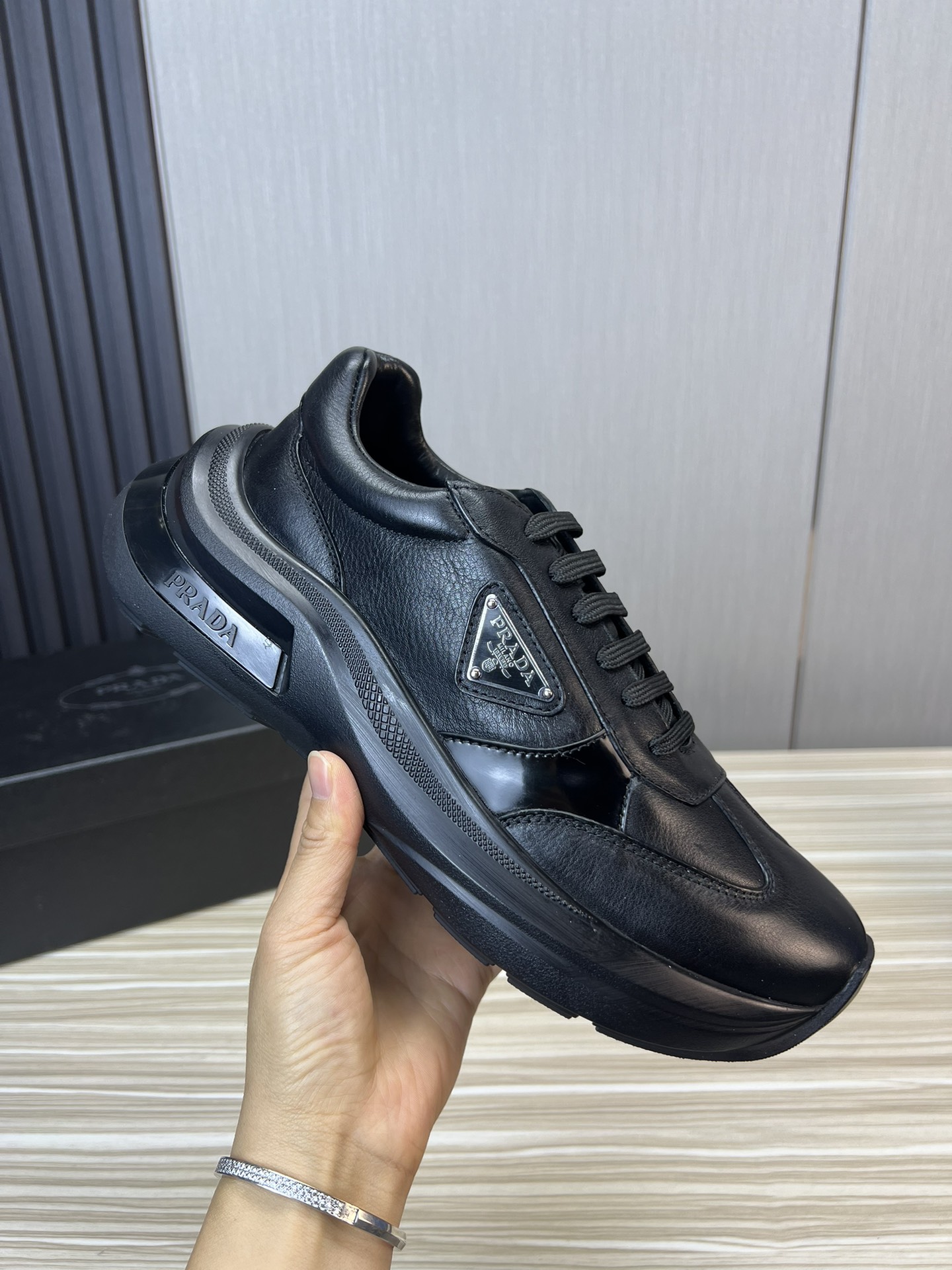 这款鞋子是AAAAA 1:1 质量 (非常棒). 使用了和原版一模一样的材料. 商标部分也保持了和普拉达/Prada一样. 图片拍摄是实物鞋子拍摄, 您所收到的实物保证和我们图片一模一样.