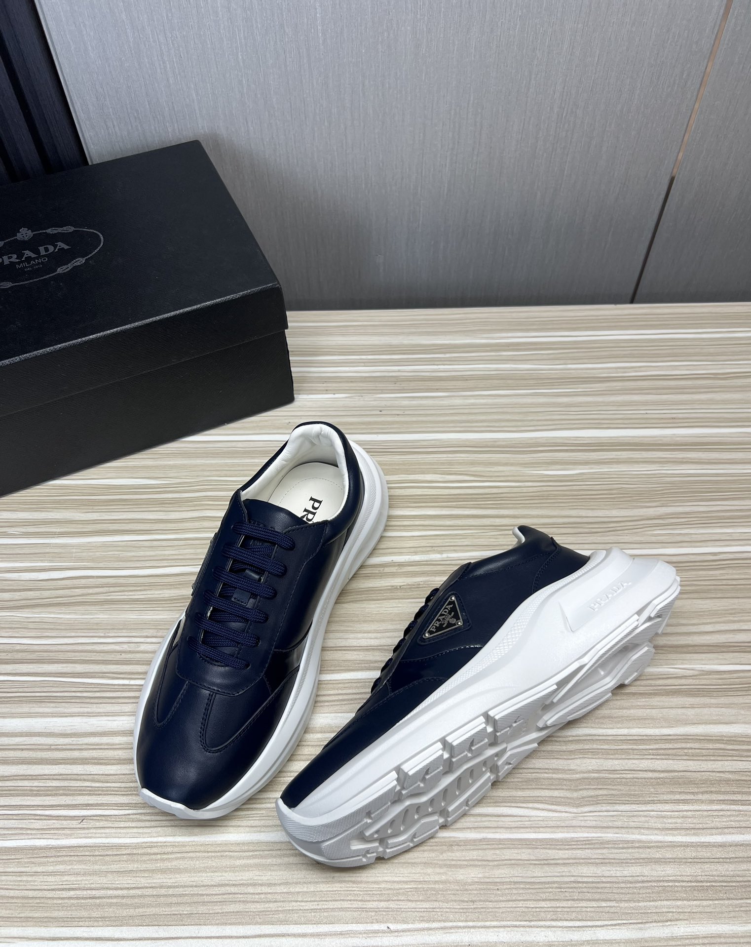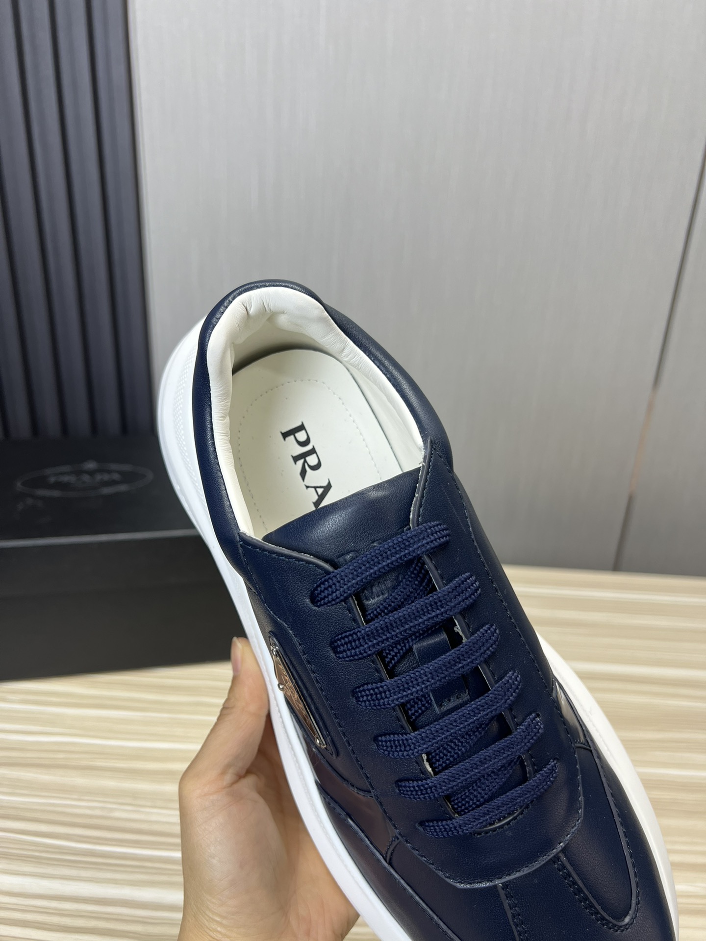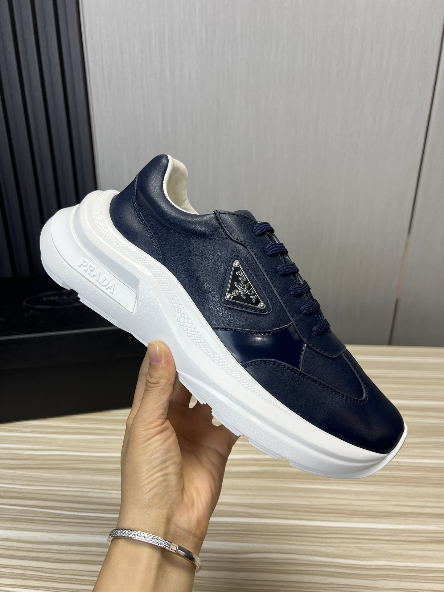 这款鞋子是AAAAA 1:1 质量 (非常棒). 使用了和原版一模一样的材料. 商标部分也保持了和普拉达/Prada一样. 图片拍摄是实物鞋子拍摄, 您所收到的实物保证和我们图片一模一样.