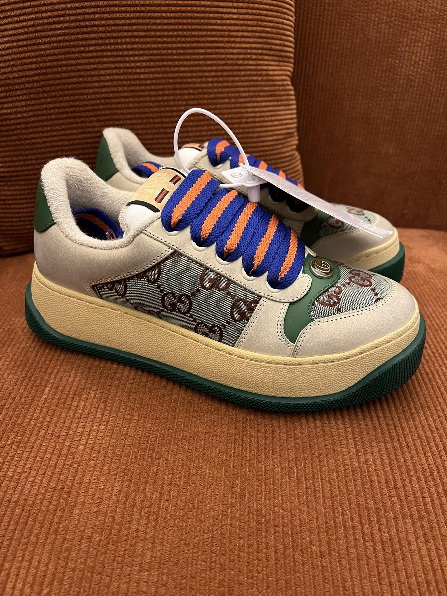 这款鞋子是AAAAA 1:1 质量 (非常棒). 使用了和原版一模一样的材料. 商标部分也保持了和古奇/Gucci一样. 图片拍摄是实物鞋子拍摄, 您所收到的实物保证和我们图片一模一样.