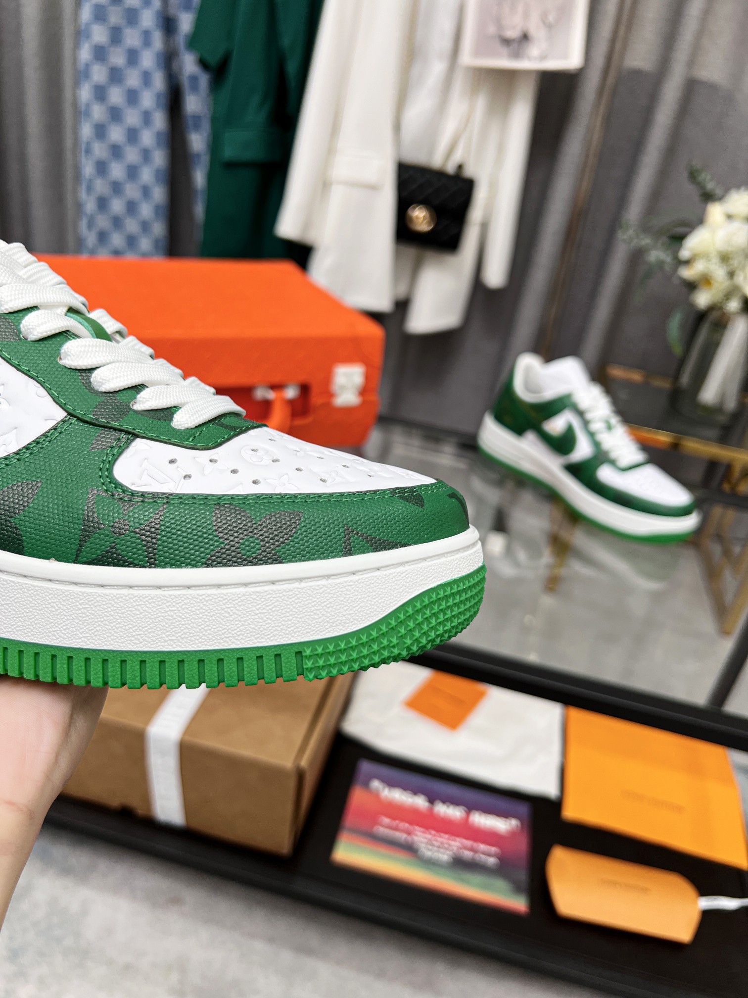 这款鞋子是AAAAA 1:1 质量 (非常棒). 使用了和原版一模一样的材料. 商标部分也保持了和路易威登/Louis Vuitton一样. 图片拍摄是实物鞋子拍摄, 您所收到的实物保证和我们图片一模一样.