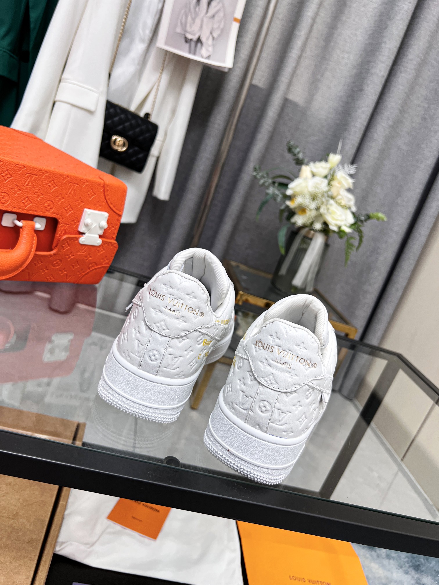 这款鞋子是AAAAA 1:1 质量 (非常棒). 使用了和原版一模一样的材料. 商标部分也保持了和路易威登/Louis Vuitton一样. 图片拍摄是实物鞋子拍摄, 您所收到的实物保证和我们图片一模一样.