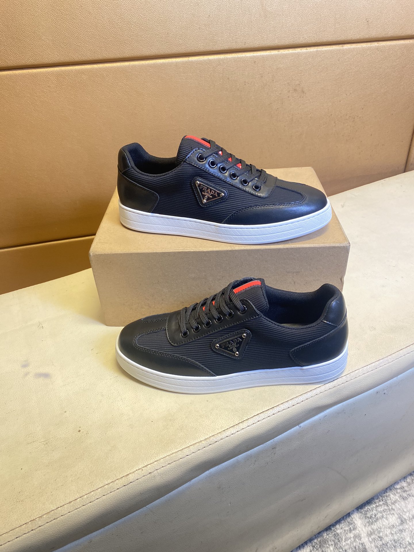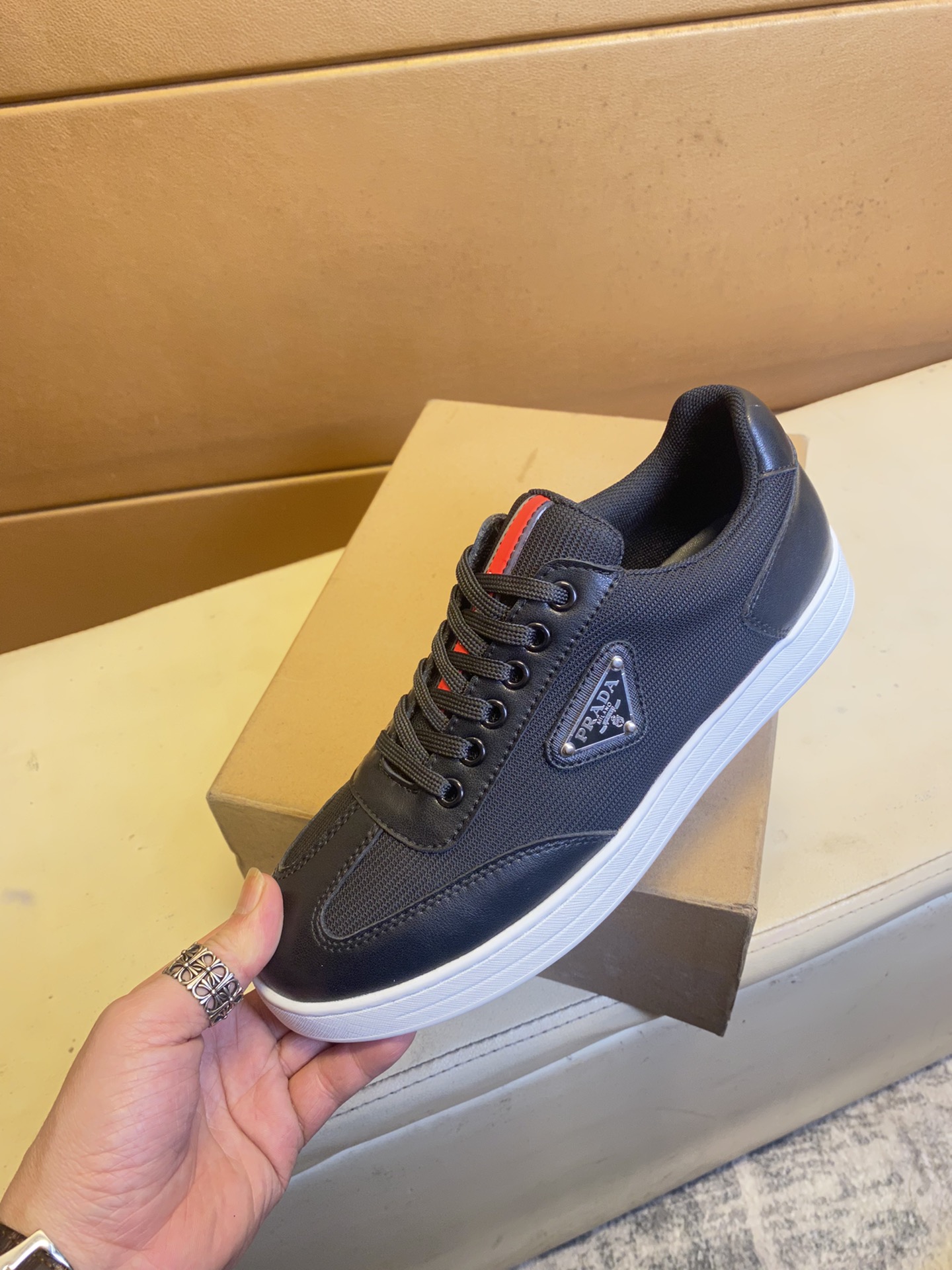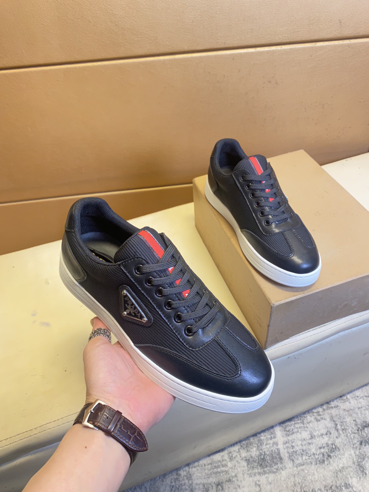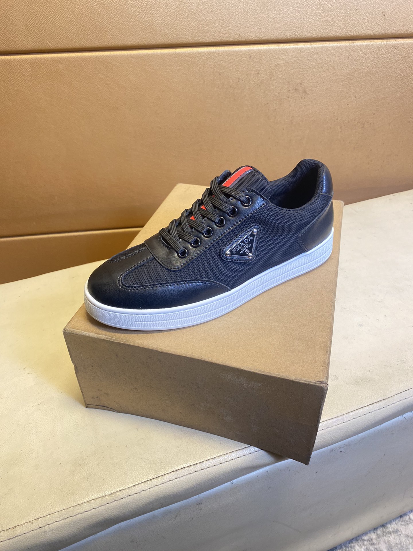 这款鞋子是AAAAA 1:1 质量 (非常棒). 使用了和原版一模一样的材料. 商标部分也保持了和普拉达/Prada一样. 图片拍摄是实物鞋子拍摄, 您所收到的实物保证和我们图片一模一样.
