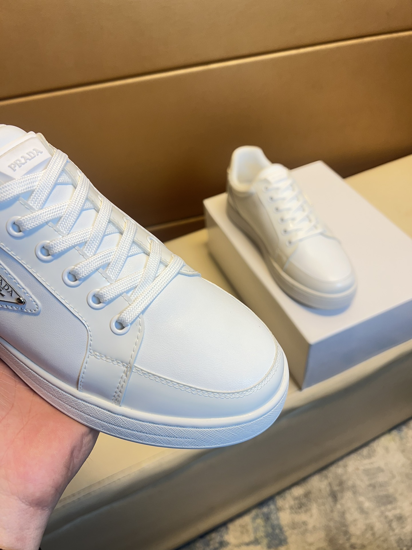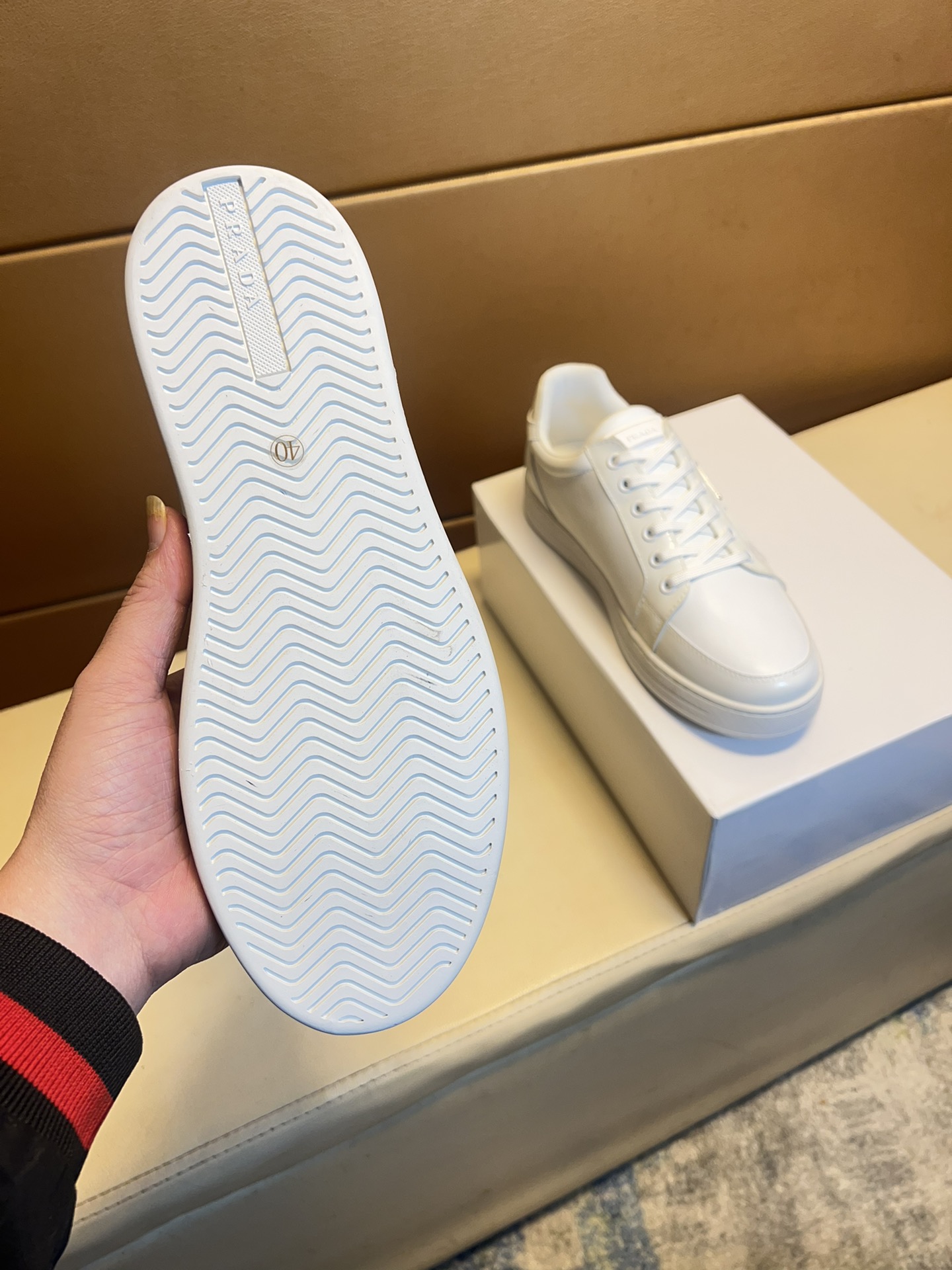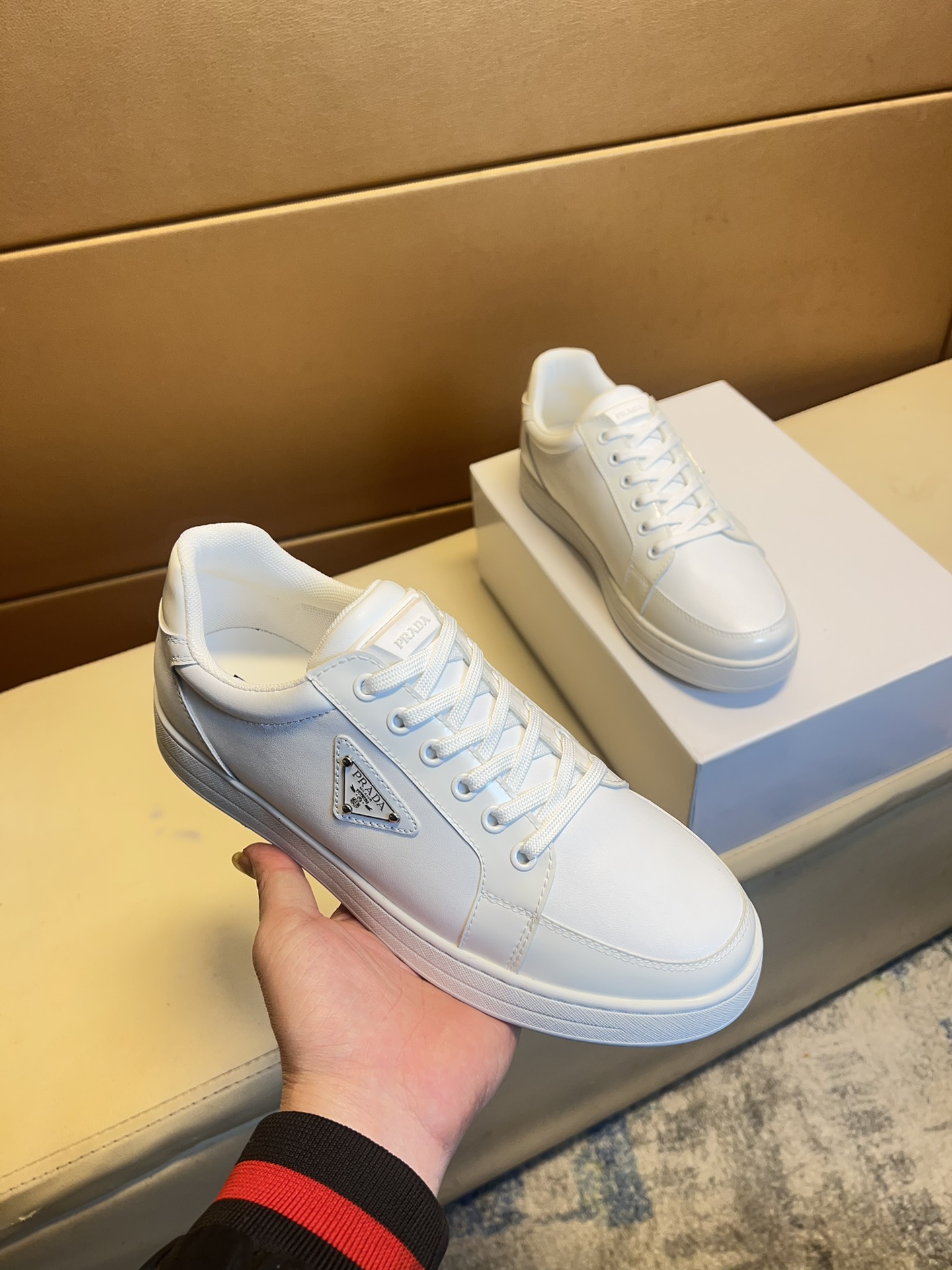 这款鞋子是AAAAA 1:1 质量 (非常棒). 使用了和原版一模一样的材料. 商标部分也保持了和普拉达/Prada一样. 图片拍摄是实物鞋子拍摄, 您所收到的实物保证和我们图片一模一样.