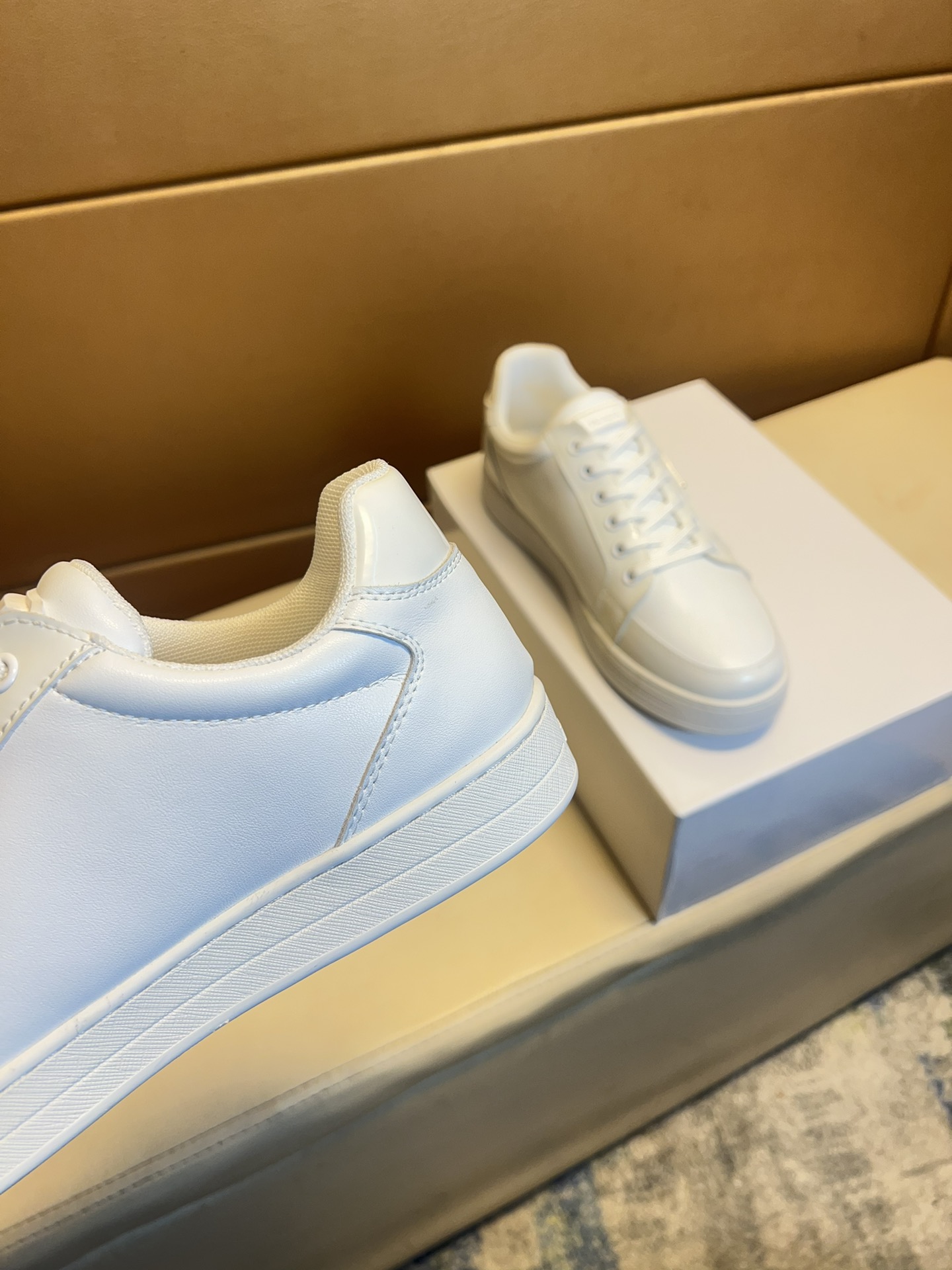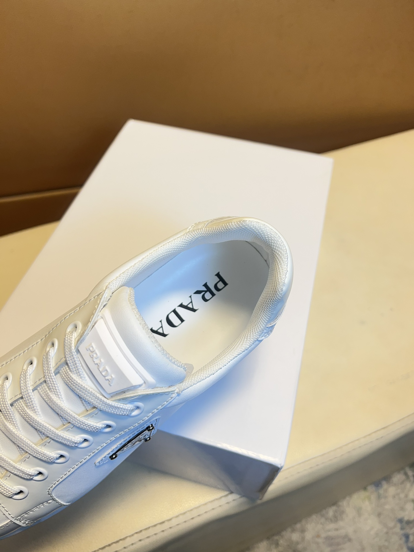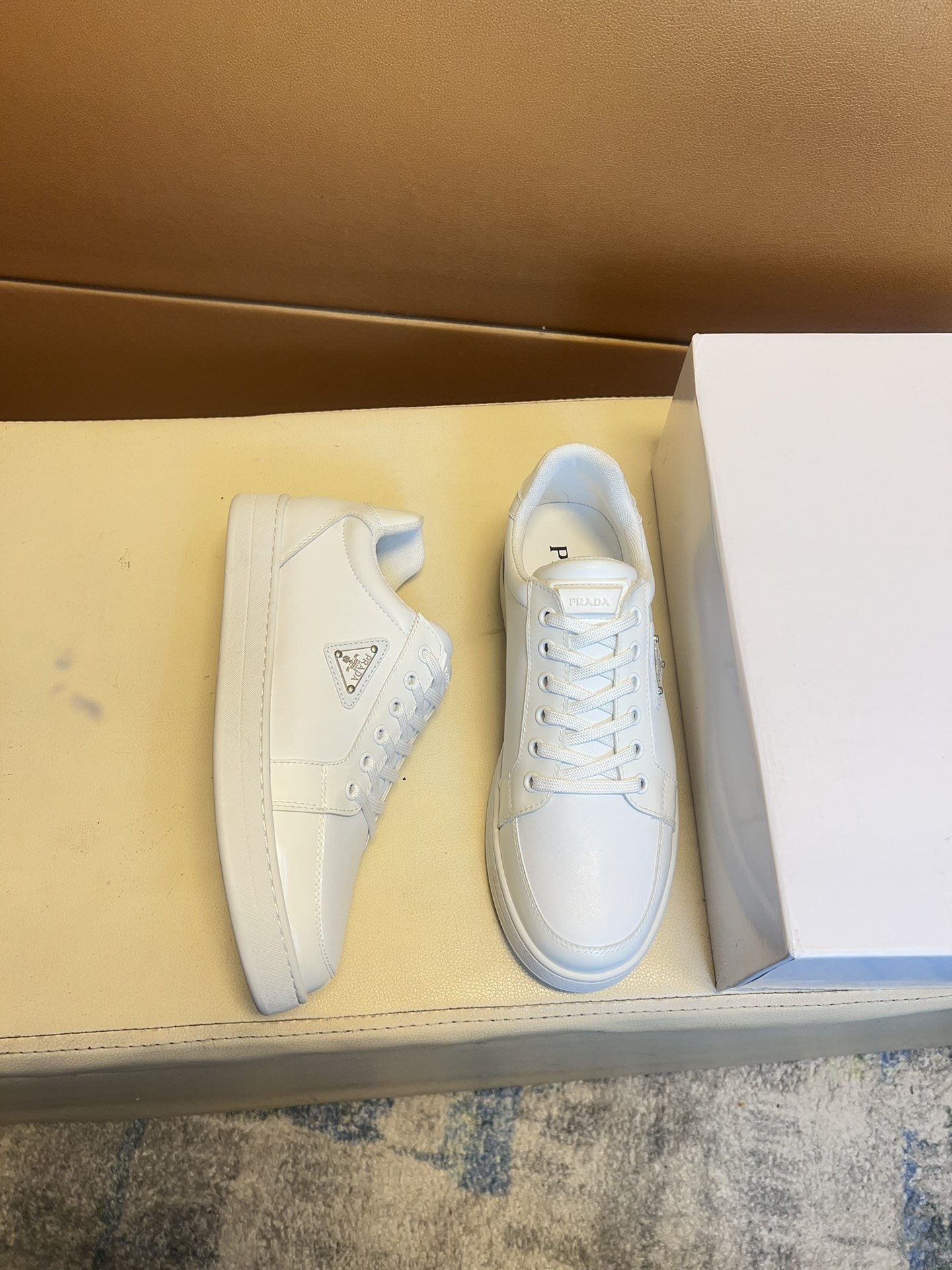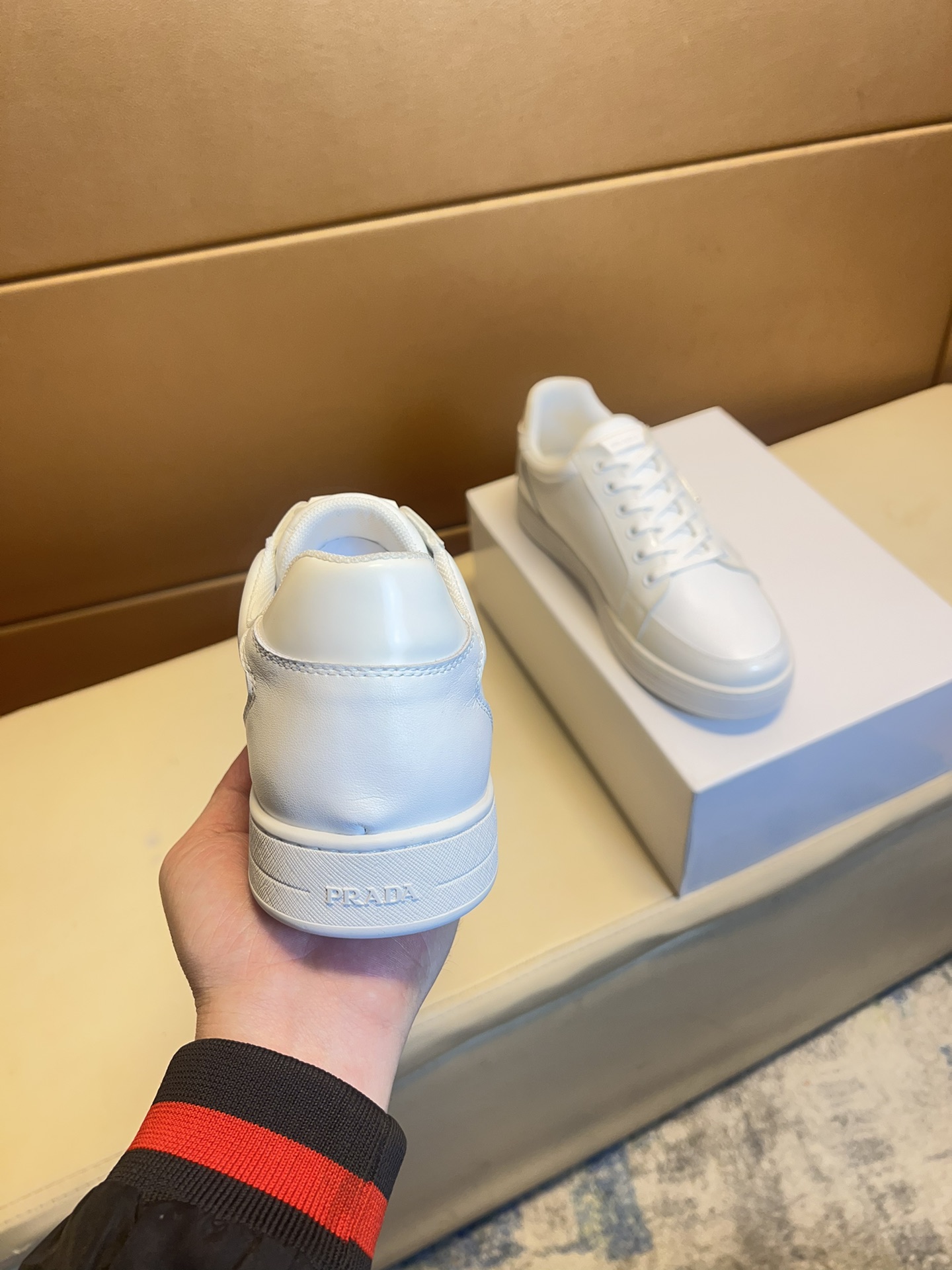这款鞋子是AAAAA 1:1 质量 (非常棒). 使用了和原版一模一样的材料. 商标部分也保持了和普拉达/Prada一样. 图片拍摄是实物鞋子拍摄, 您所收到的实物保证和我们图片一模一样.
