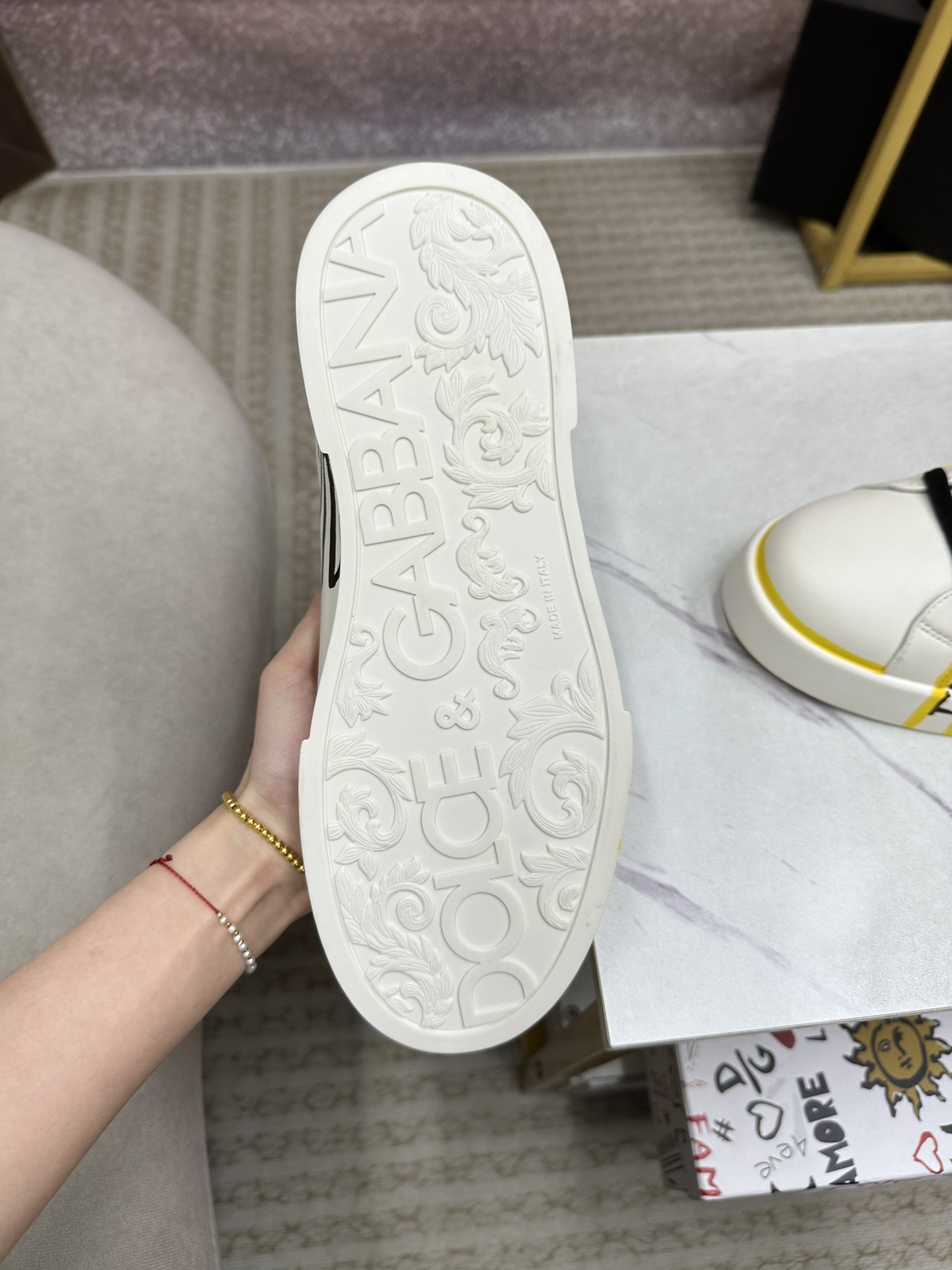 这款鞋子是AAAAA 1:1 质量 (非常棒). 使用了和原版一模一样的材料. 商标部分也保持了和杜嘉班纳/Dolce&Gabbana一样. 图片拍摄是实物鞋子拍摄, 您所收到的实物保证和我们图片一模一样.
