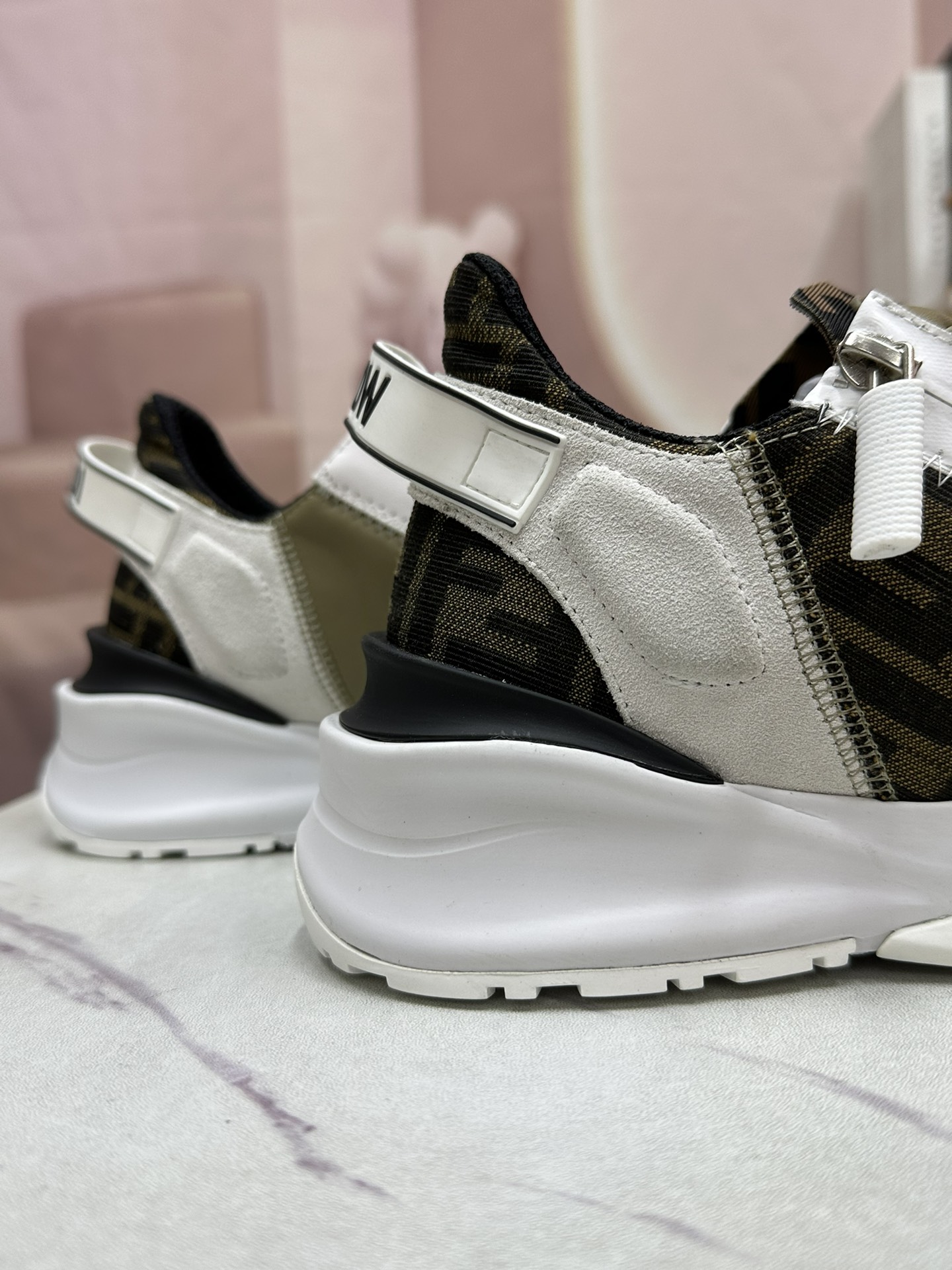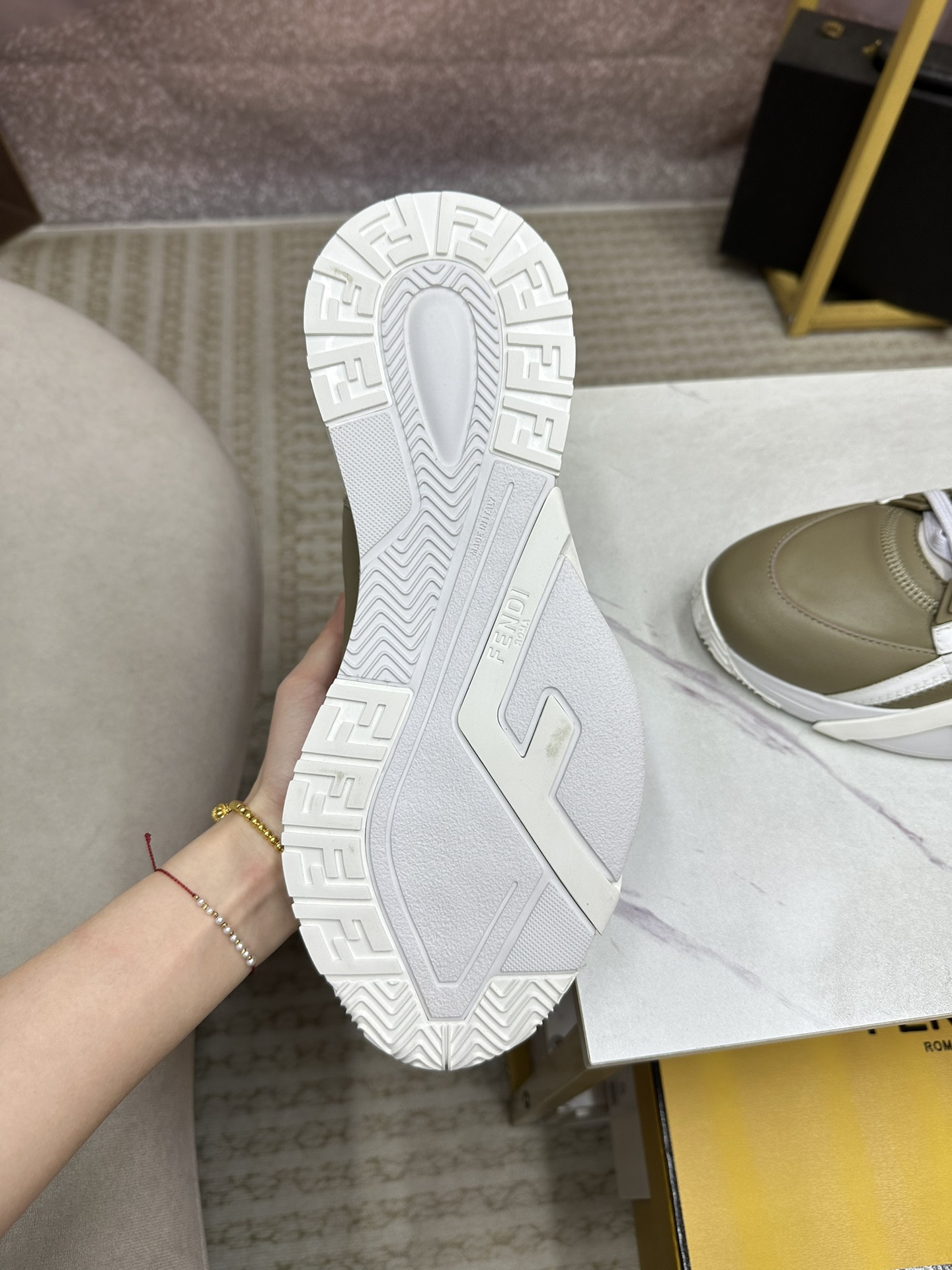 这款鞋子是AAAAA 1:1 质量 (非常棒). 使用了和原版一模一样的材料. 商标部分也保持了和芬迪/Fendi一样. 图片拍摄是实物鞋子拍摄, 您所收到的实物保证和我们图片一模一样.