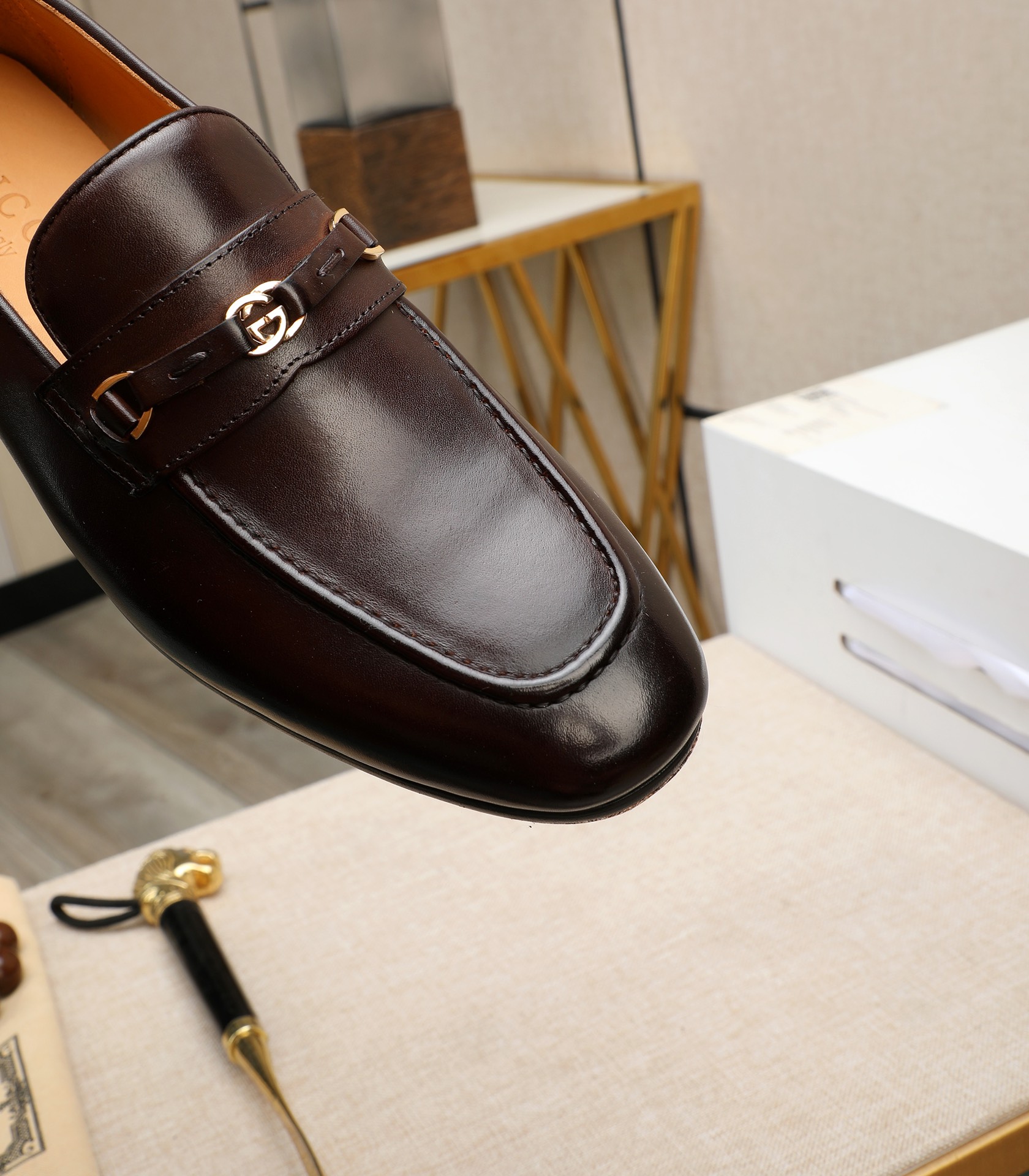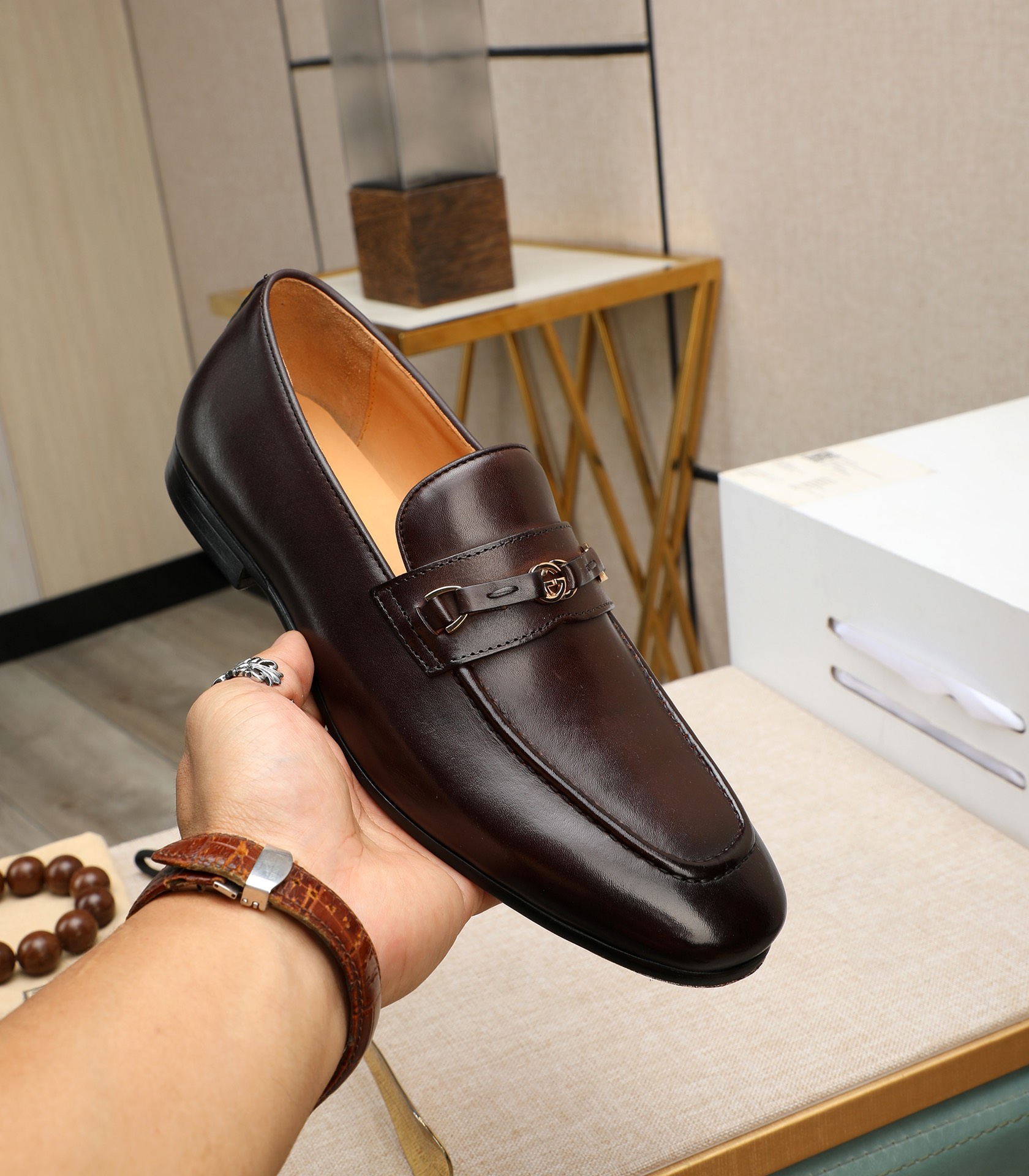 这款鞋子是AAAAA 1:1 质量 (非常棒). 使用了和原版一模一样的材料. 商标部分也保持了和古奇/Gucci一样. 图片拍摄是实物鞋子拍摄, 您所收到的实物保证和我们图片一模一样.