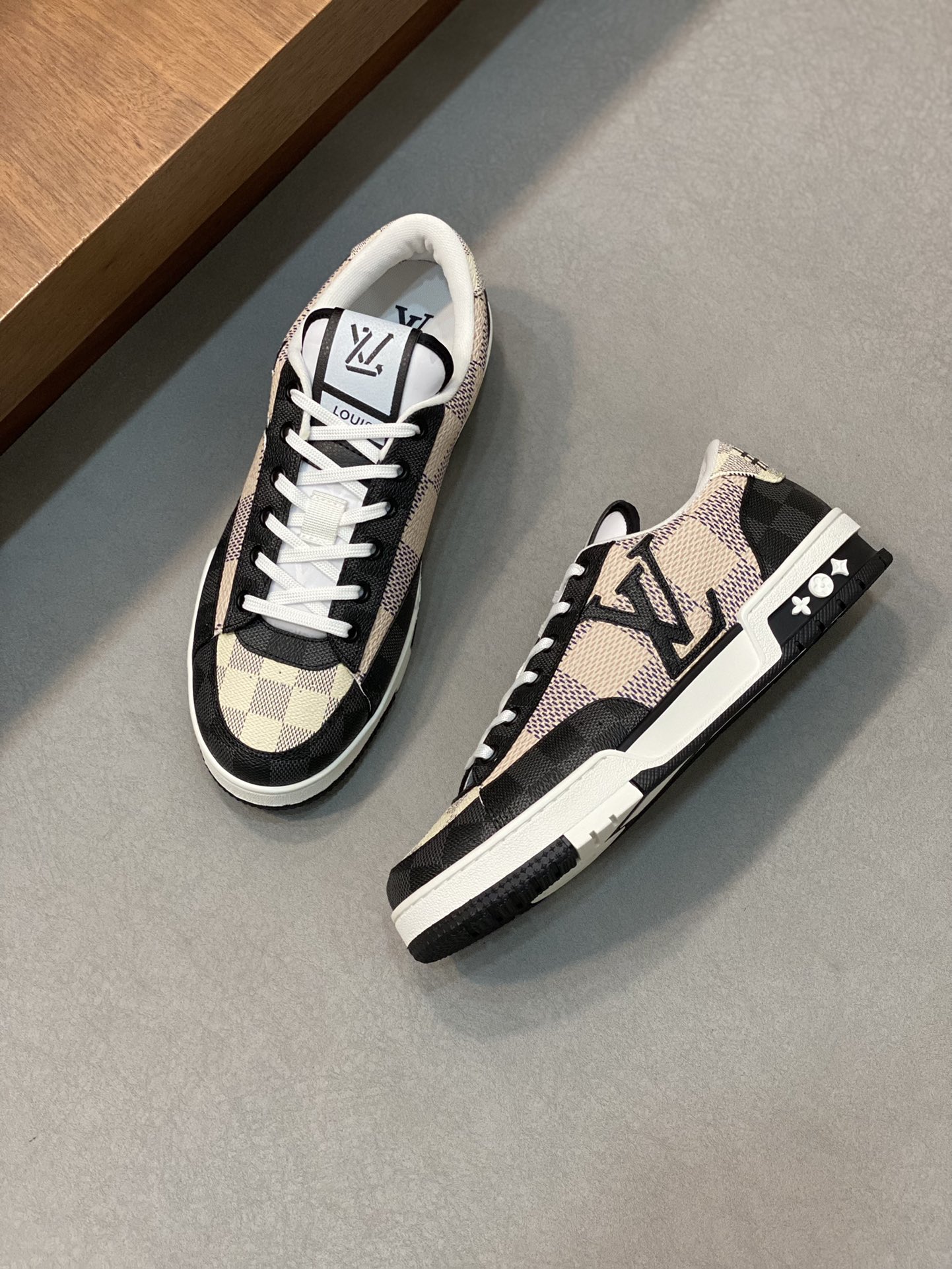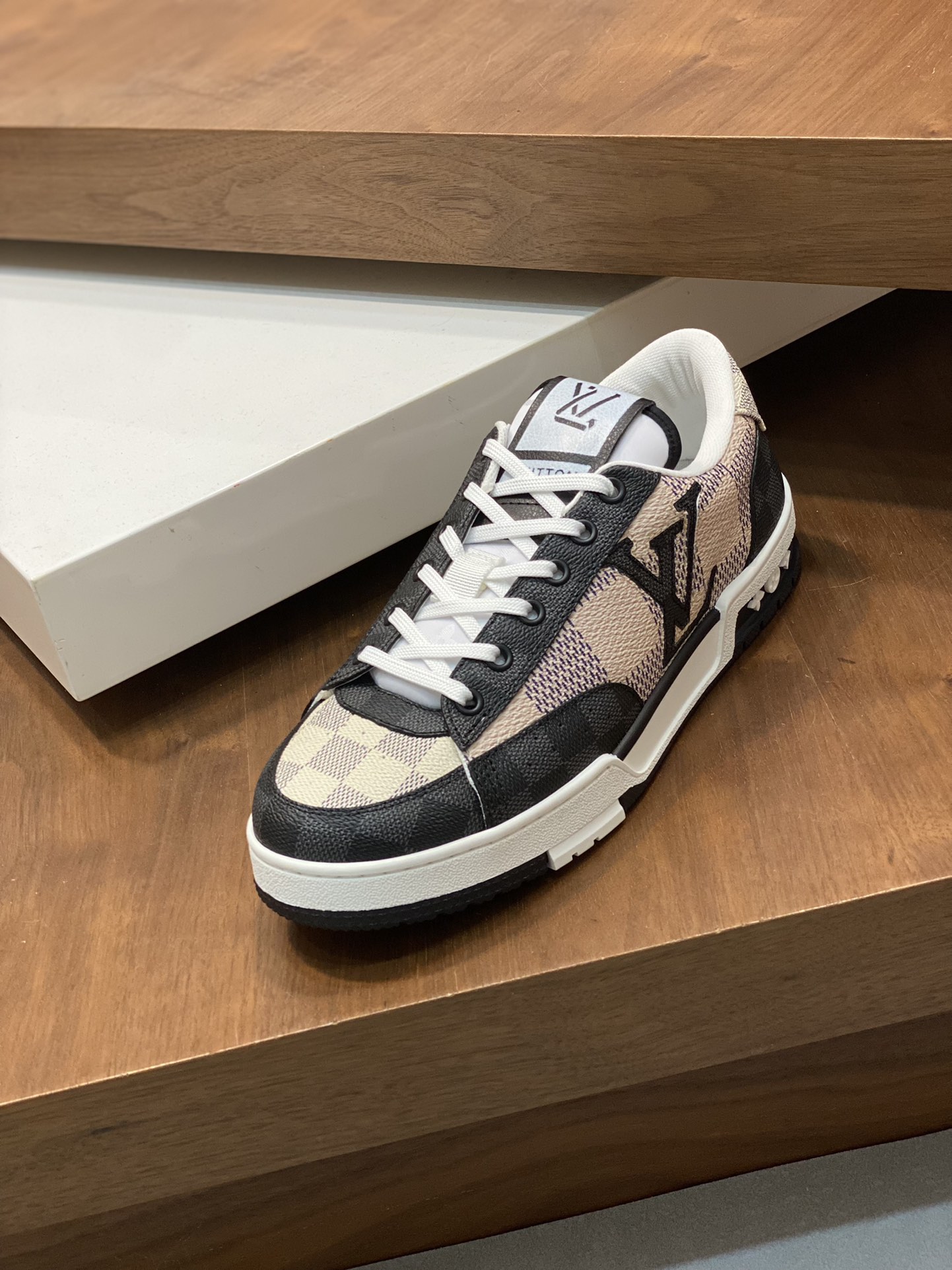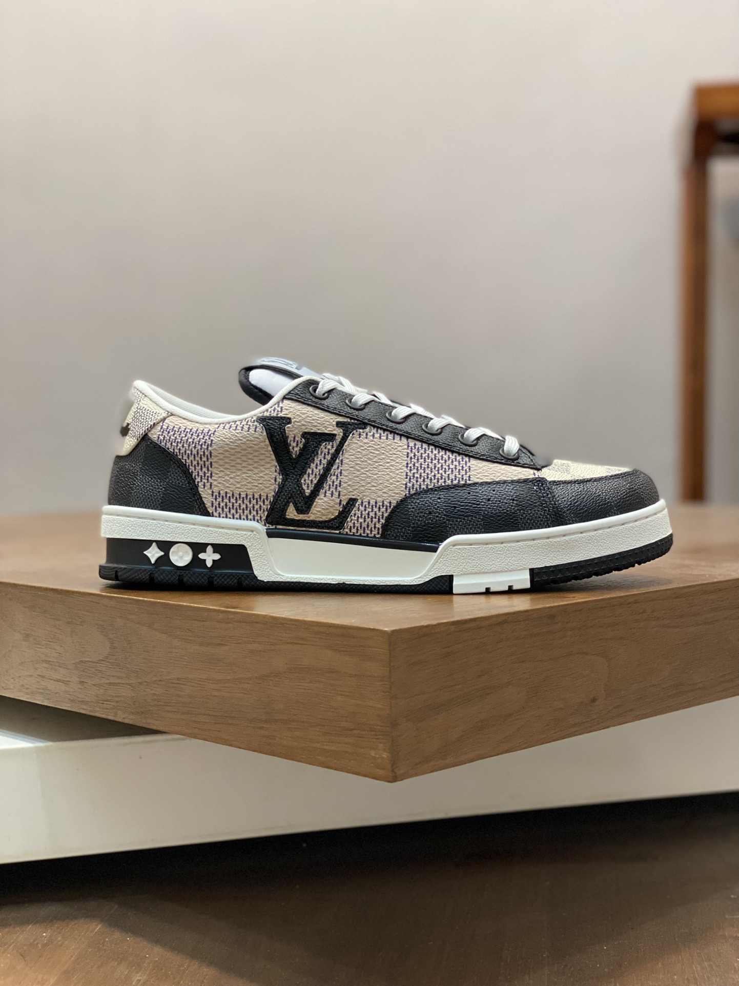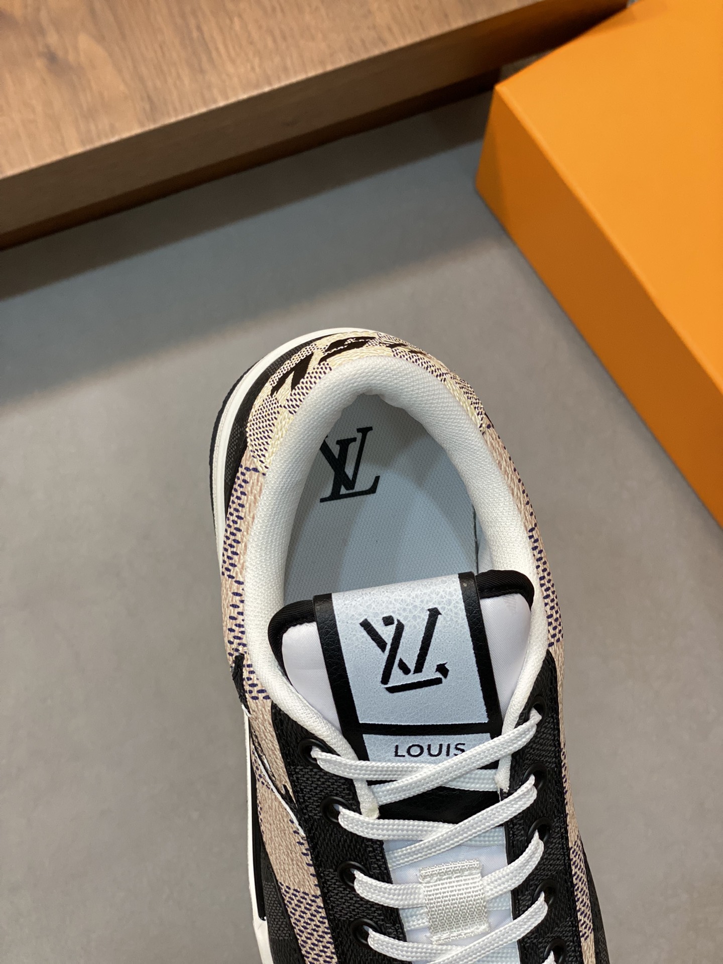 这款鞋子是AAAAA 1:1 质量 (非常棒). 使用了和原版一模一样的材料. 商标部分也保持了和路易威登/Louis Vuitton一样. 图片拍摄是实物鞋子拍摄, 您所收到的实物保证和我们图片一模一样.