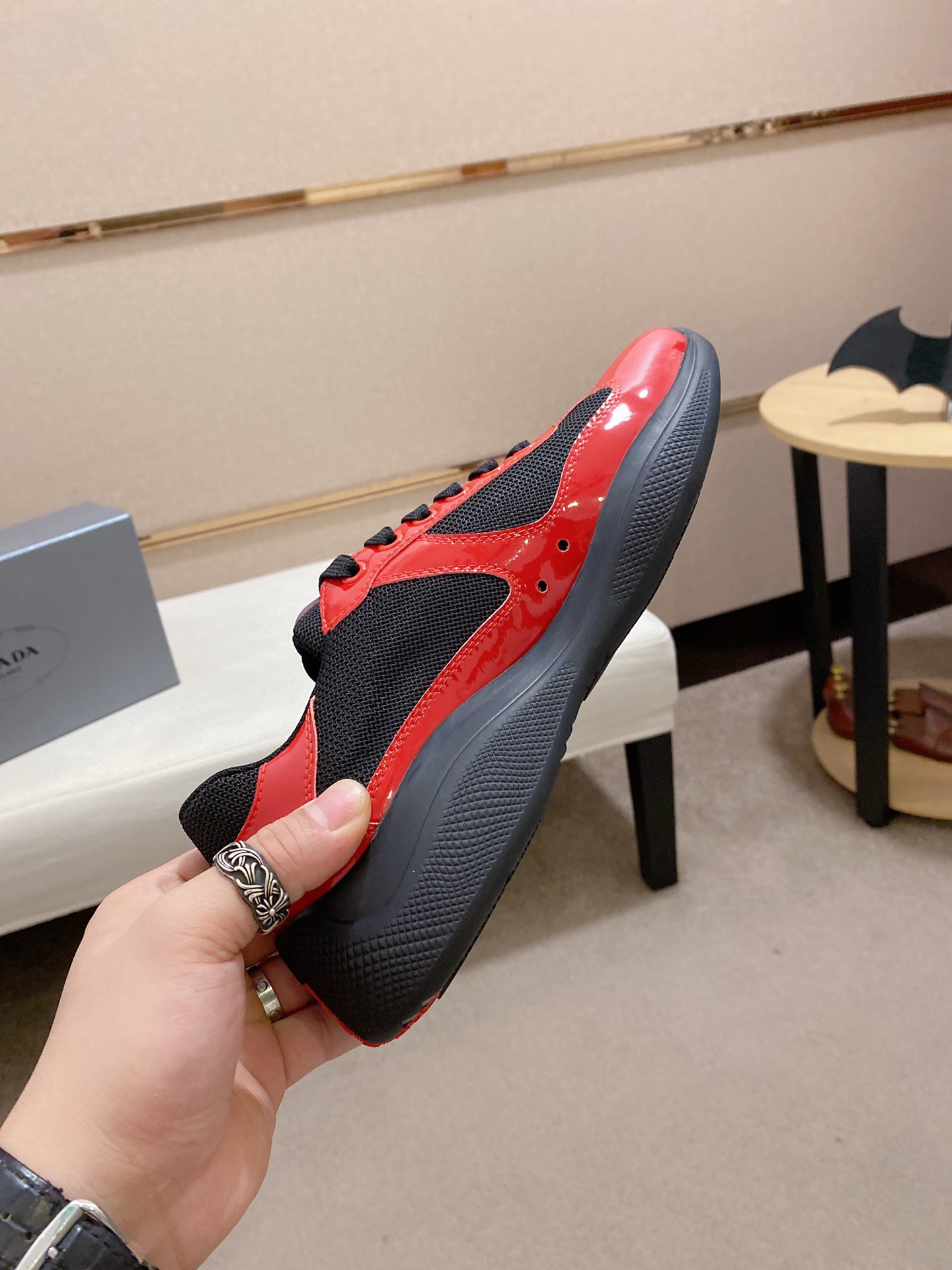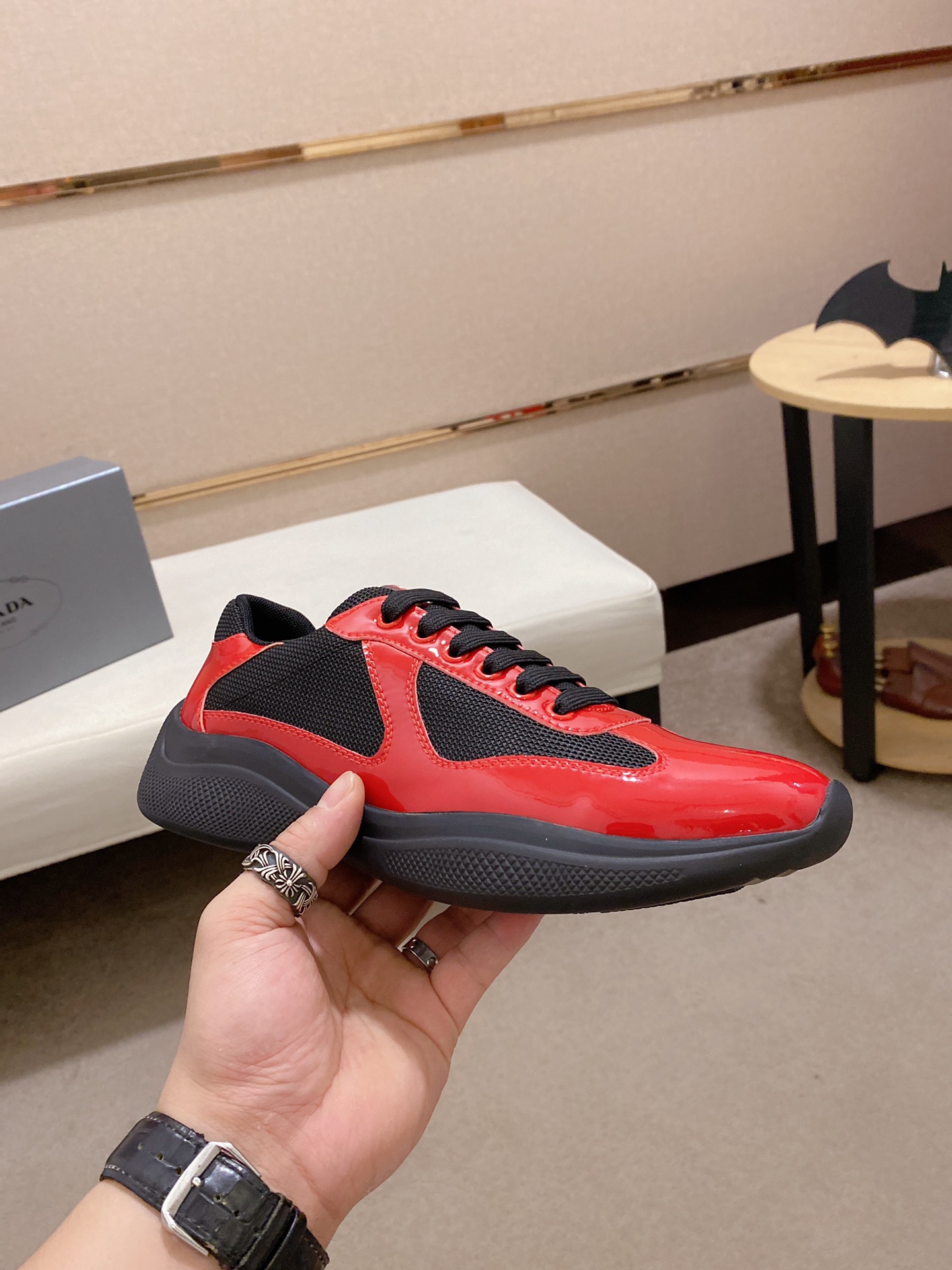 这款鞋子是AAAAA 1:1 质量 (非常棒). 使用了和原版一模一样的材料. 商标部分也保持了和普拉达/Prada一样. 图片拍摄是实物鞋子拍摄, 您所收到的实物保证和我们图片一模一样.