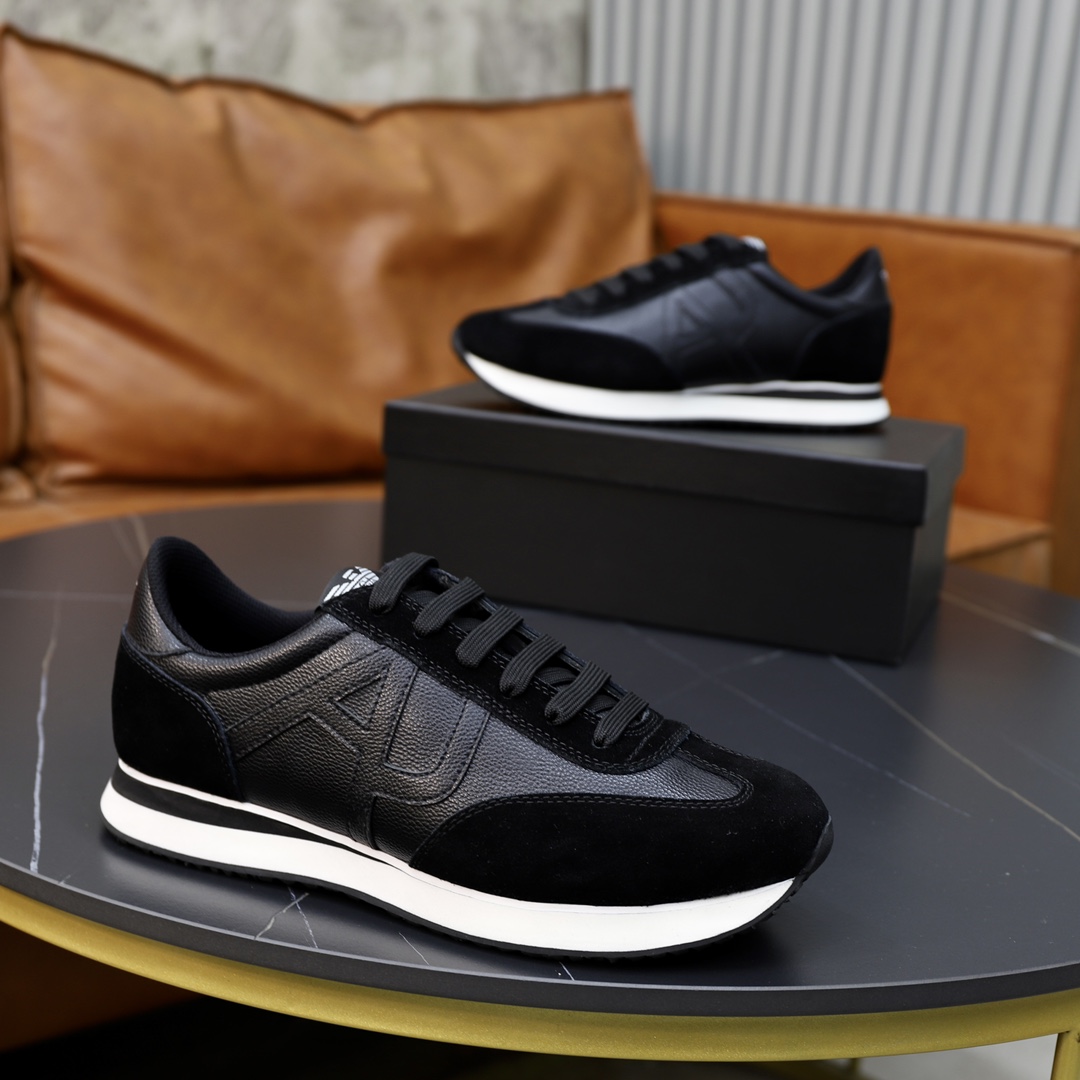 这款鞋子是AAAAA 1:1 质量 (非常棒). 使用了和原版一模一样的材料. 商标部分也保持了和阿玛尼/Armani一样. 图片拍摄是实物鞋子拍摄, 您所收到的实物保证和我们图片一模一样.