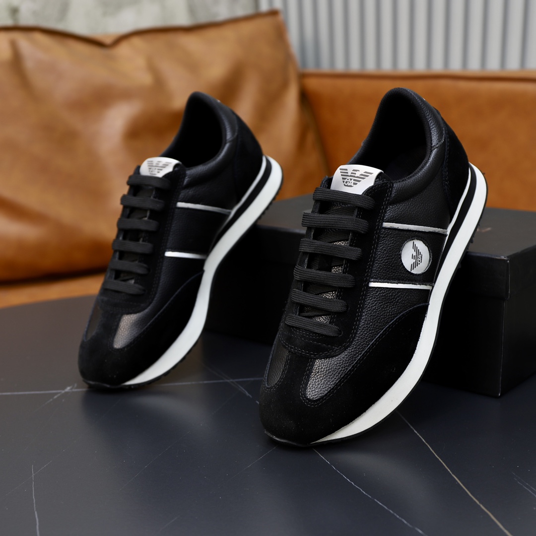 这款鞋子是AAAAA 1:1 质量 (非常棒). 使用了和原版一模一样的材料. 商标部分也保持了和阿玛尼/Armani一样. 图片拍摄是实物鞋子拍摄, 您所收到的实物保证和我们图片一模一样.