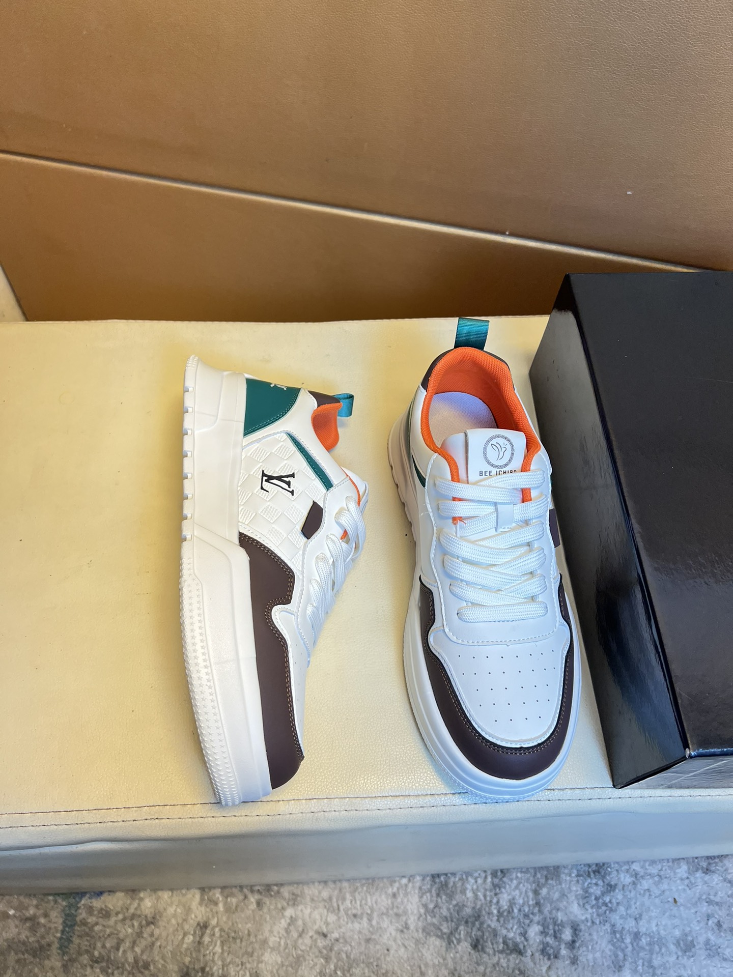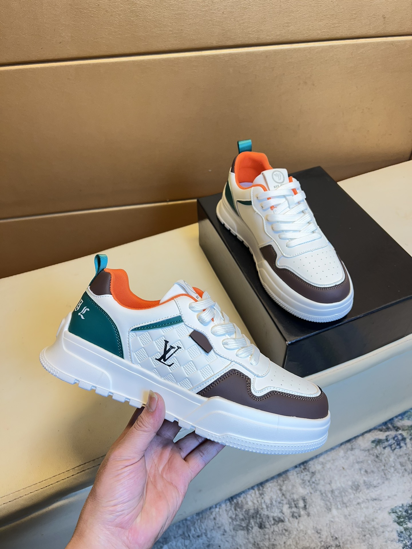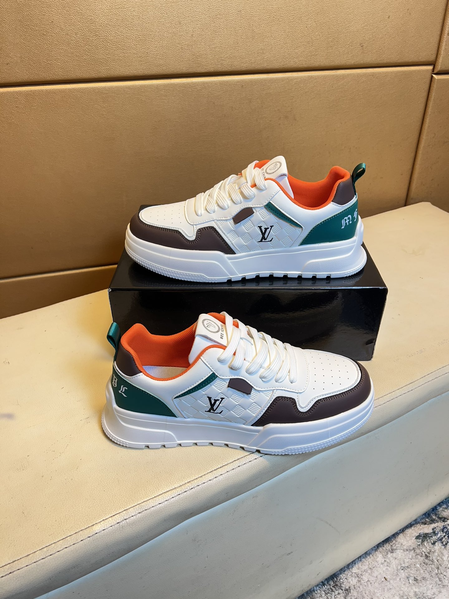 这款鞋子是AAAAA 1:1 质量 (非常棒). 使用了和原版一模一样的材料. 商标部分也保持了和路易威登/Louis Vuitton一样. 图片拍摄是实物鞋子拍摄, 您所收到的实物保证和我们图片一模一样.