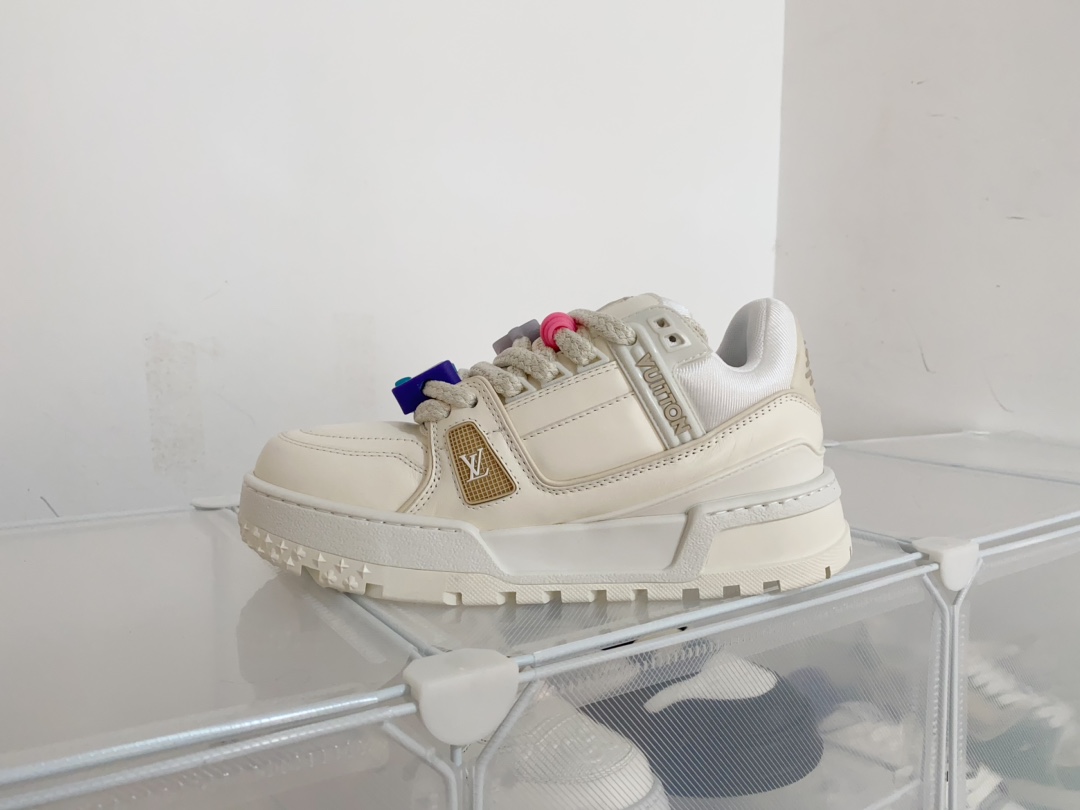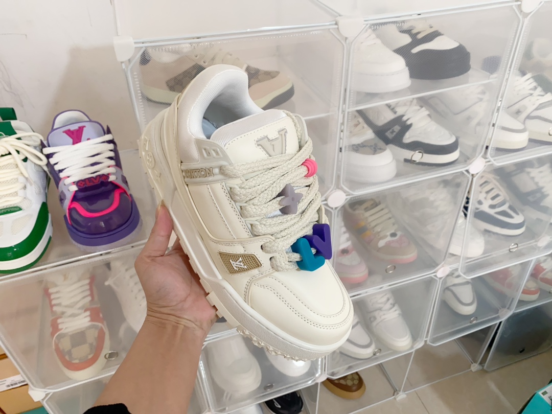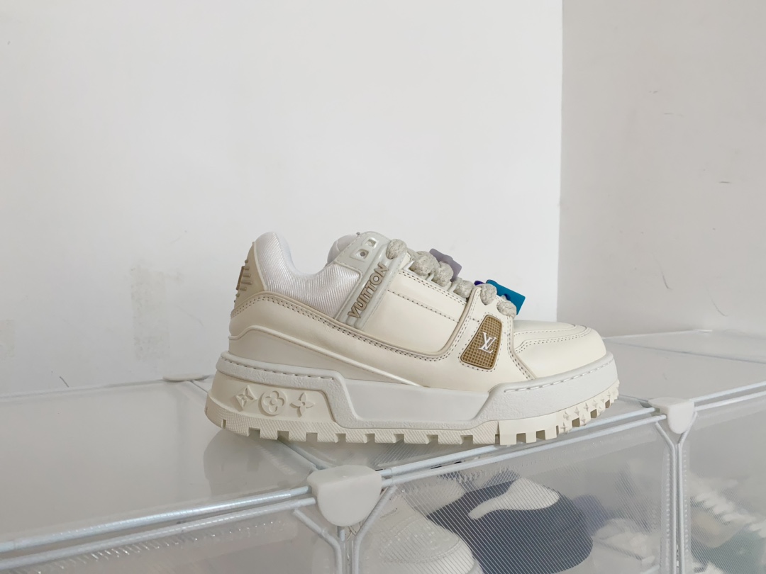 这款鞋子是AAAAA 1:1 质量 (非常棒). 使用了和原版一模一样的材料. 商标部分也保持了和路易威登/Louis Vuitton一样. 图片拍摄是实物鞋子拍摄, 您所收到的实物保证和我们图片一模一样.
