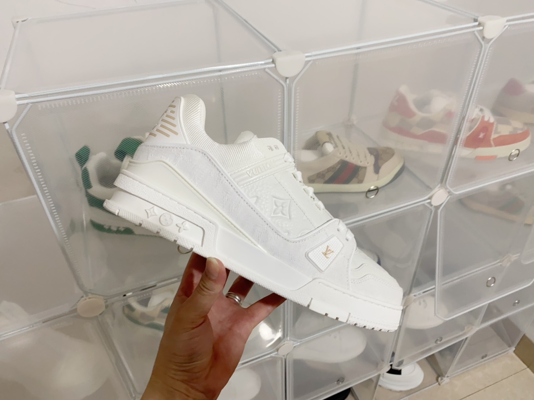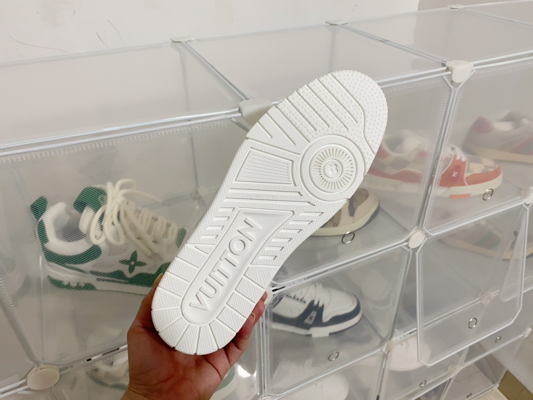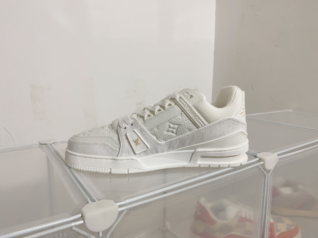 这款鞋子是AAAAA 1:1 质量 (非常棒). 使用了和原版一模一样的材料. 商标部分也保持了和路易威登/Louis Vuitton一样. 图片拍摄是实物鞋子拍摄, 您所收到的实物保证和我们图片一模一样.