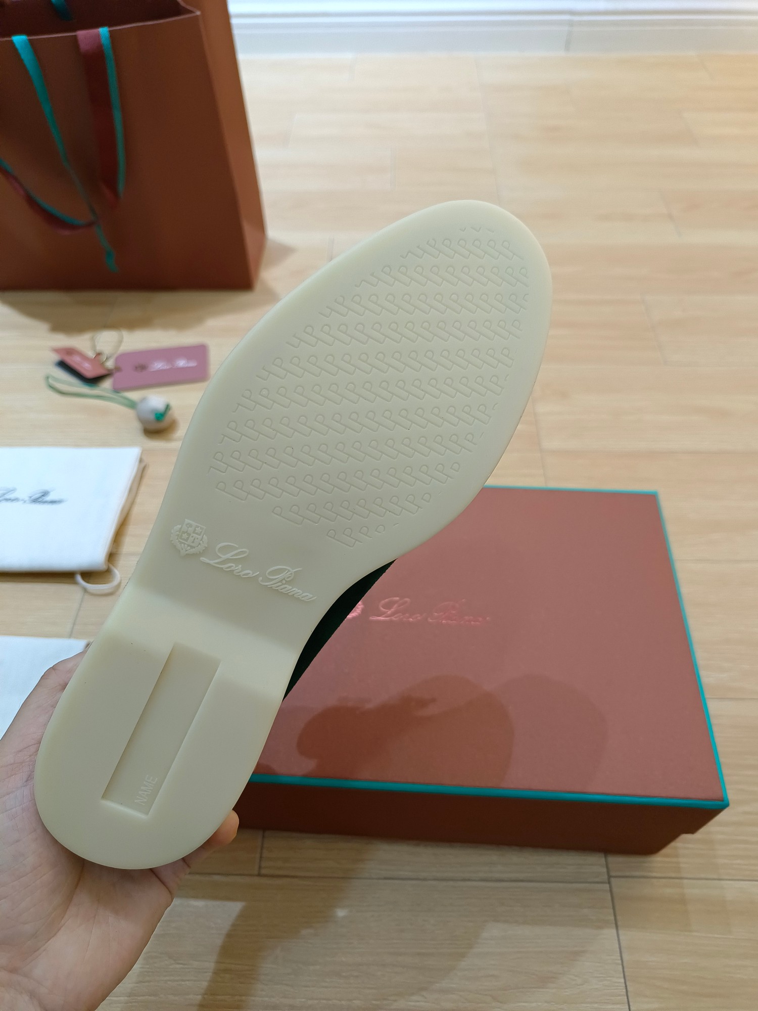 这款鞋子是AAAAA 1:1 质量 (非常棒). 使用了和原版一模一样的材料. 商标部分也保持了和洛罗皮亚纳/Loro Piana一样. 图片拍摄是实物鞋子拍摄, 您所收到的实物保证和我们图片一模一样.