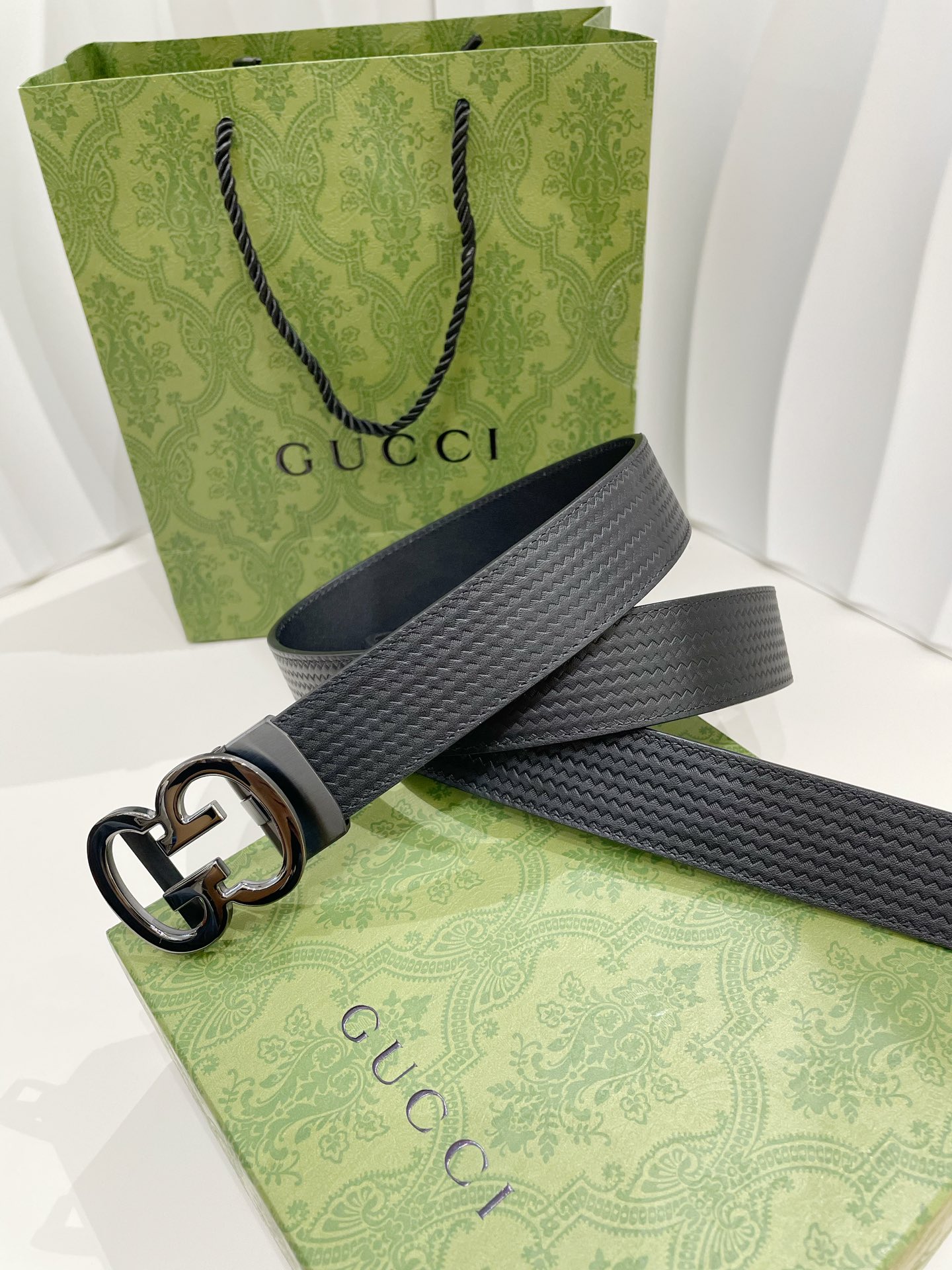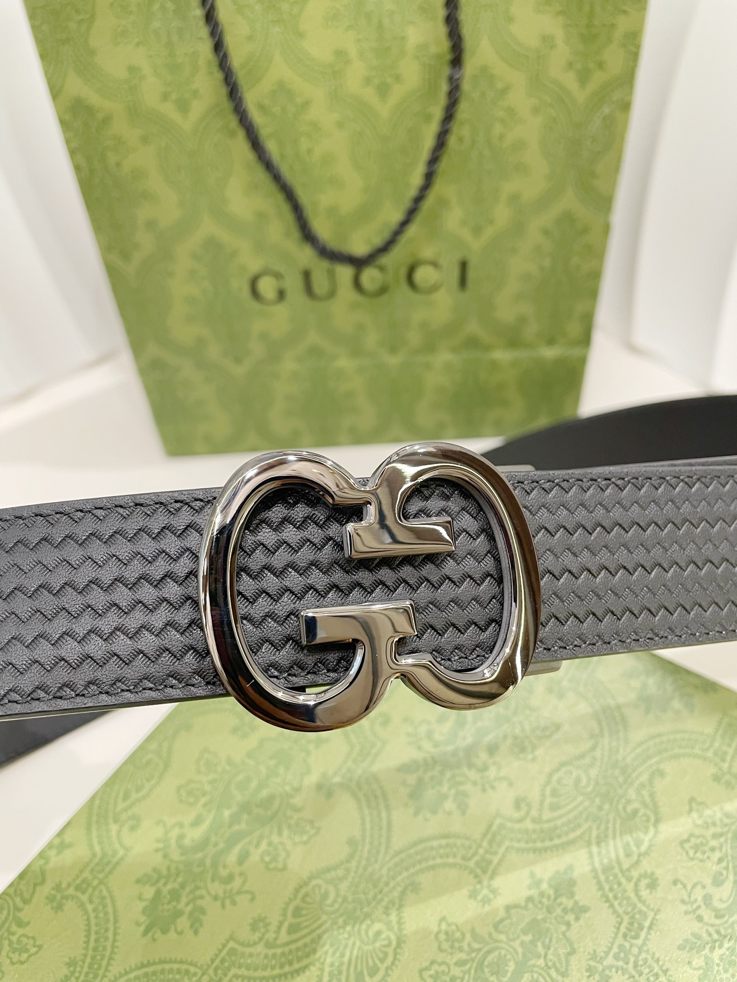 这款皮带是AAAAA 1:1 质量 (非常棒). 使用了和原版一模一样的材料. 商标部分也保持了和古奇/Gucci一样. 图片拍摄是实物皮带拍摄, 您所收到的实物保证和我们图片一模一样.