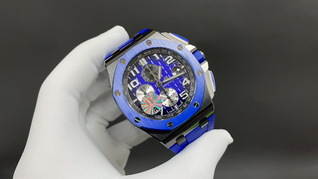 这款手表是AAAAA 1:1 质量 (非常棒). 使用了和原版一模一样的材料. 商标部分也保持了和爱彼/Audemars Piguet一样. 图片拍摄是实物手表拍摄, 您所收到的实物保证和我们图片一模一样.