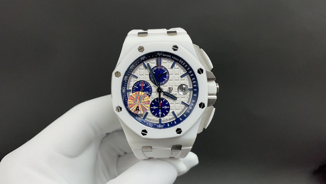 这款手表是AAAAA 1:1 质量 (非常棒). 使用了和原版一模一样的材料. 商标部分也保持了和爱彼/Audemars Piguet一样. 图片拍摄是实物手表拍摄, 您所收到的实物保证和我们图片一模一样.