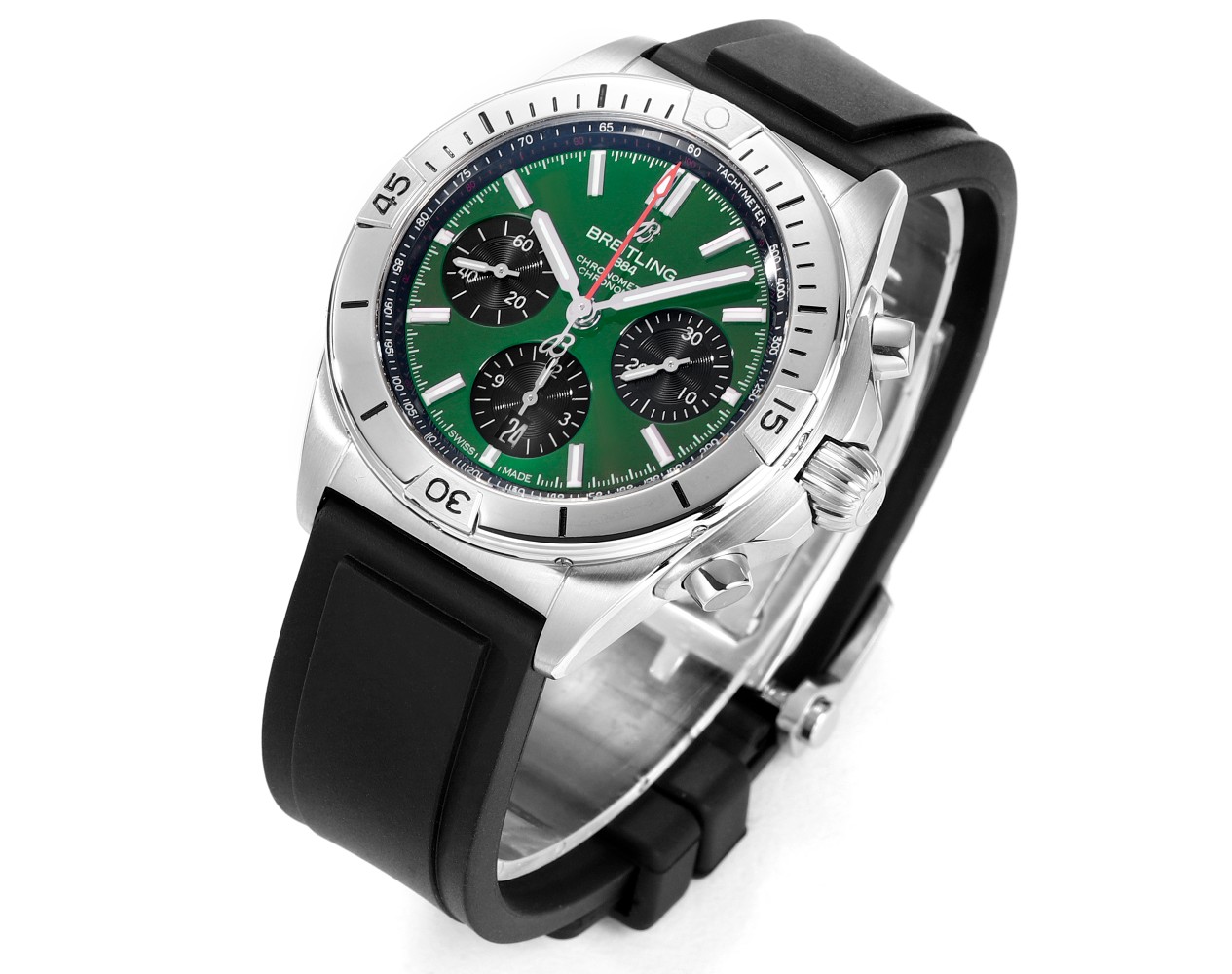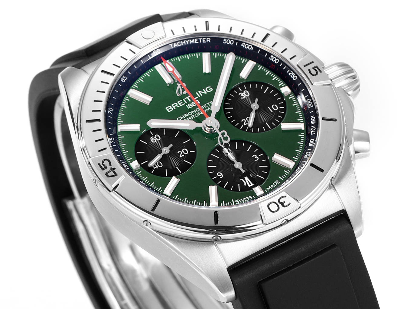 这款手表是AAAAA 1:1 质量 (非常棒). 使用了和原版一模一样的材料. 商标部分也保持了和Breitling一样. 图片拍摄是实物手表拍摄, 您所收到的实物保证和我们图片一模一样.