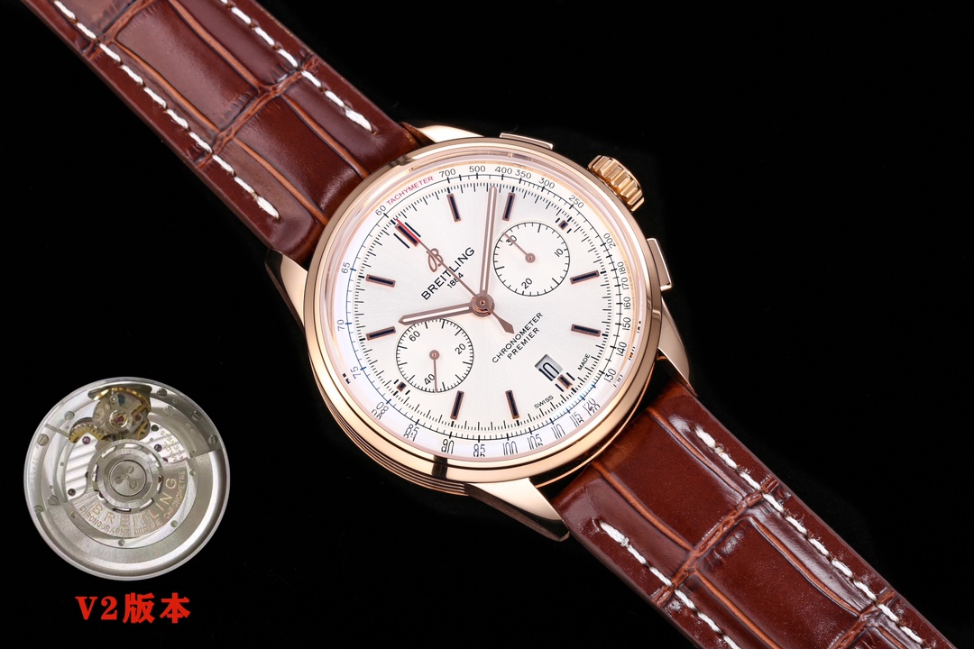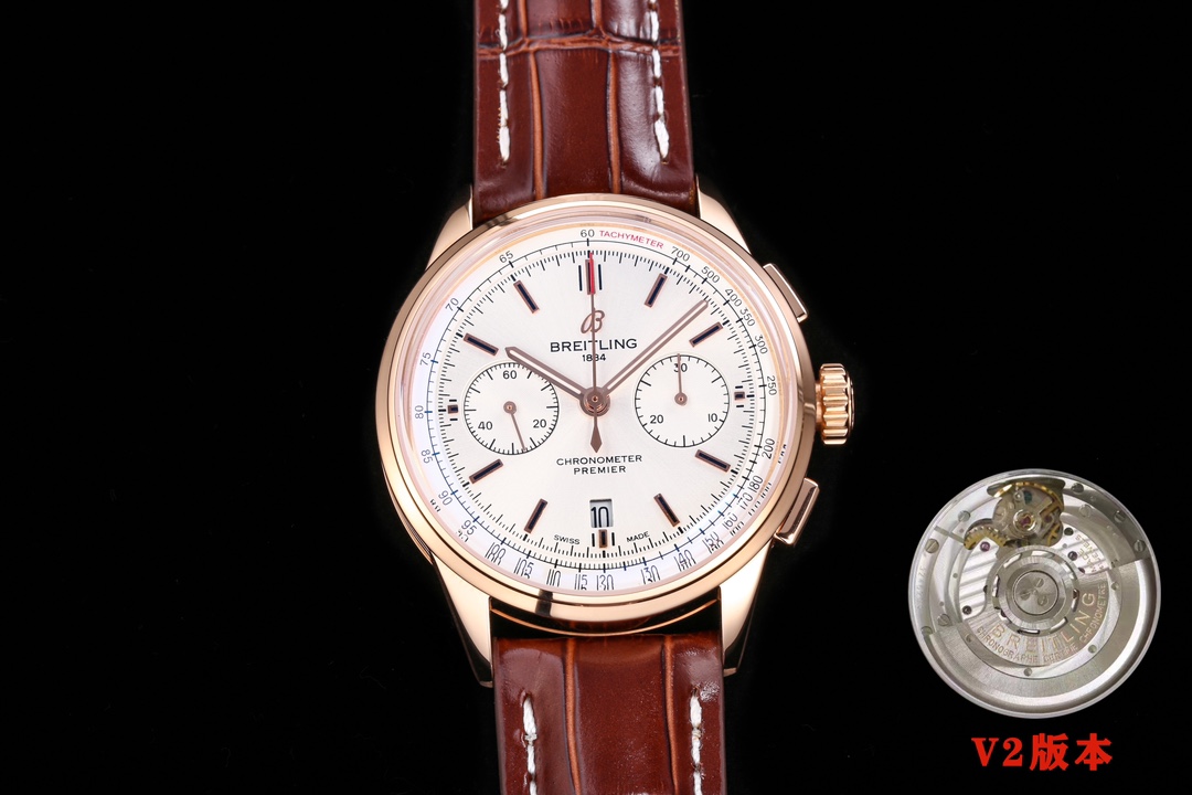 这款手表是AAAAA 1:1 质量 (非常棒). 使用了和原版一模一样的材料. 商标部分也保持了和Breitling一样. 图片拍摄是实物手表拍摄, 您所收到的实物保证和我们图片一模一样.