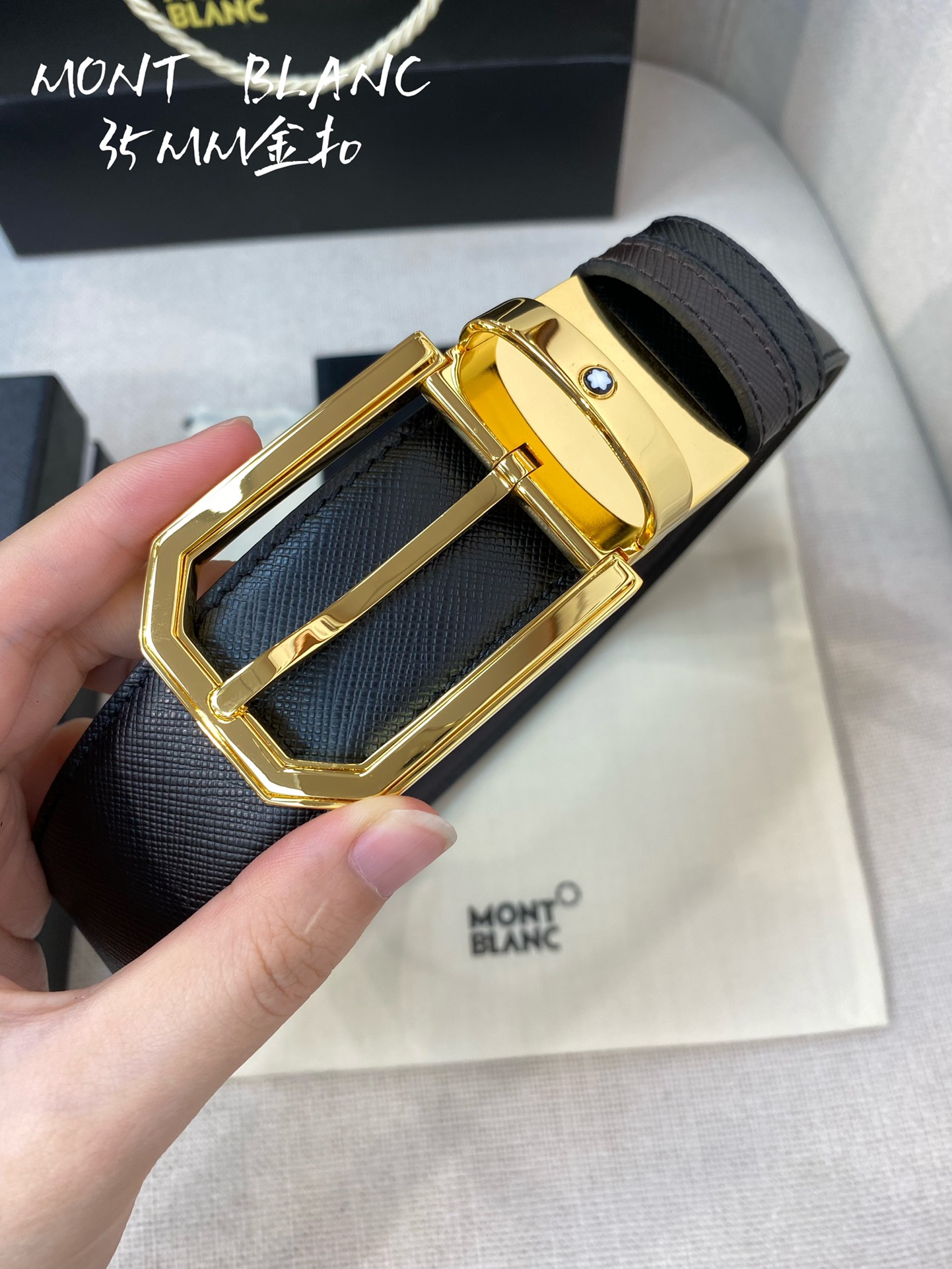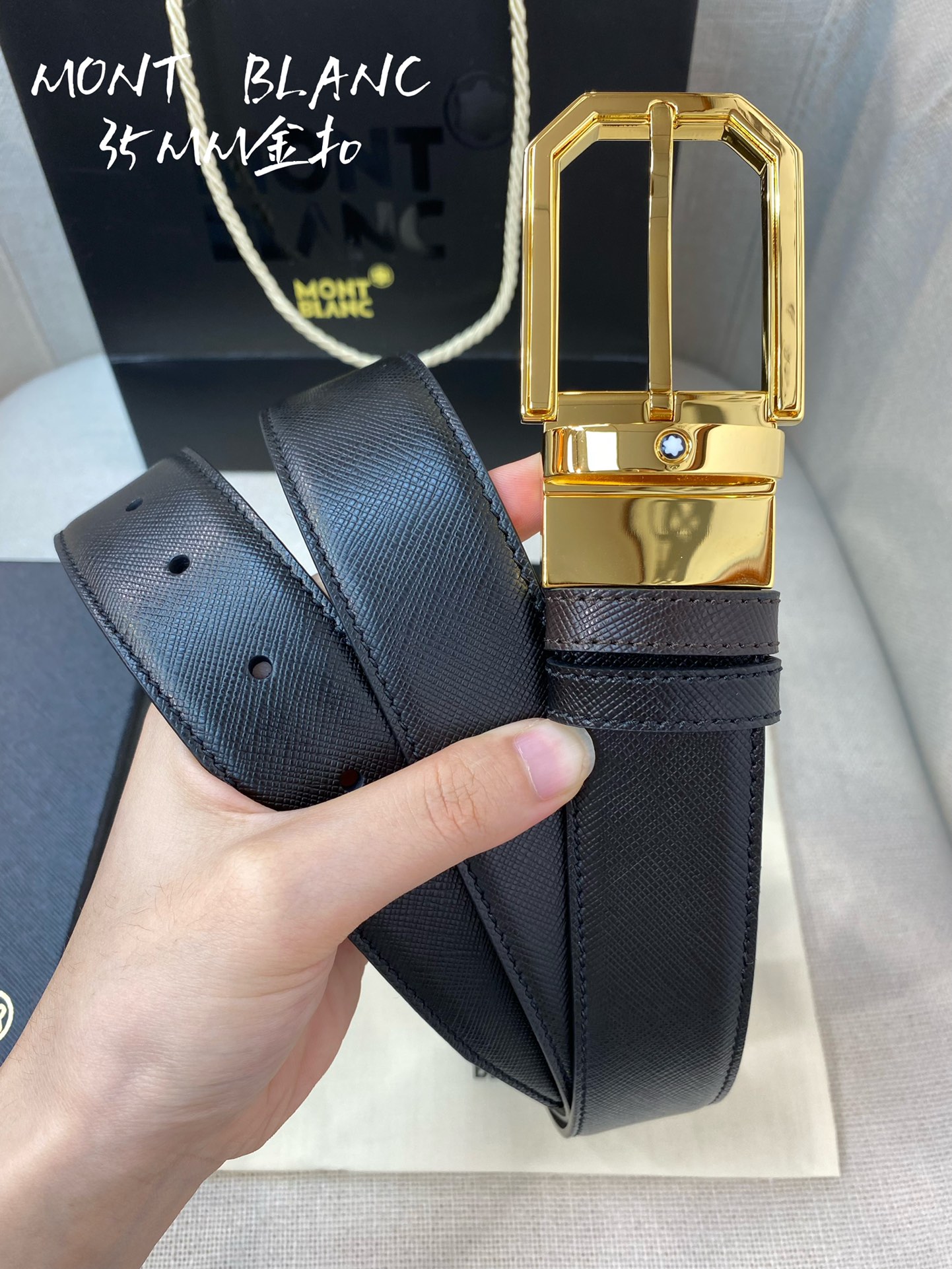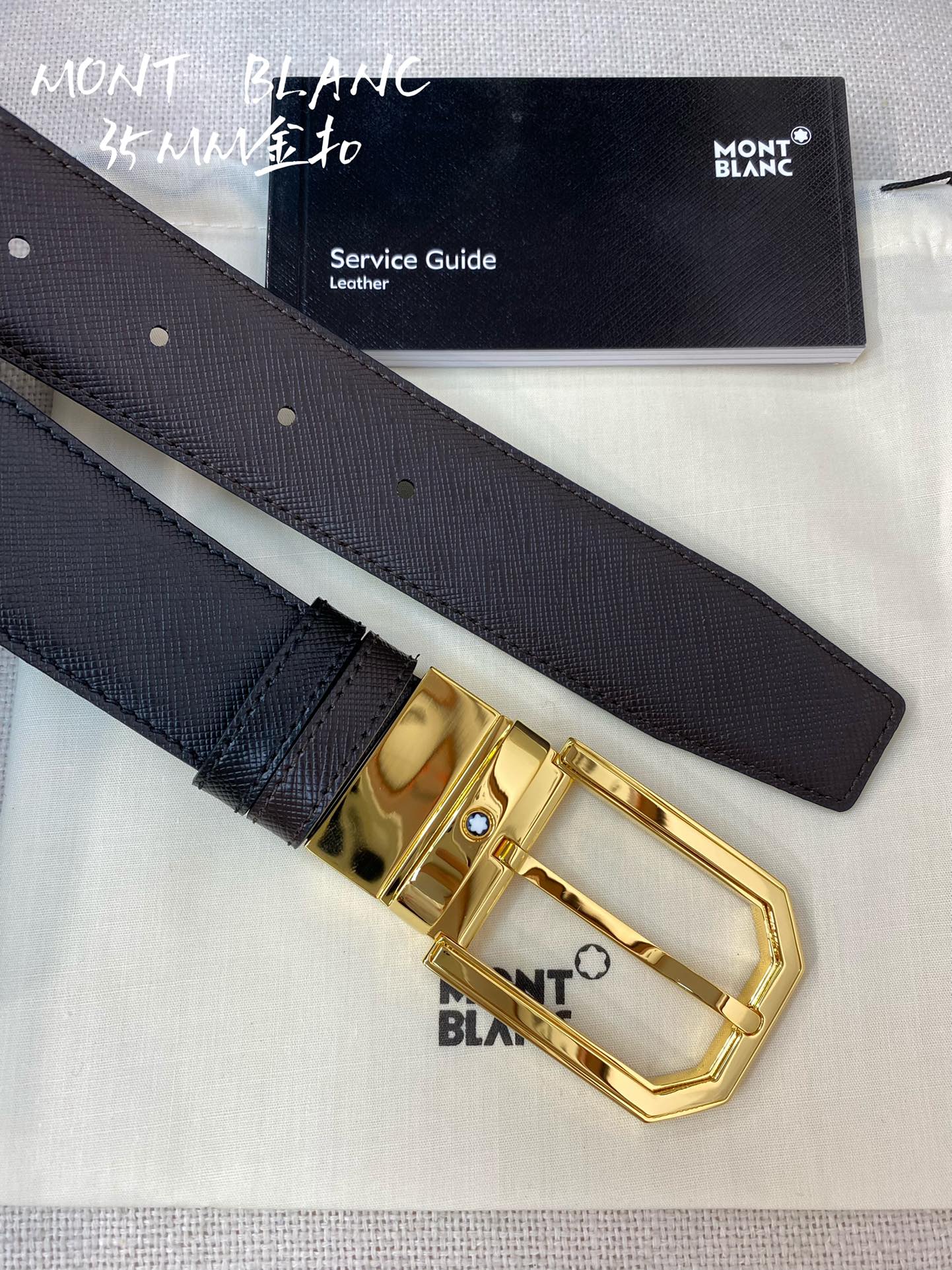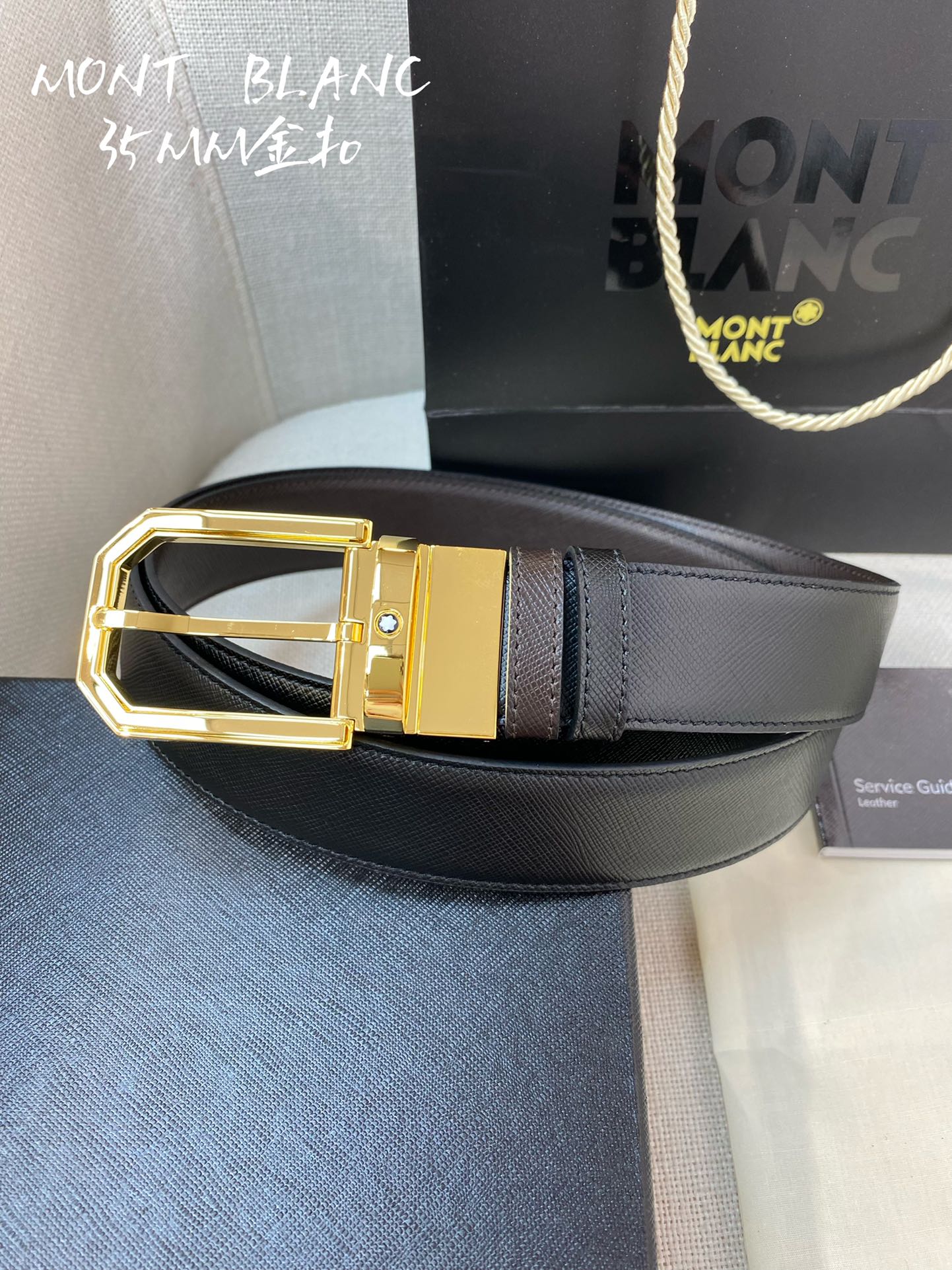 这款皮带是AAAAA 1:1 质量 (非常棒). 使用了和原版一模一样的材料. 商标部分也保持了和万宝龙/Montblanc一样. 图片拍摄是实物皮带拍摄, 您所收到的实物保证和我们图片一模一样.