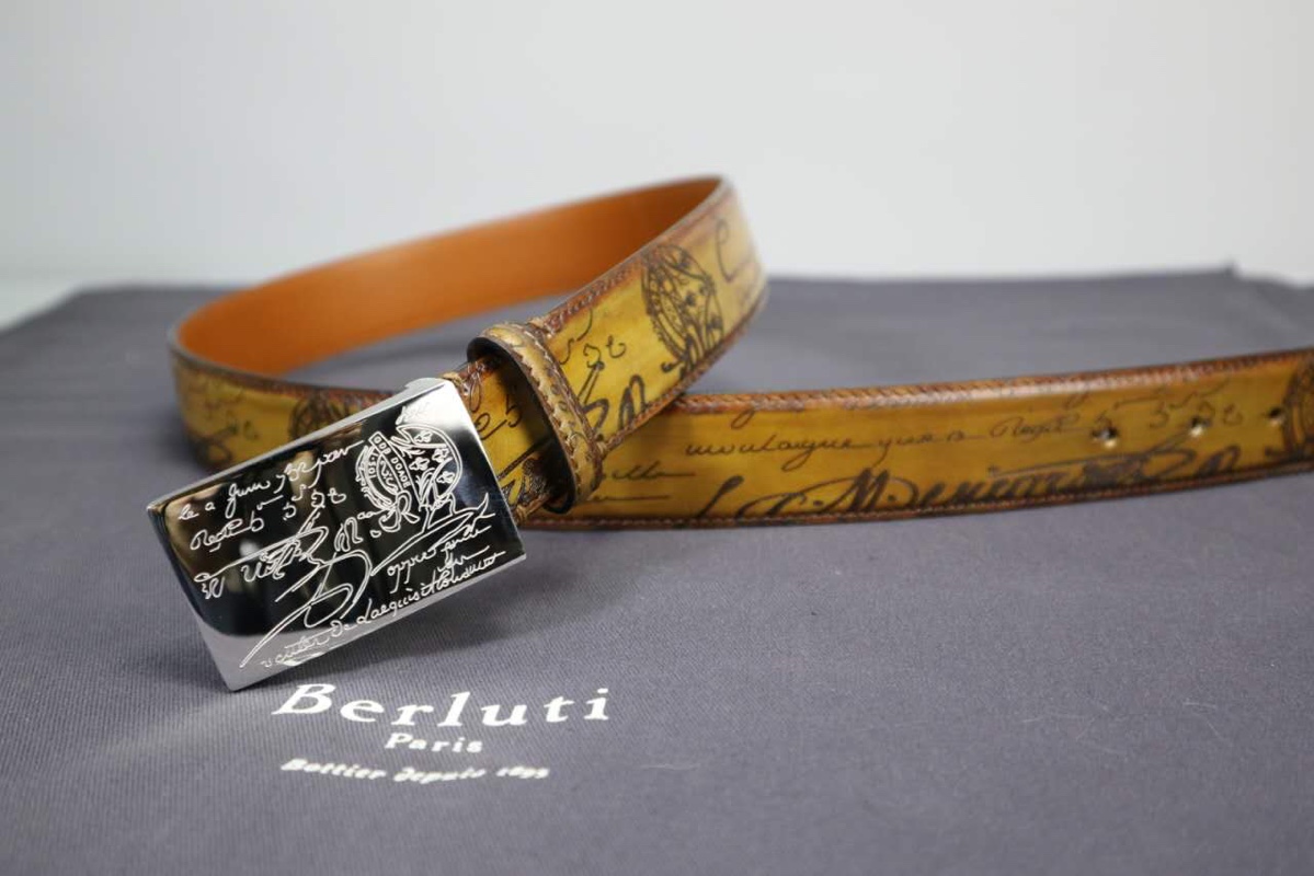这款皮带是AAAAA 1:1 质量 (非常棒). 使用了和原版一模一样的材料. 商标部分也保持了和Berluti一样. 图片拍摄是实物皮带拍摄, 您所收到的实物保证和我们图片一模一样.