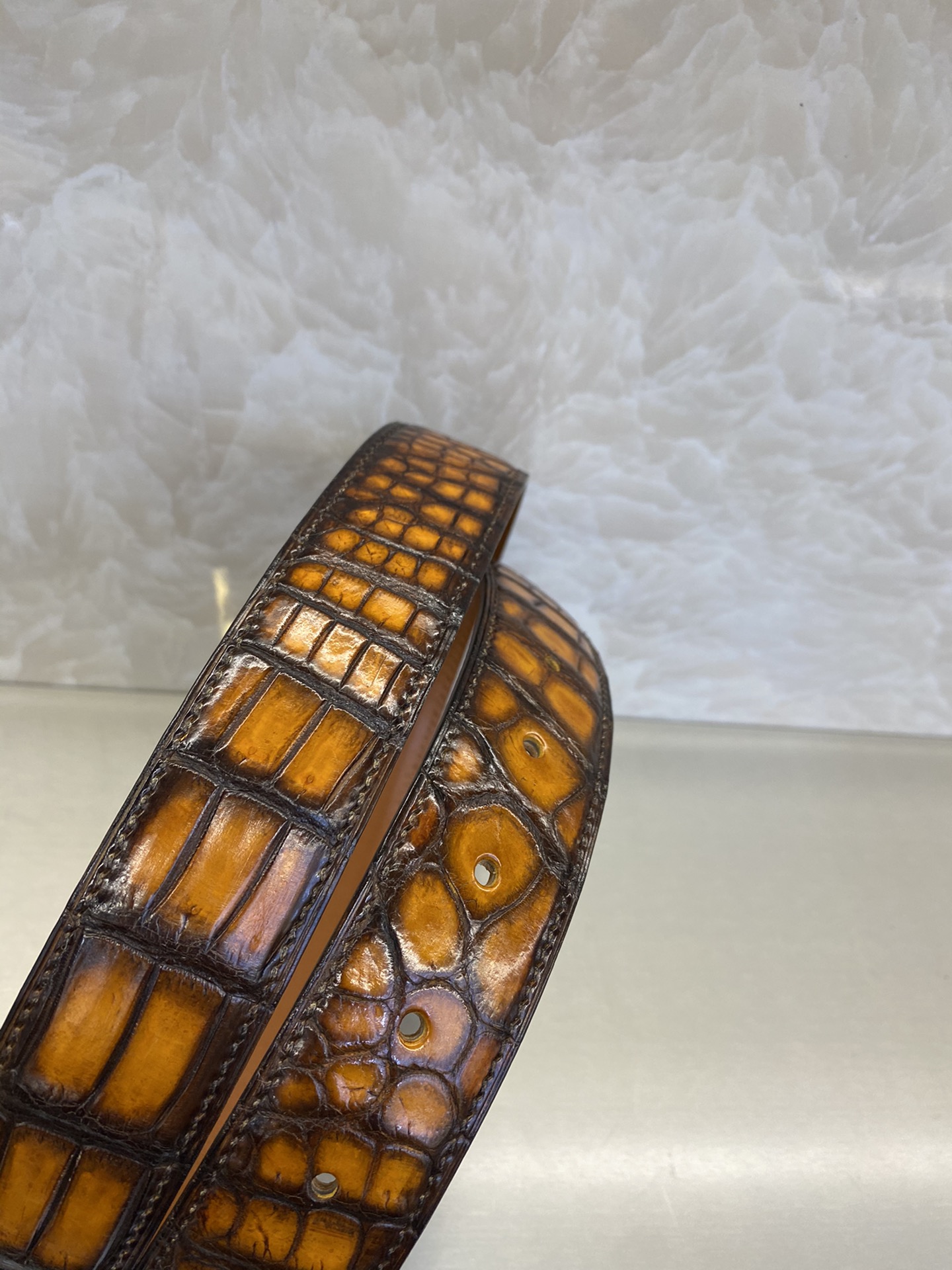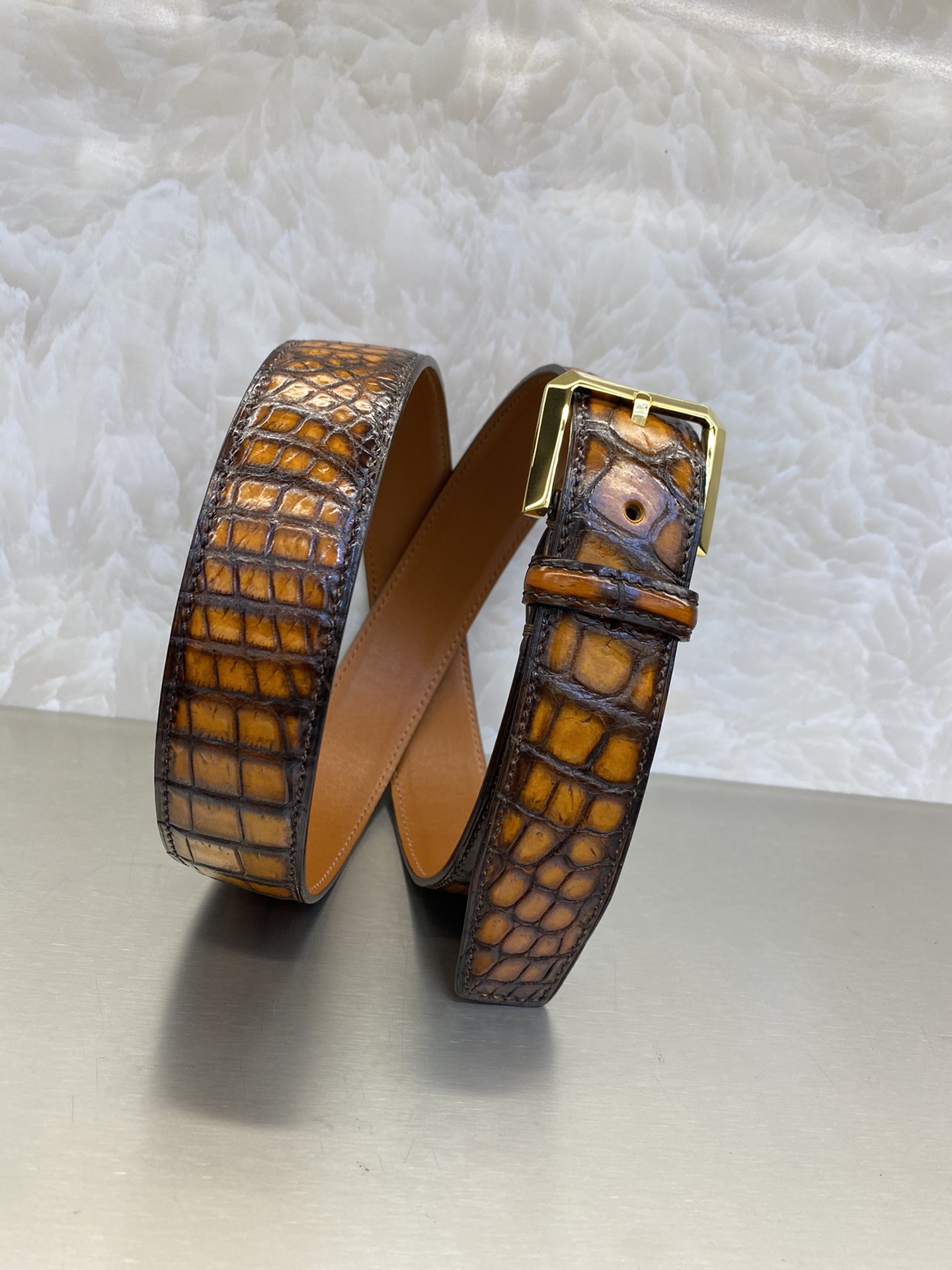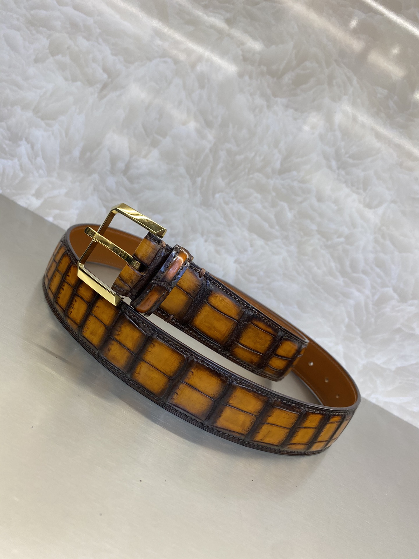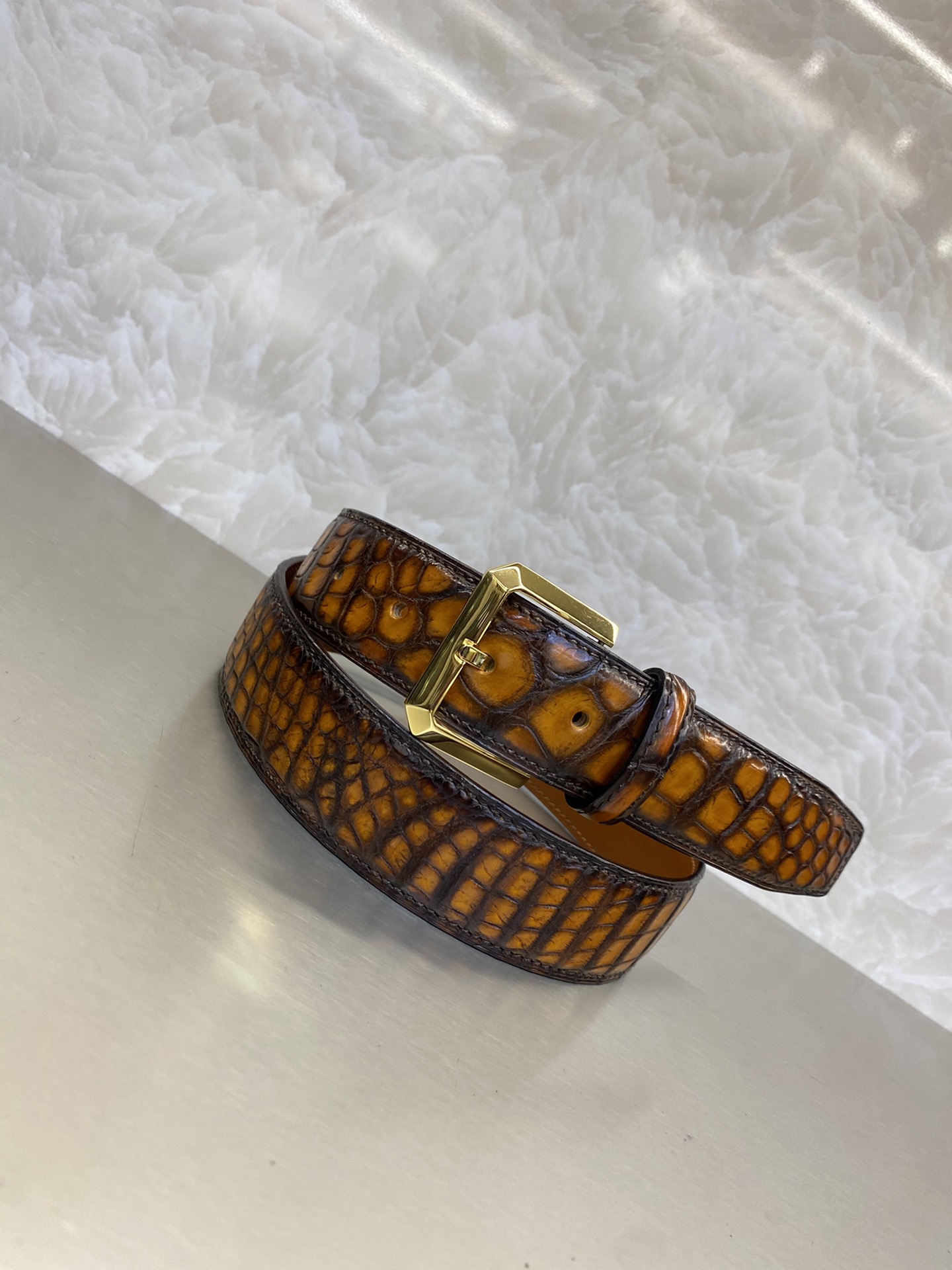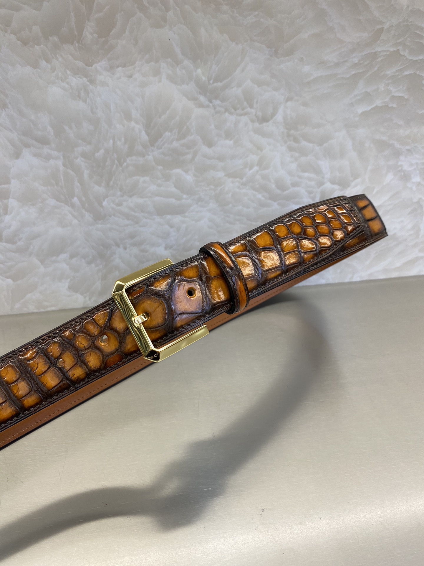 这款皮带是AAAAA 1:1 质量 (非常棒). 使用了和原版一模一样的材料. 商标部分也保持了和Berluti一样. 图片拍摄是实物皮带拍摄, 您所收到的实物保证和我们图片一模一样.