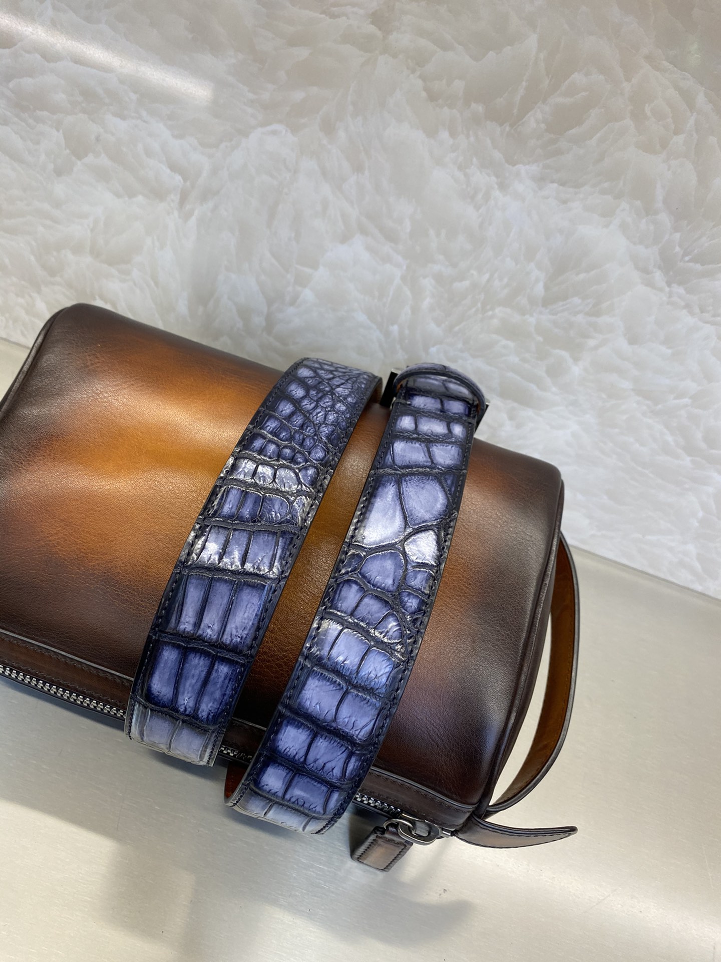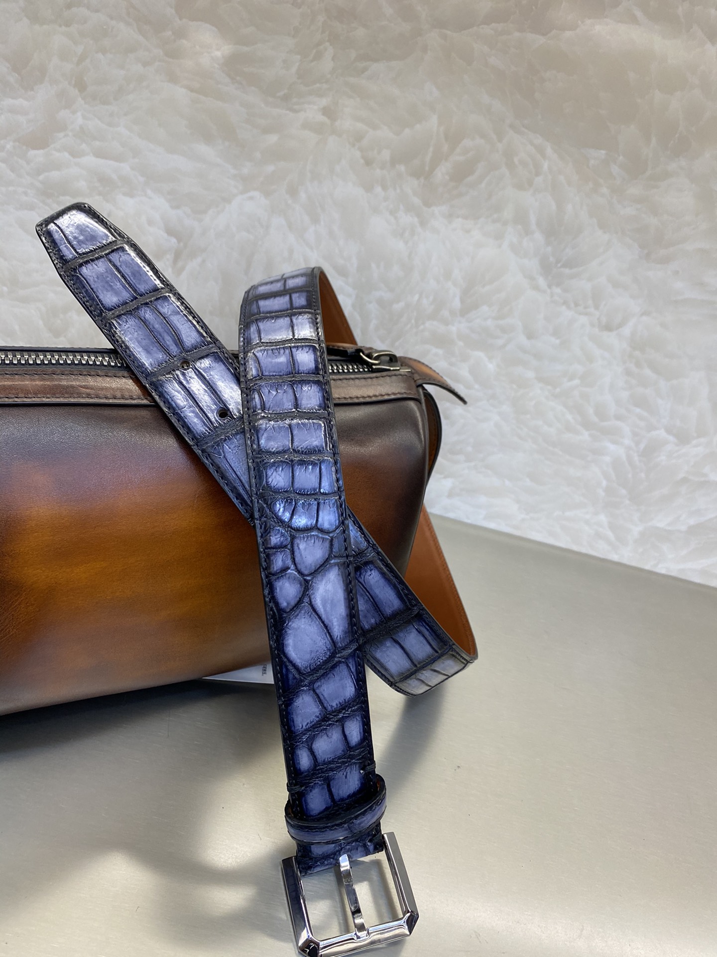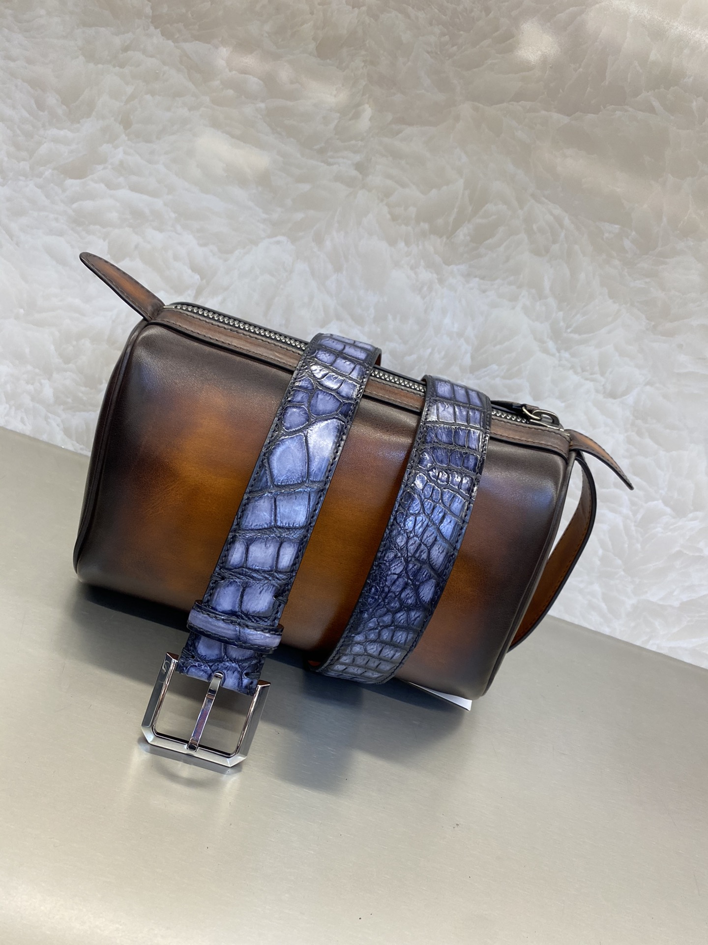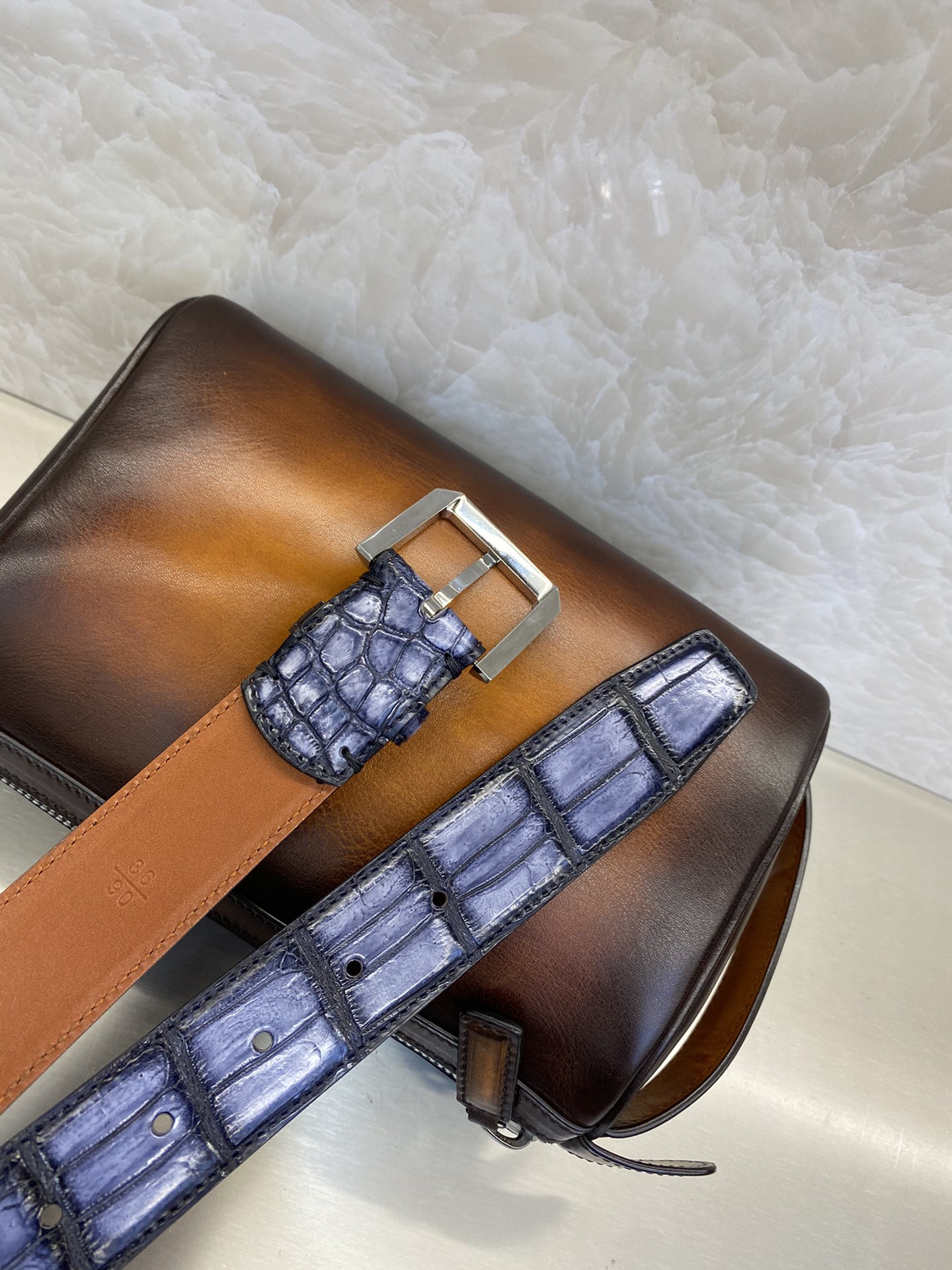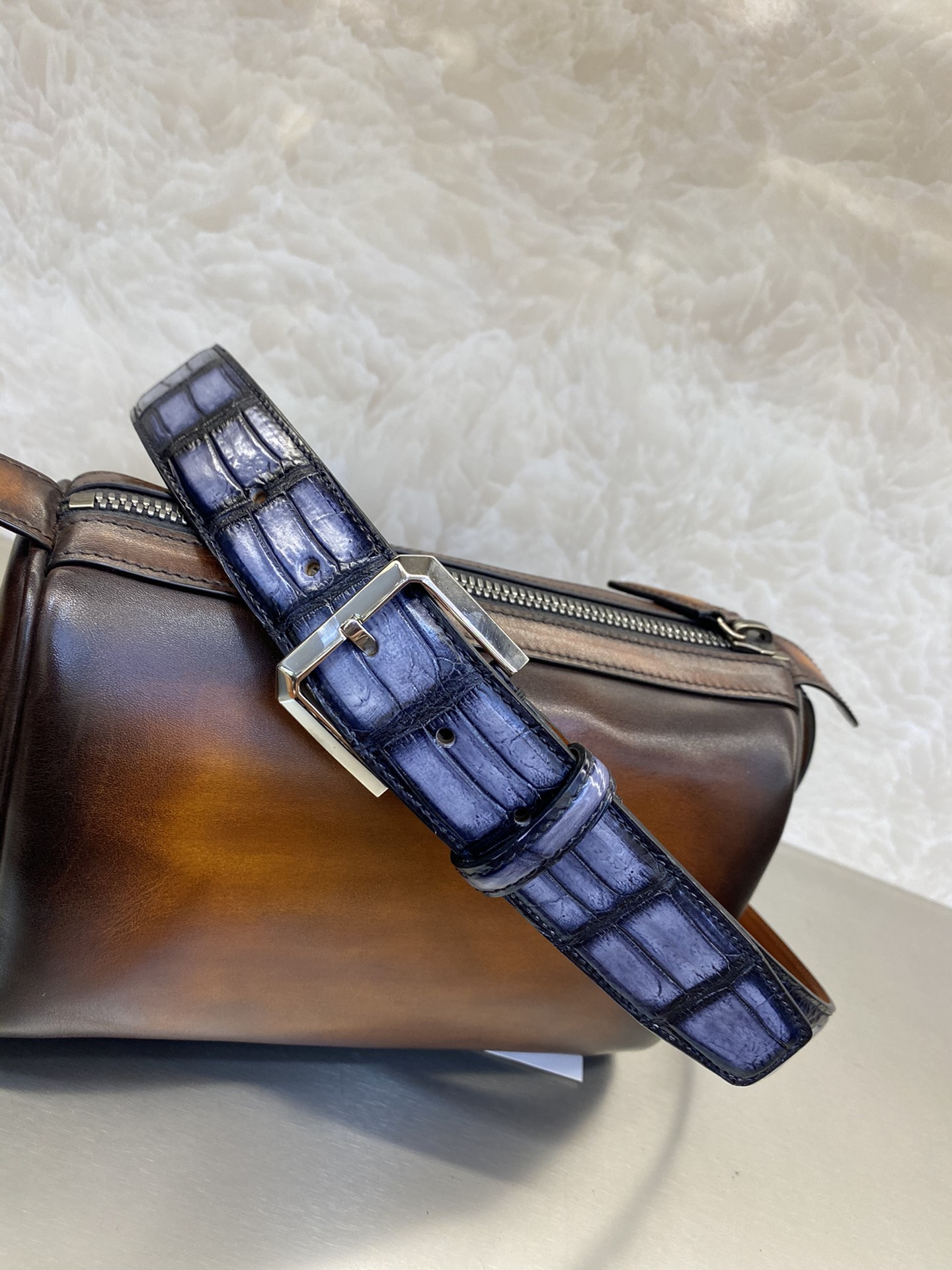 这款皮带是AAAAA 1:1 质量 (非常棒). 使用了和原版一模一样的材料. 商标部分也保持了和Berluti一样. 图片拍摄是实物皮带拍摄, 您所收到的实物保证和我们图片一模一样.