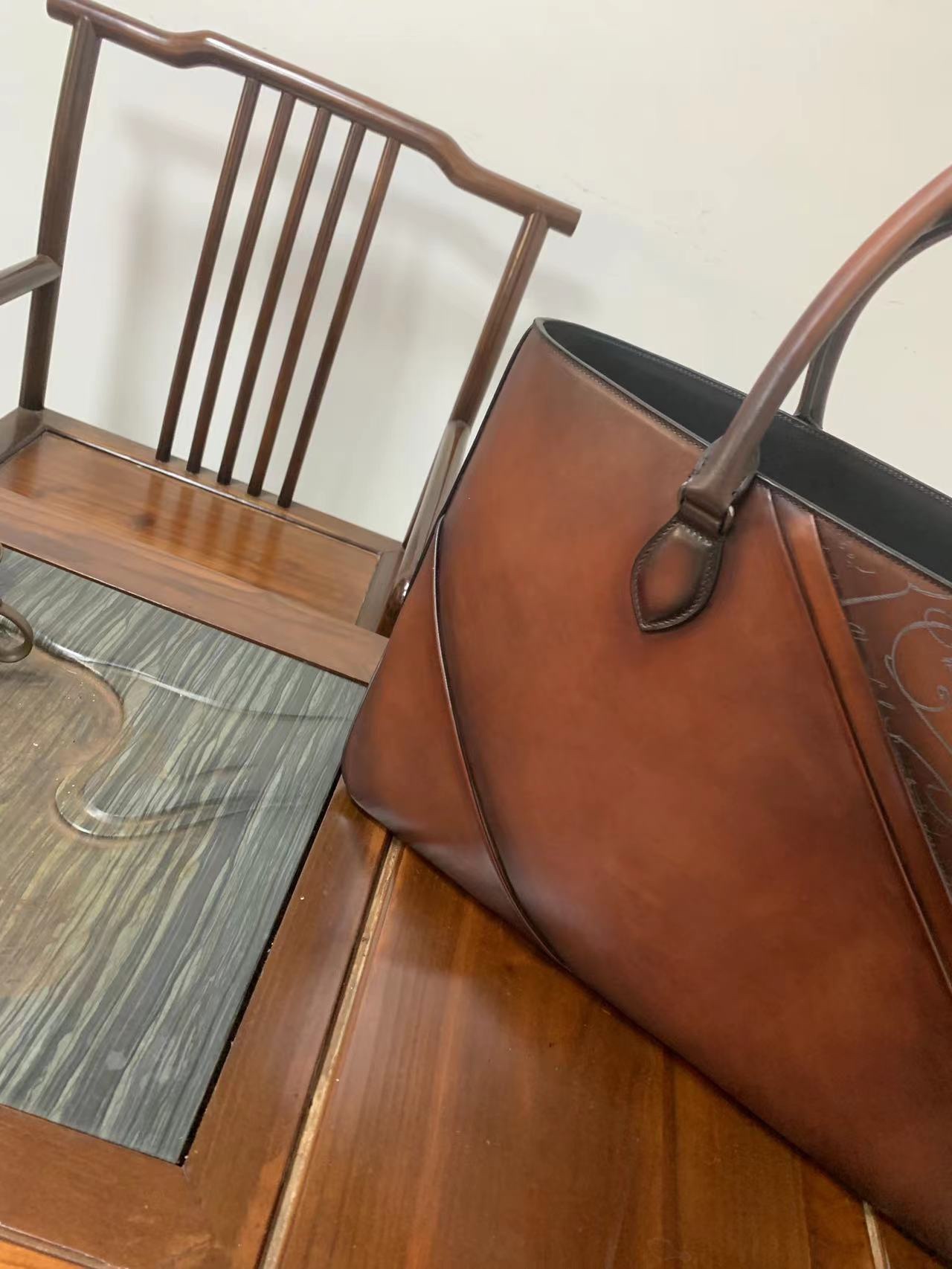 这款包包是AAAAA 1:1 质量 (非常棒). 使用了和原版一模一样的材料. 商标部分也保持了和Berluti一样. 图片拍摄是实物包包拍摄, 您所收到的实物保证和我们图片一模一样.