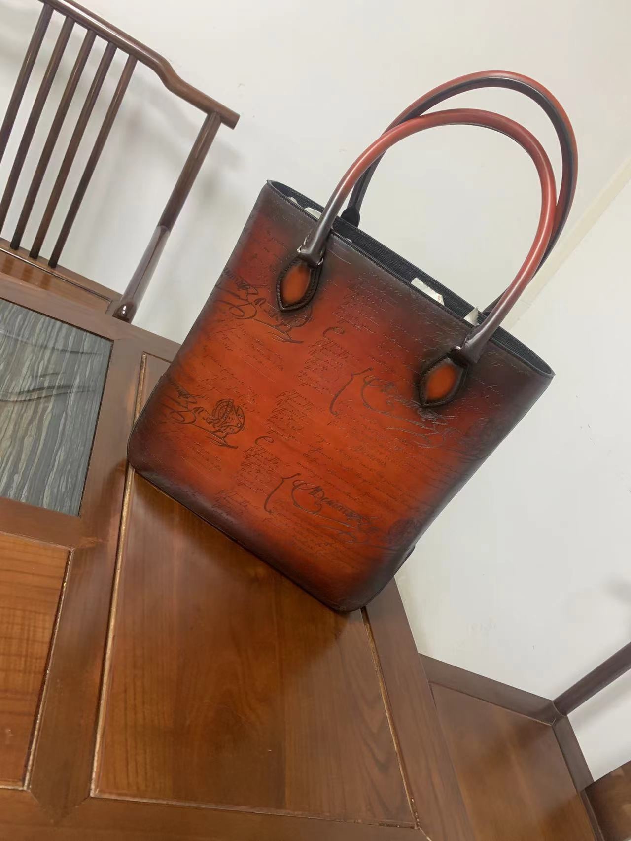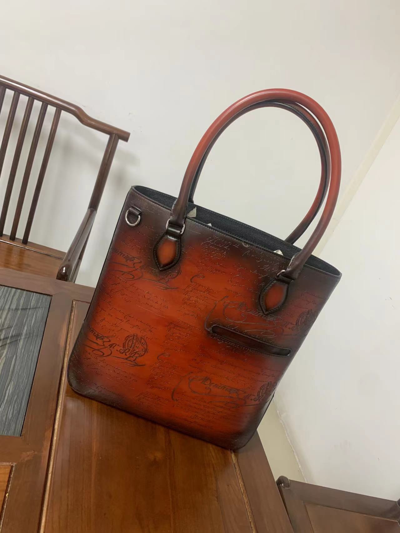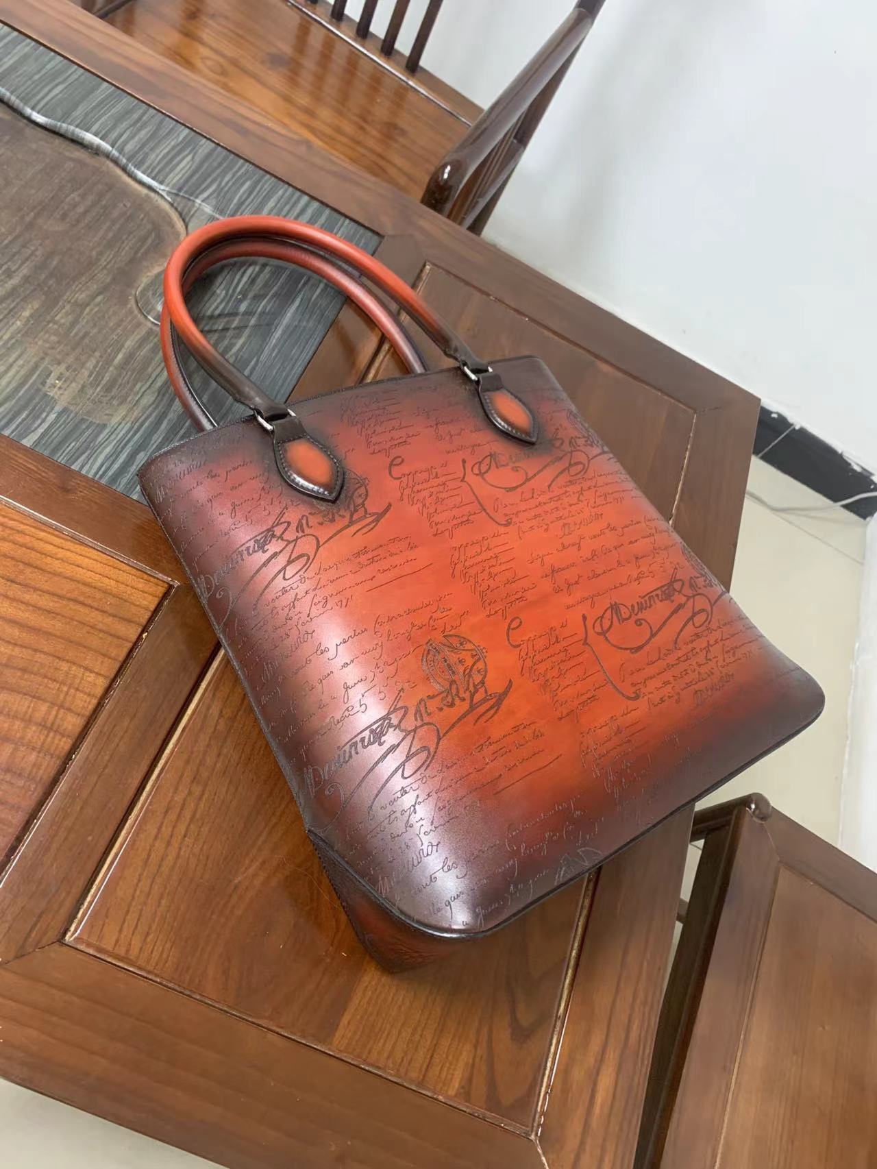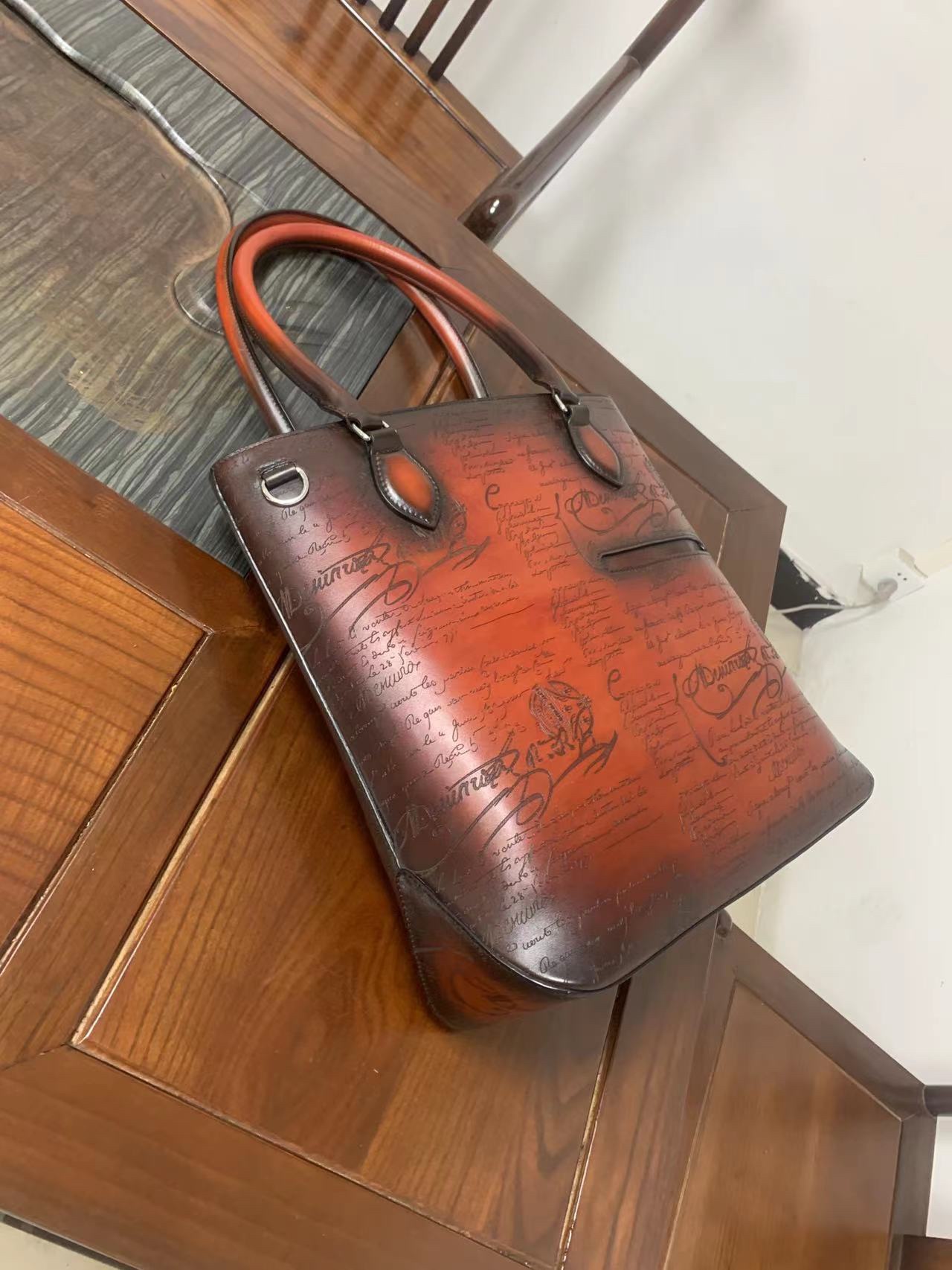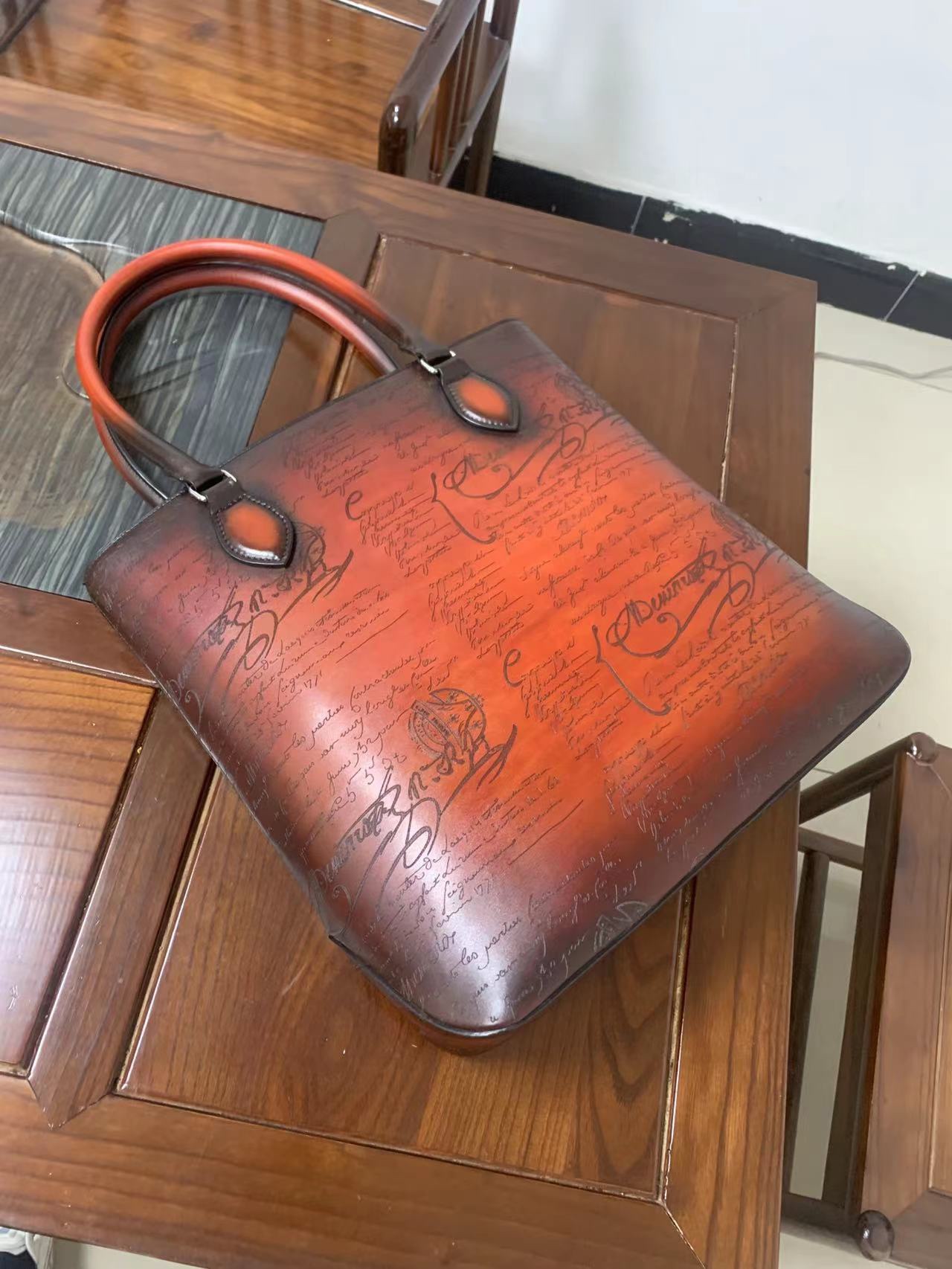 这款包包是AAAAA 1:1 质量 (非常棒). 使用了和原版一模一样的材料. 商标部分也保持了和Berluti一样. 图片拍摄是实物包包拍摄, 您所收到的实物保证和我们图片一模一样.