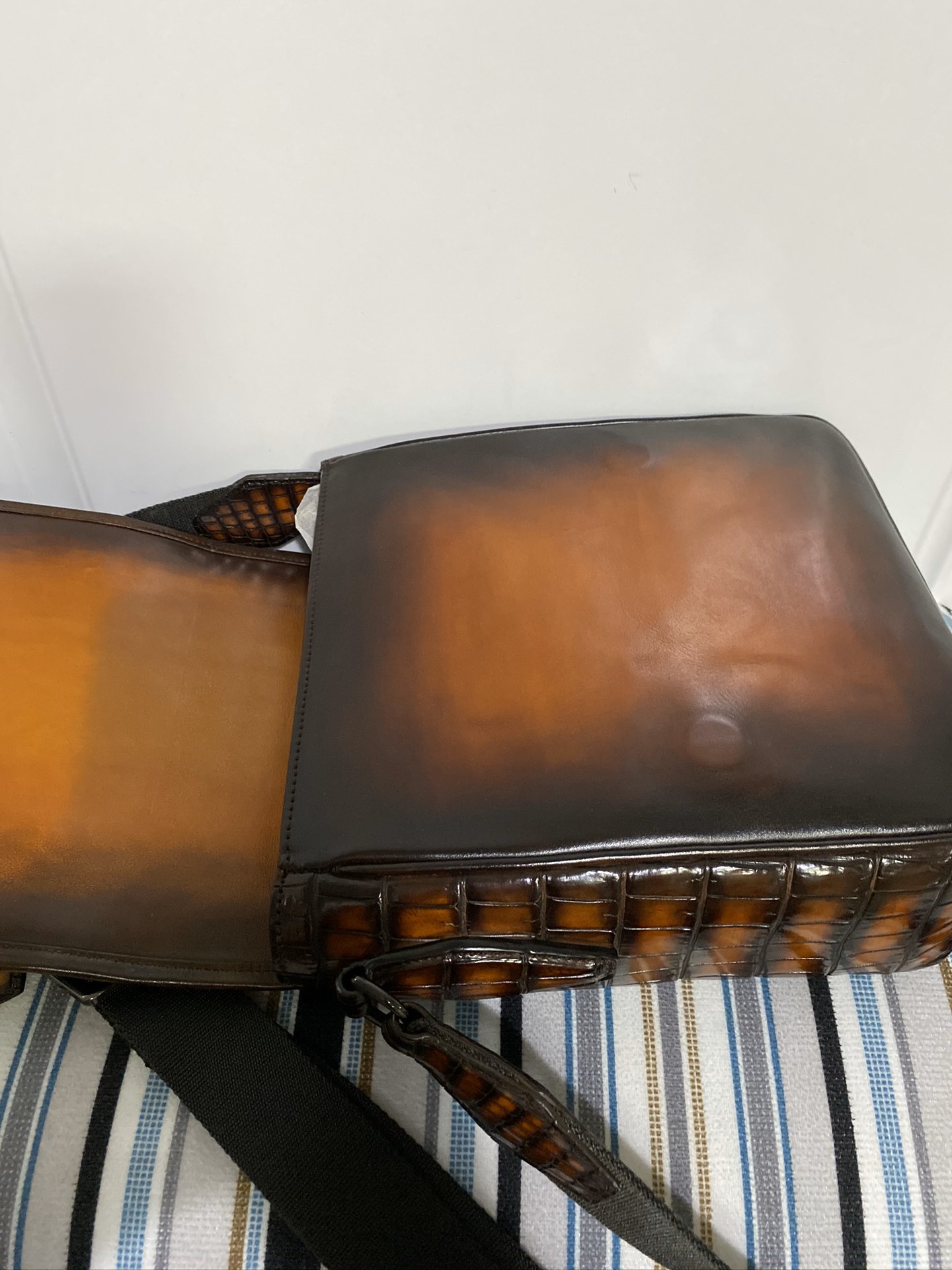 这款包包是AAAAA 1:1 质量 (非常棒). 使用了和原版一模一样的材料. 商标部分也保持了和Berluti一样. 图片拍摄是实物包包拍摄, 您所收到的实物保证和我们图片一模一样.