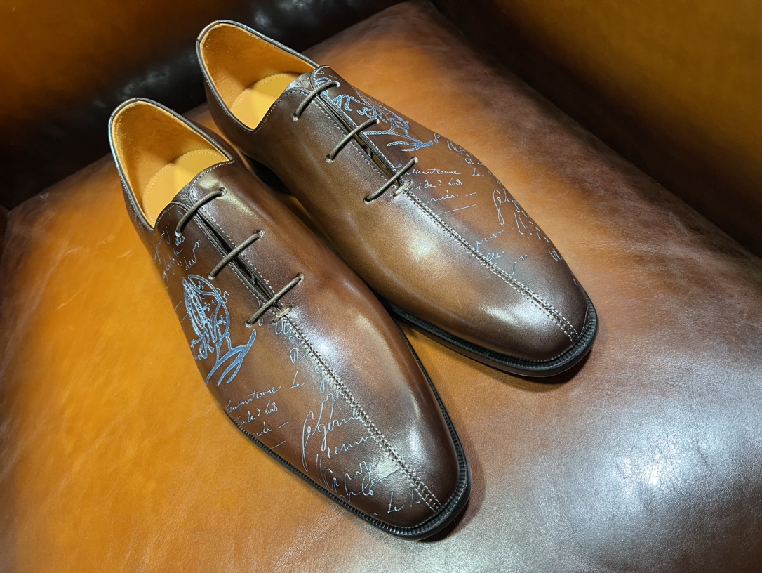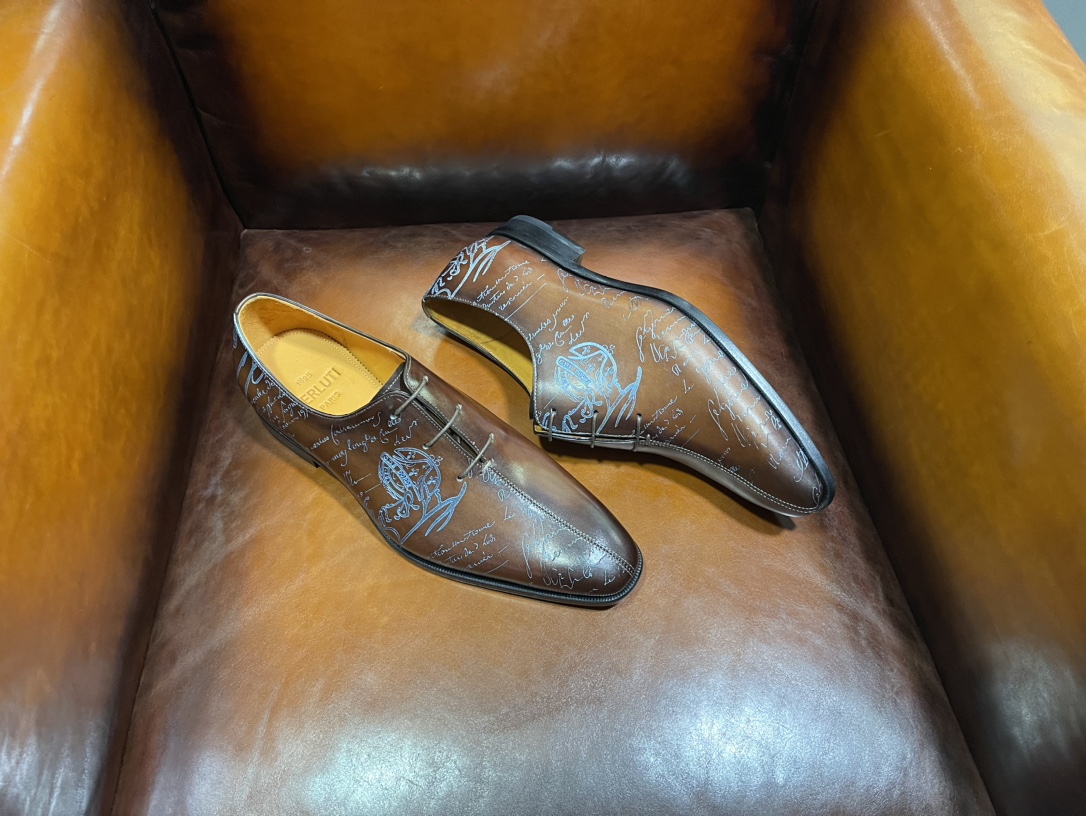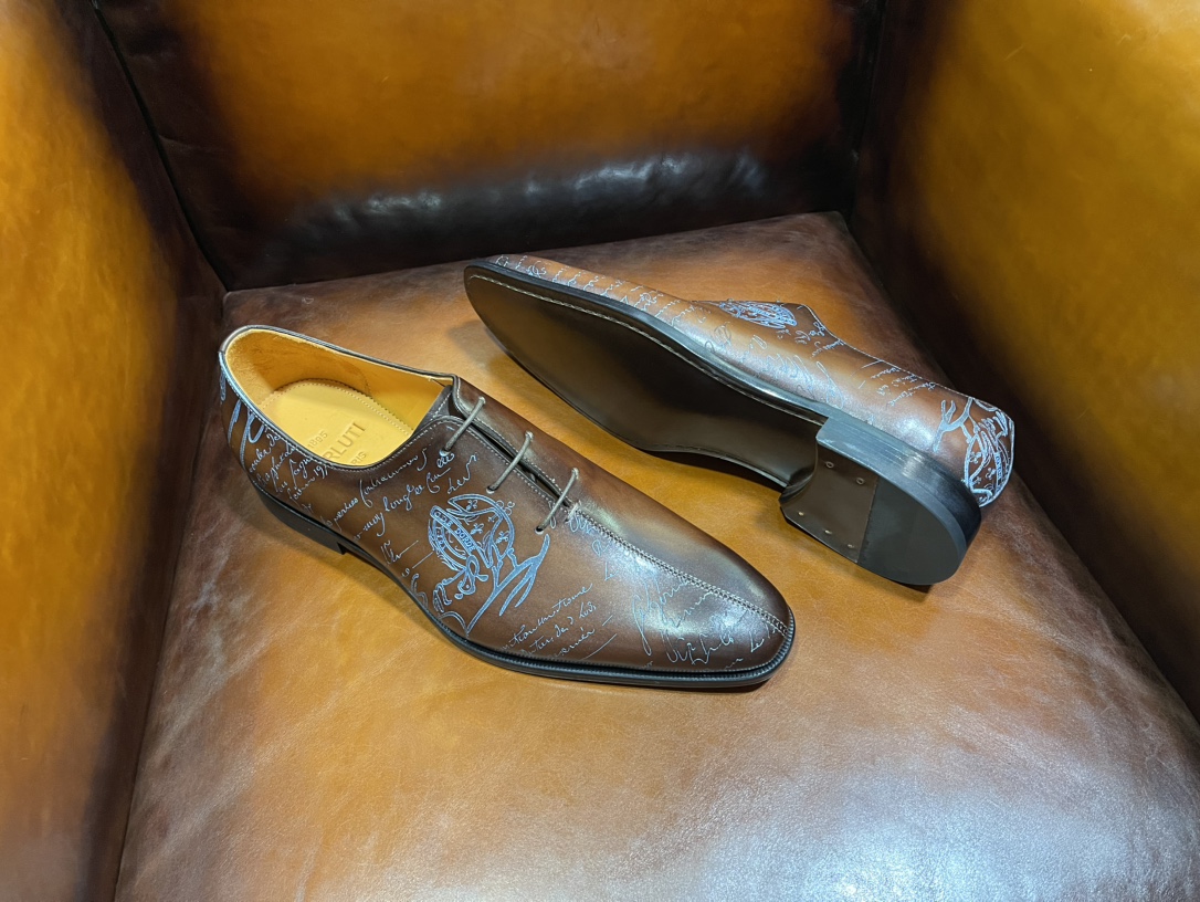 这款鞋子是AAAAA 1:1 质量 (非常棒). 使用了和原版一模一样的材料. 商标部分也保持了和Berluti一样. 图片拍摄是实物鞋子拍摄, 您所收到的实物保证和我们图片一模一样.