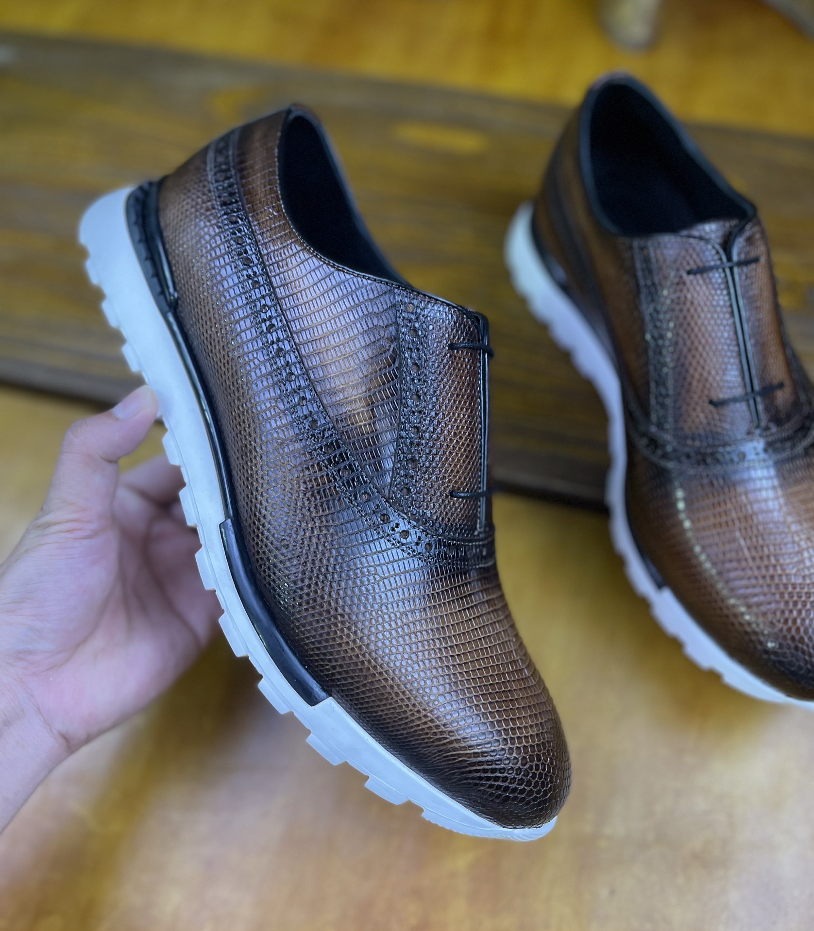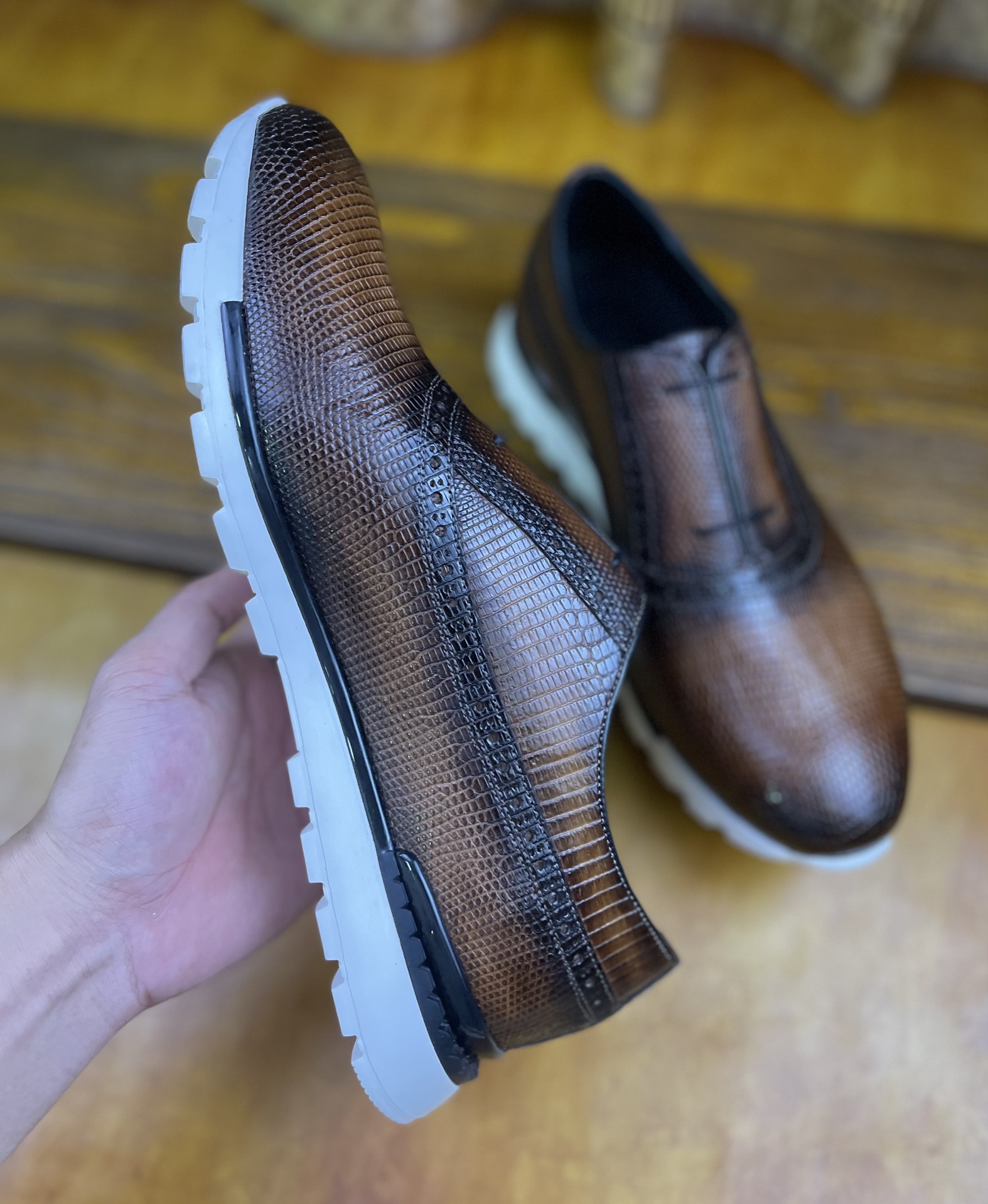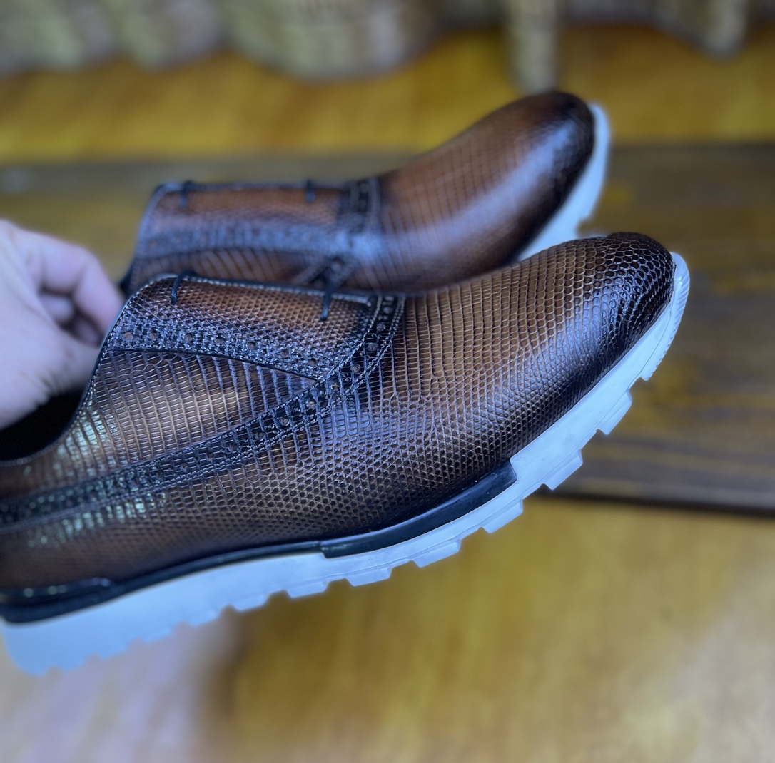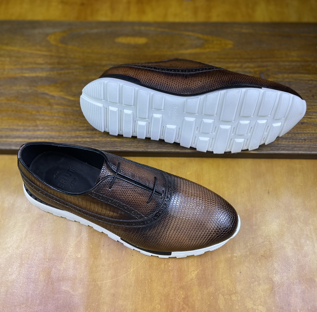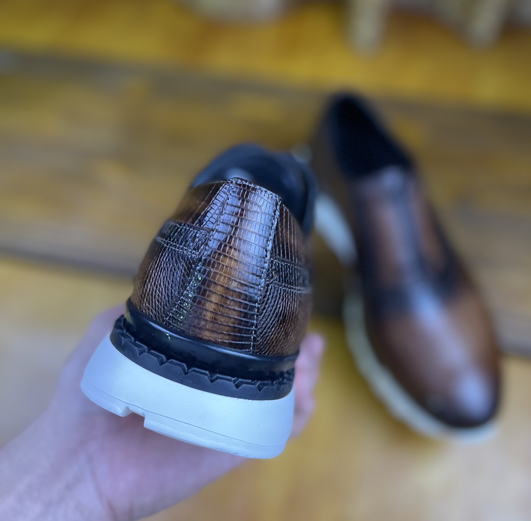 这款鞋子是AAAAA 1:1 质量 (非常棒). 使用了和原版一模一样的材料. 商标部分也保持了和Berluti一样. 图片拍摄是实物鞋子拍摄, 您所收到的实物保证和我们图片一模一样.